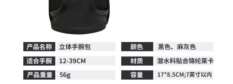 JCZS running wrist bag for men and women outdoor sports fitness equipment Apple Huawei 7-inch universal mobile phone arm bag arm sleeve classic black 7-inch universal