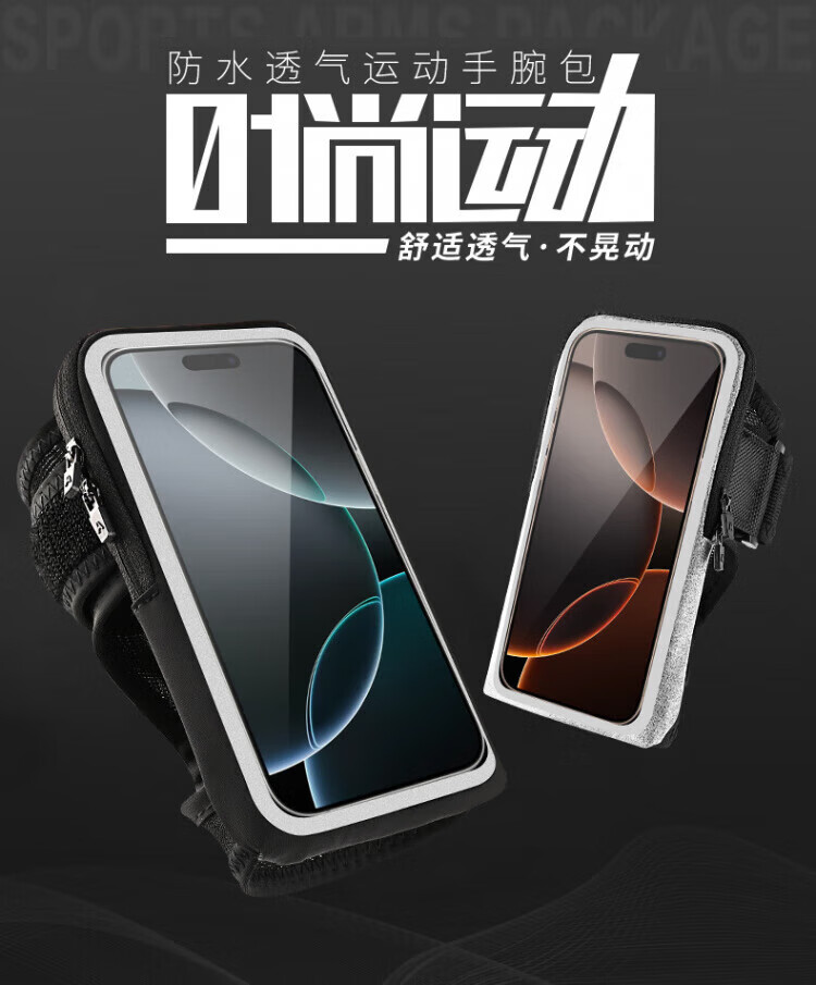 JCZS running wrist bag for men and women outdoor sports fitness equipment Apple Huawei 7-inch universal mobile phone arm bag arm sleeve classic black 7-inch universal