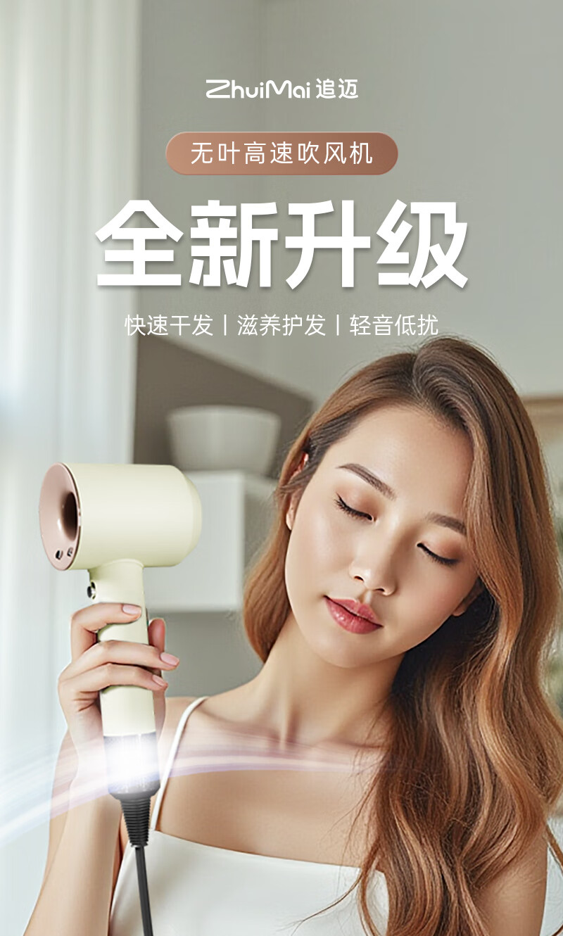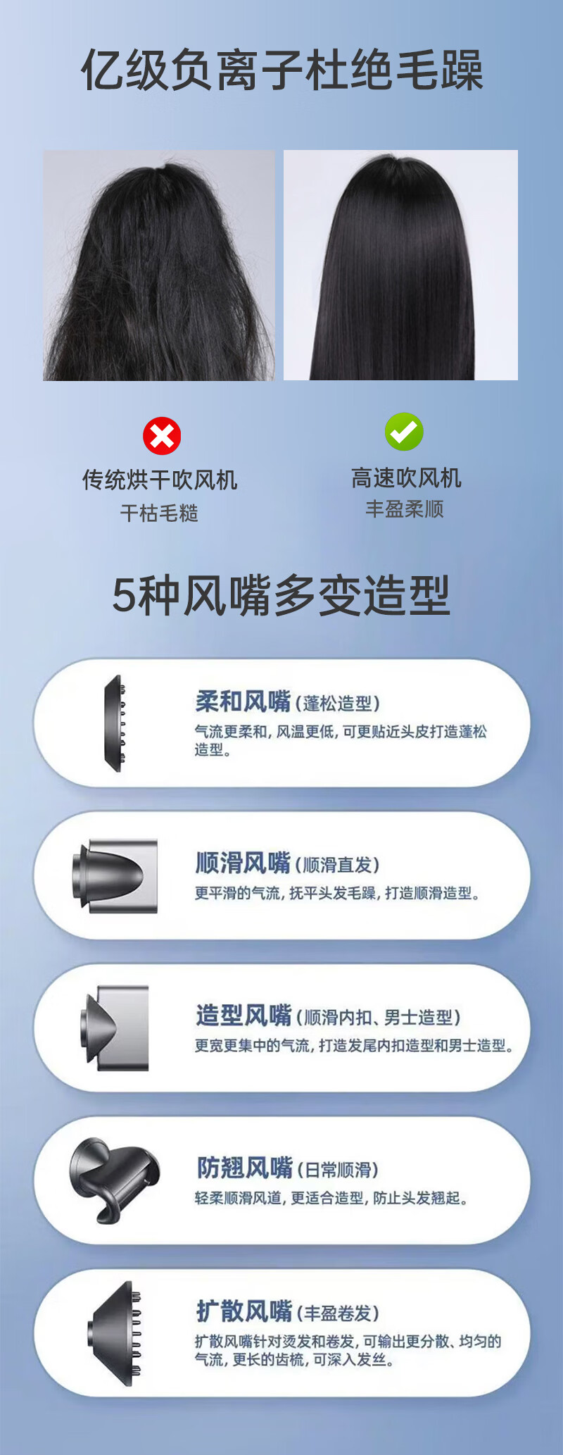 ZhuiMai High Speed Leafless Hair Dryer Home Silent Negative Ion Dormitory High Power Hair Dryer Constant Temperature Does Not Hurt Hair Hair Dryer Quick Dry Hair Care 95% People’s Choice Rose Red + Free Stand