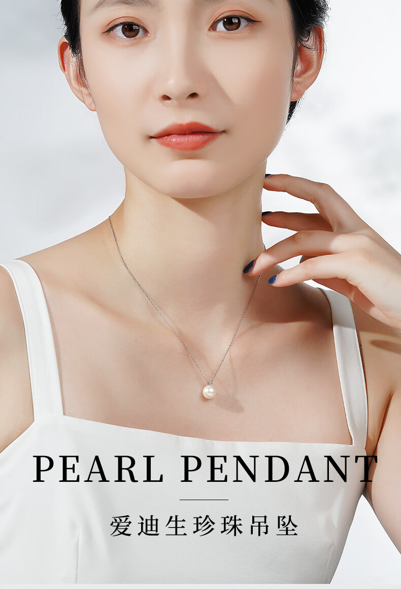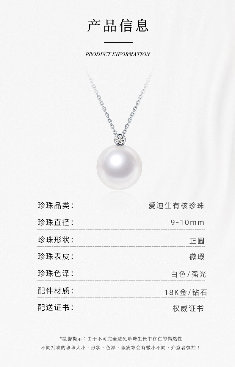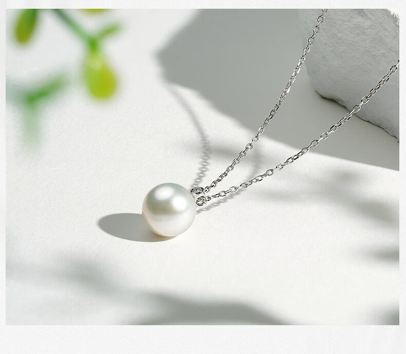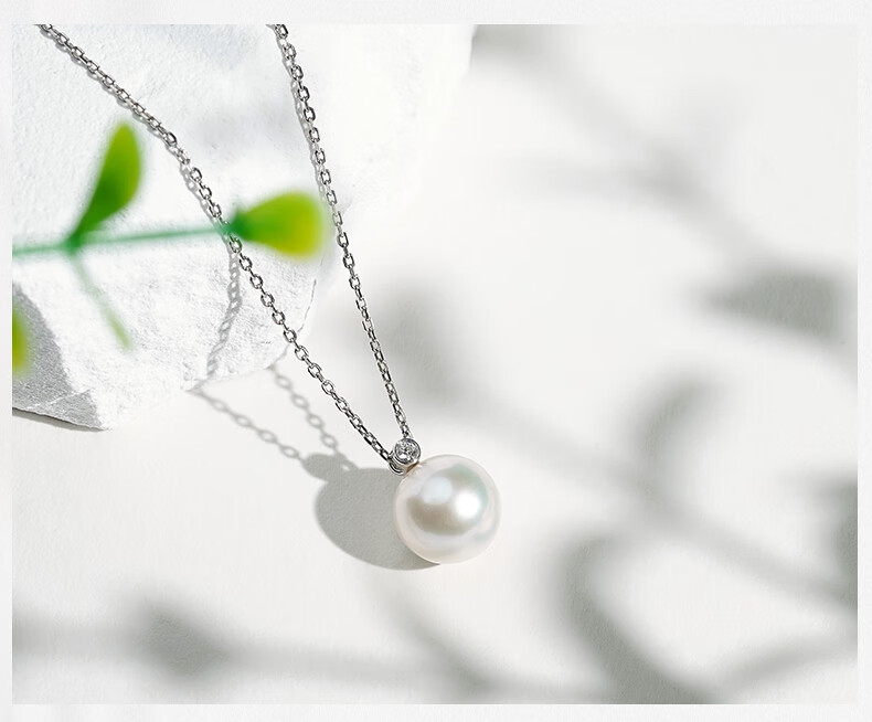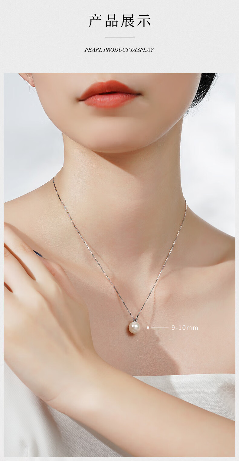 Tahitian Solitaire Edison Pearl Pendant 18K Gold Necklace Feeling Pearl Necklace Clavicle Chain Perfect Round_Strong Light_White Edison Pearl_With 18K 9-10mm