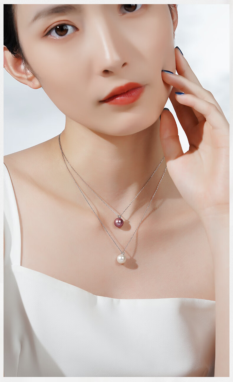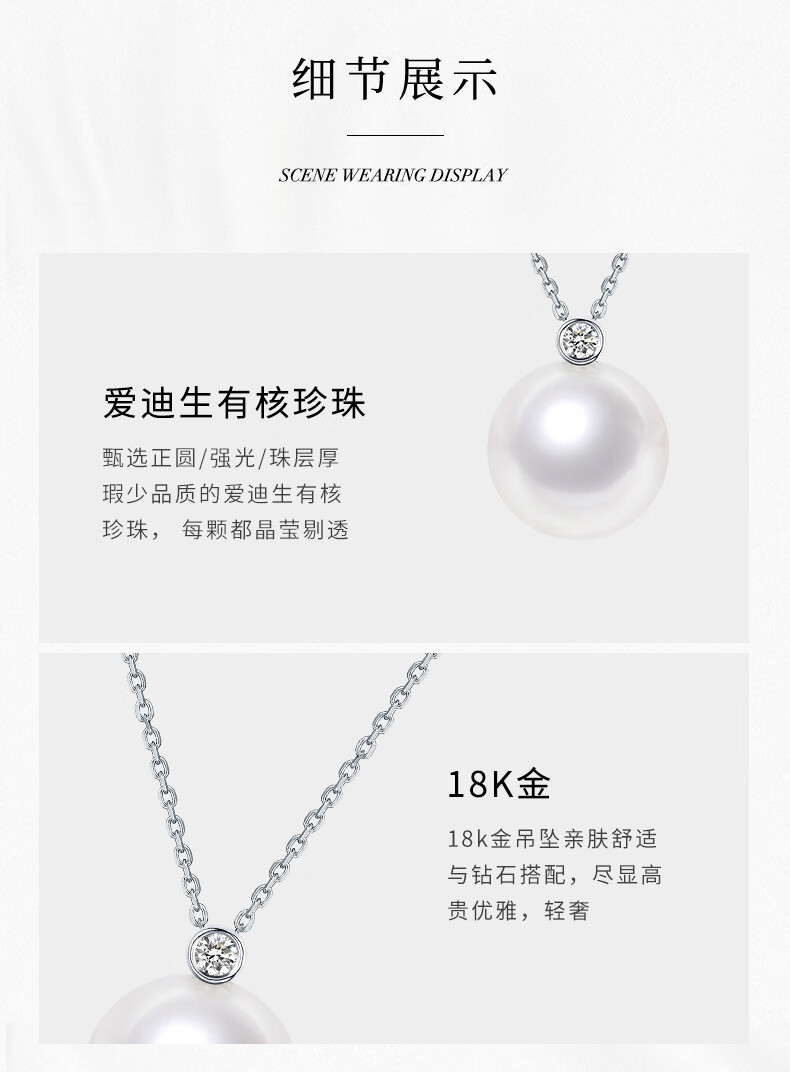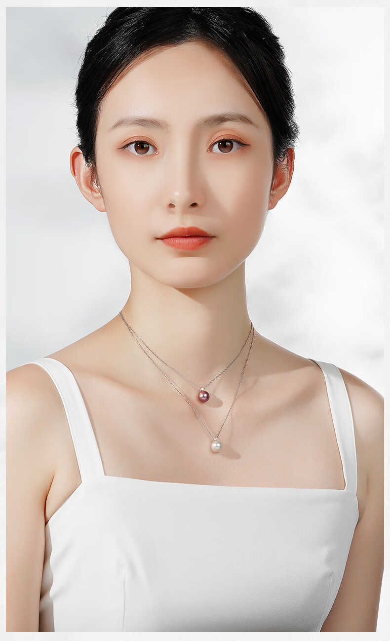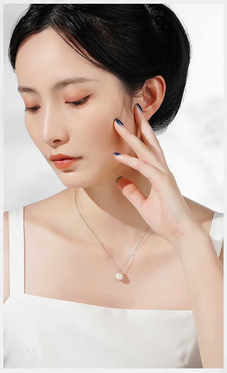 Tahitian Solitaire Edison Pearl Pendant 18K Gold Necklace Feeling Pearl Necklace Clavicle Chain Perfect Round_Strong Light_White Edison Pearl_With 18K 9-10mm