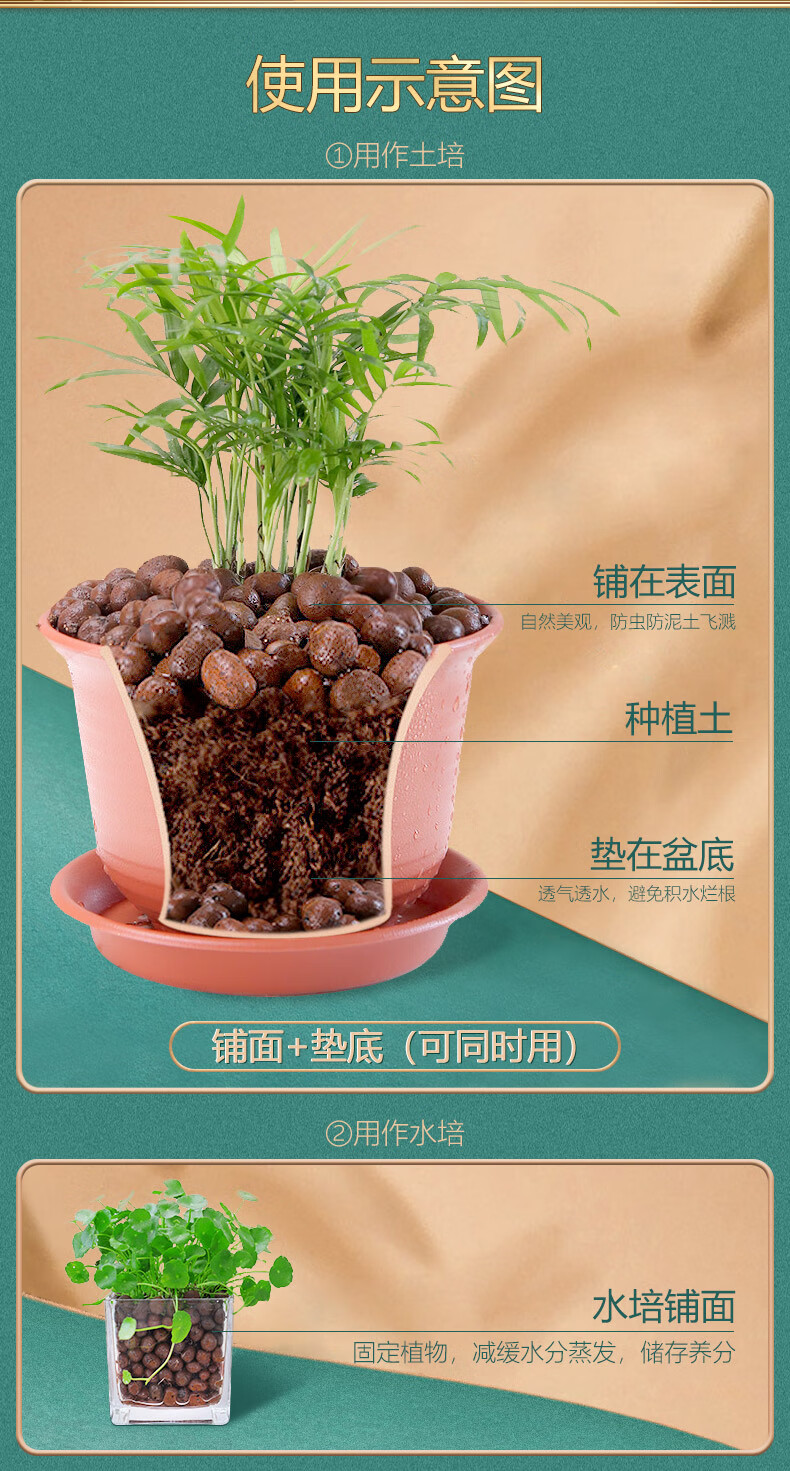 Ceramic bottom multi-succulent soil terracotta granular flower potting special colored breathable paving stone backfill volcanic stone particles 1.2-1.6cm lightweight ceramsite 10L