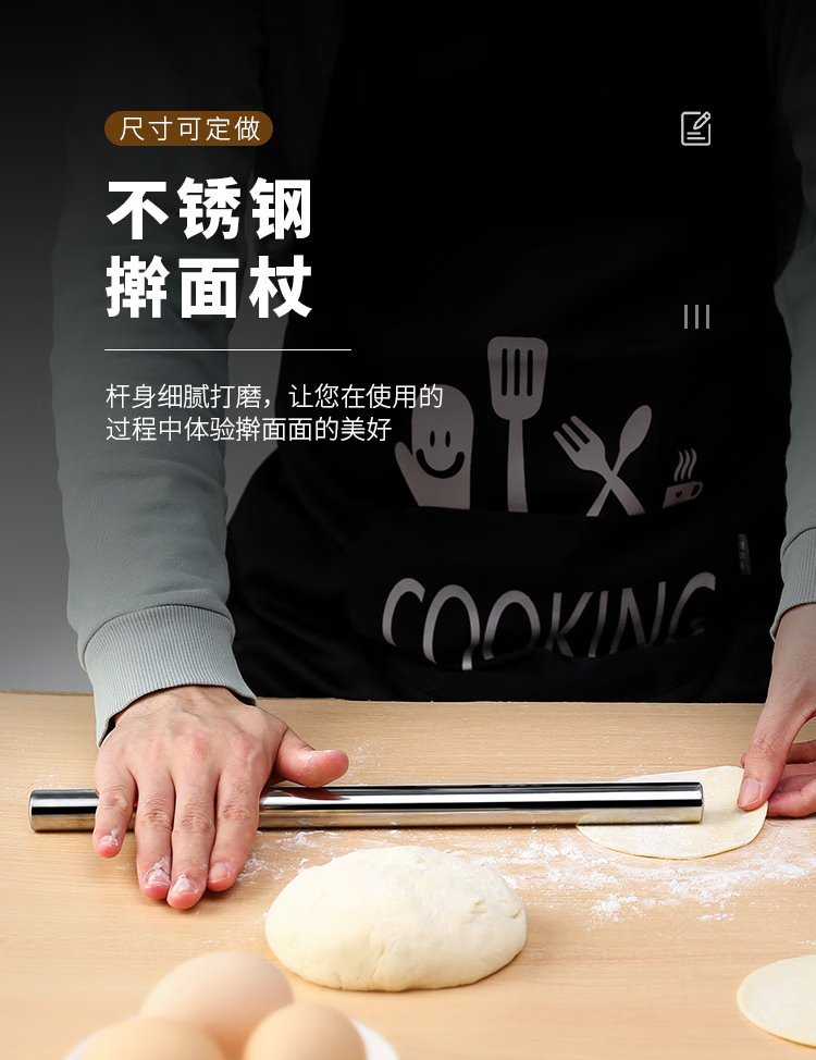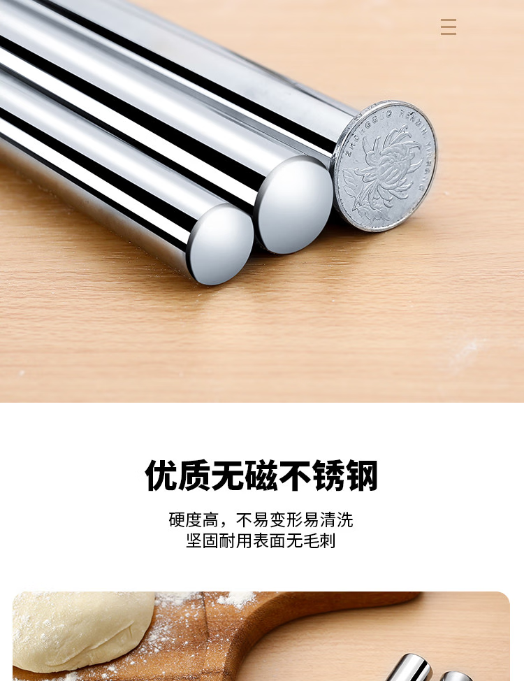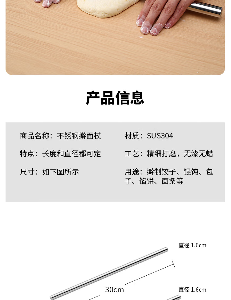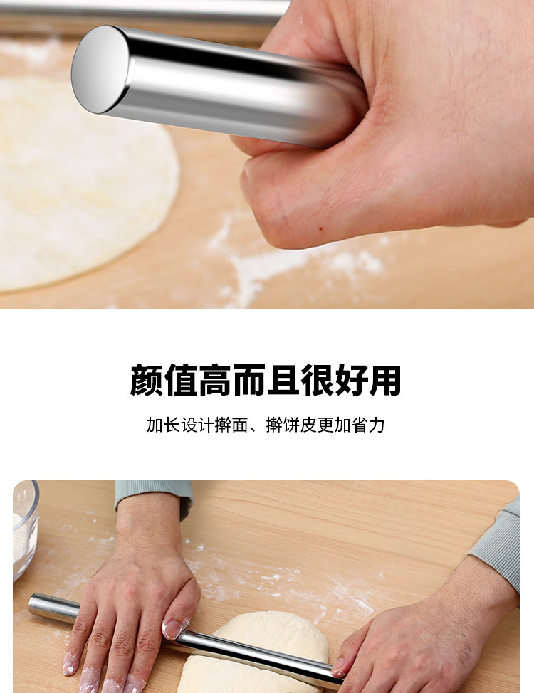 Fantasy stainless steel household rolling pin rolling pin pressing stick cake roll centimeter egg roll stick thin egg roll stick hollow length 30 cm diameter 1.6 cm