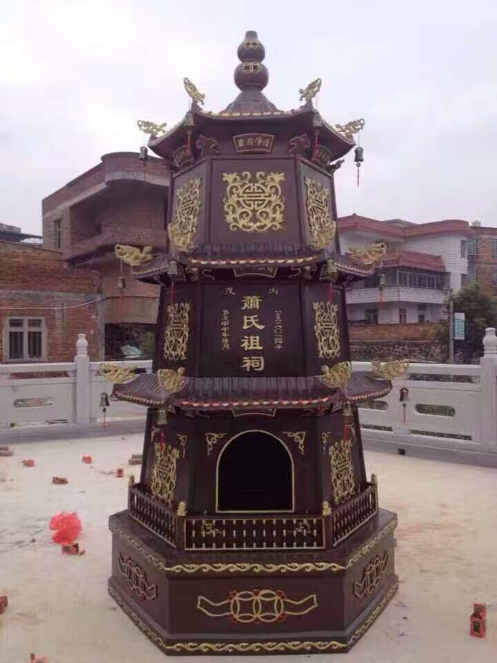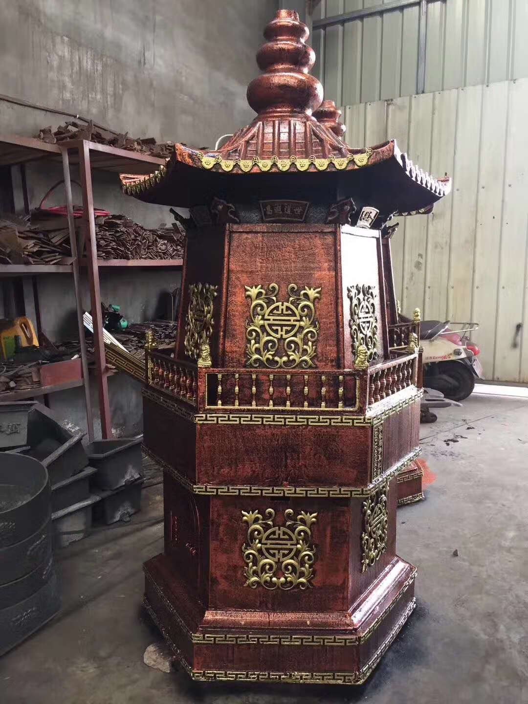 Temple incense burner hexagonal tower type treasure furnace cast iron sutra burning furnace three-story five-story paper burning furnace Buddhist hall ingot furnace iron tower