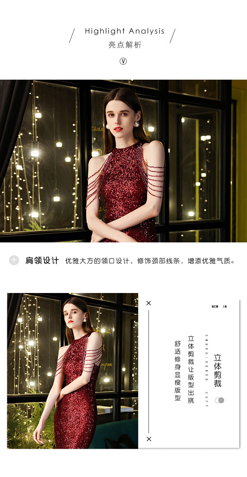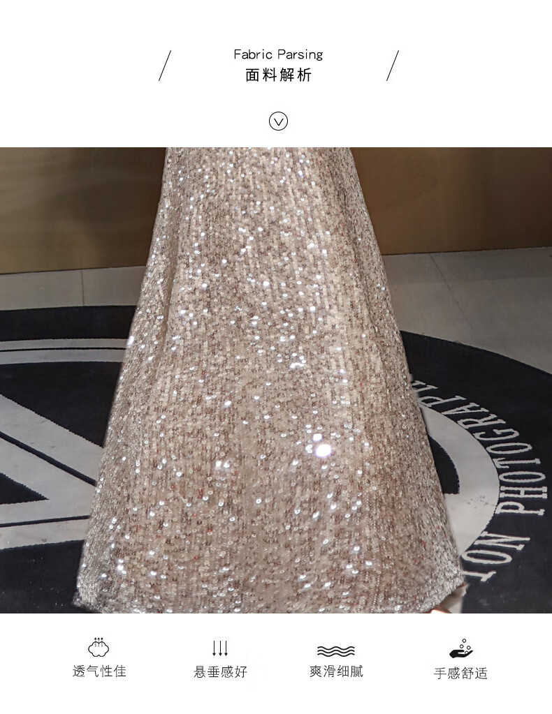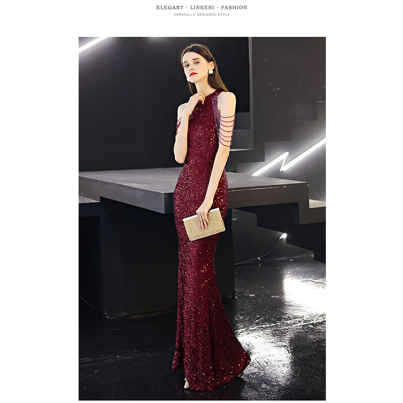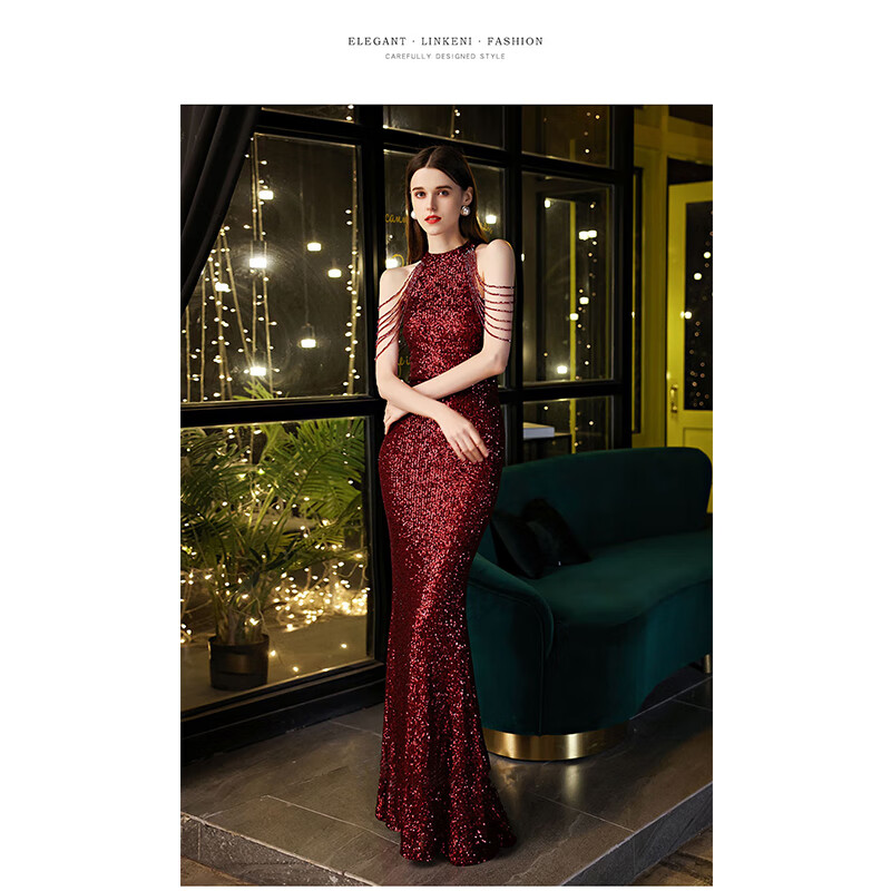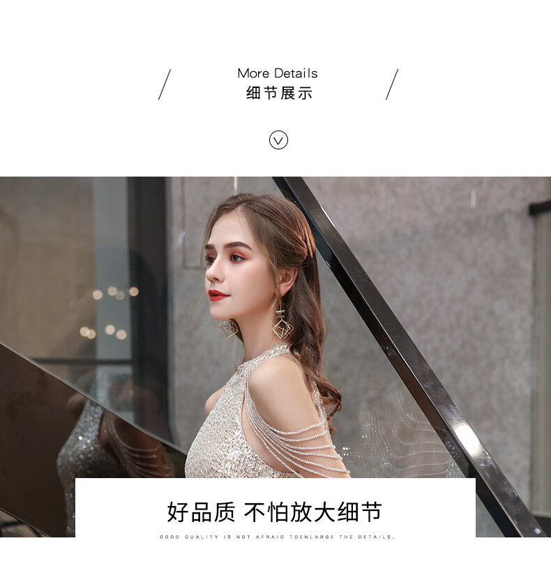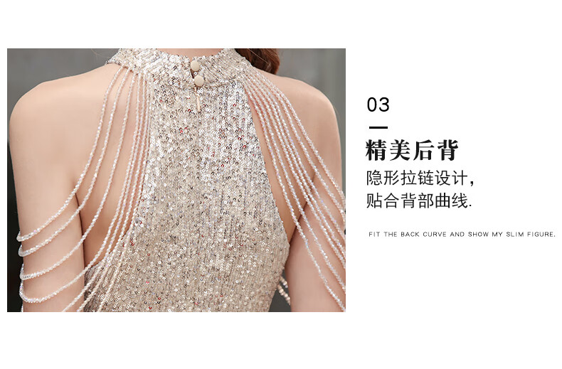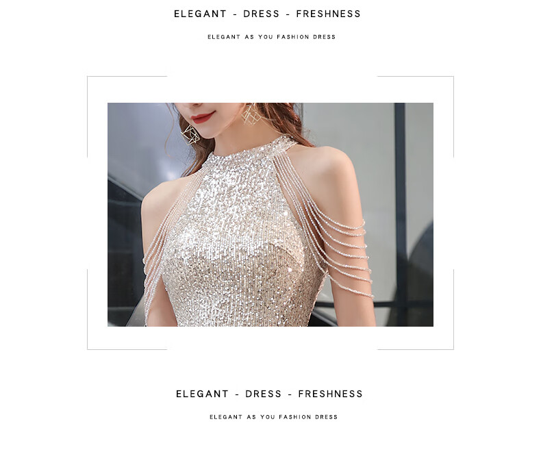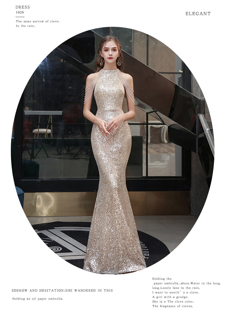 Ancient Champions League evening dress for women, high-end banquet temperament, heavy industry fishtail long dress, light luxury niche high-end annual meeting host engagement, apricot M high-quality stretch version