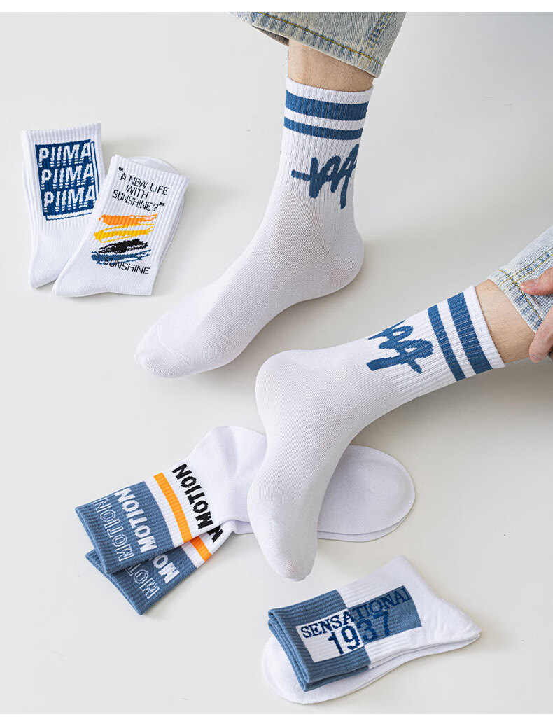 Nanjiren Socks Men's Cotton Socks Deodorant, Sweat-Absorbent, Teen Trendy Basketball Sports Medium Tube New Summer Thin Style Optional Remarks 7 Pairs One Size