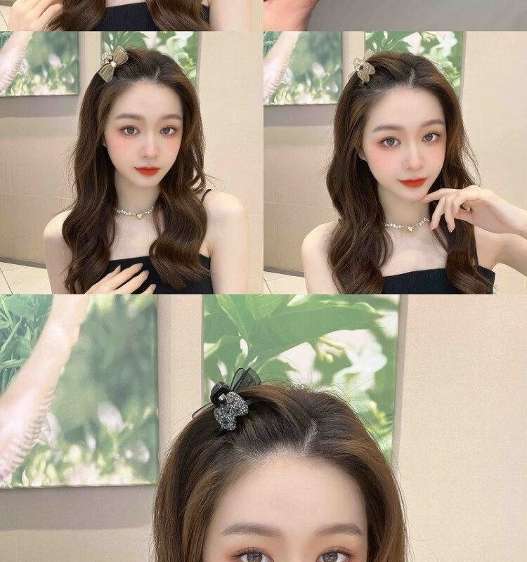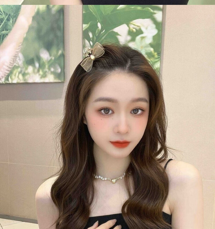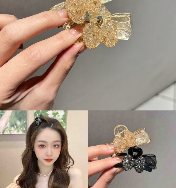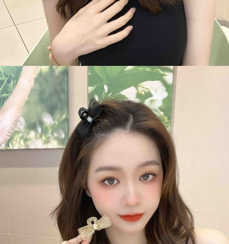 Korean style sweet girl side broken hair clip bow high ponytail hair clip atmospheric bangs clip champagne color bow bangs clip set