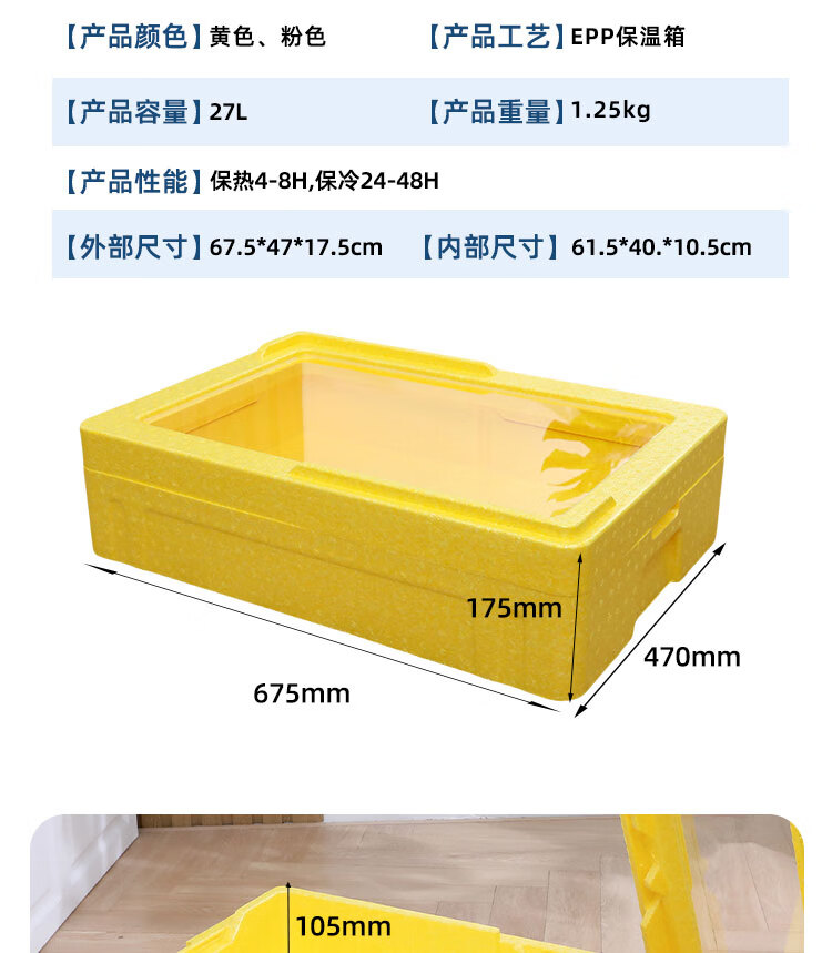 Warm Ice Bear 27L EPP transparent cover insulated box commercial stall display box outdoor cake dessert sushi ice box refrigerator 27L bare box yellow