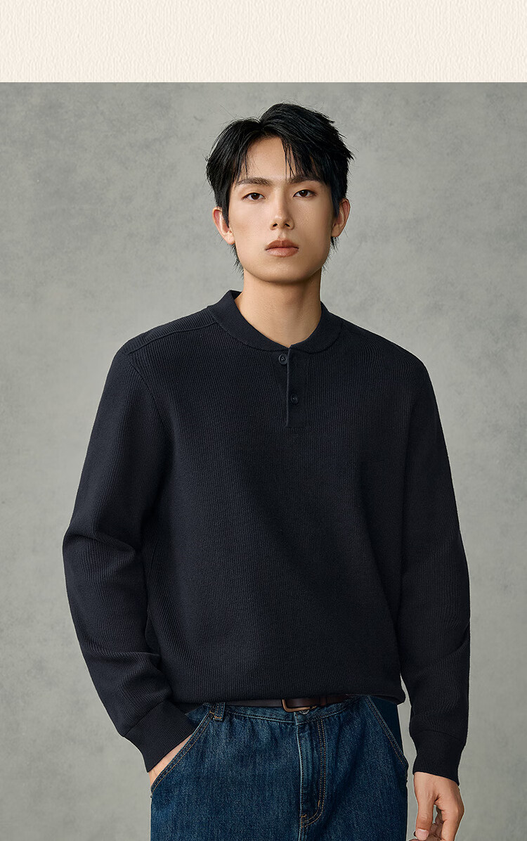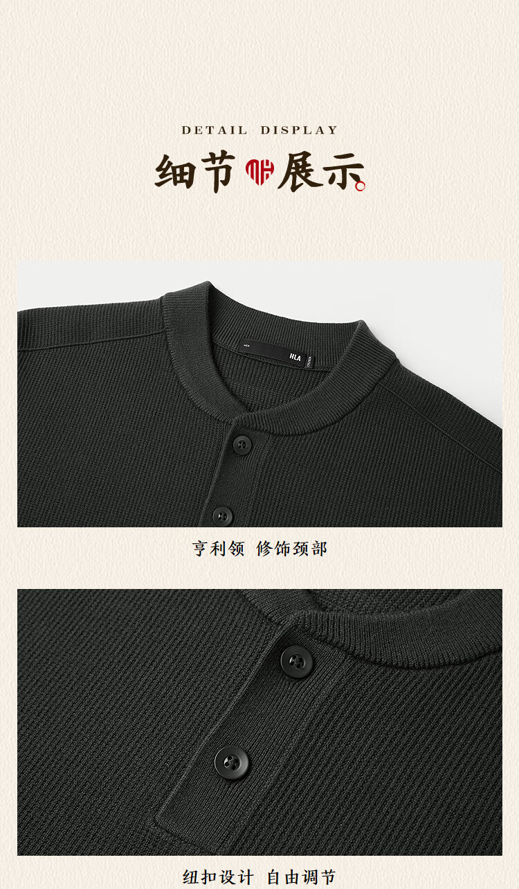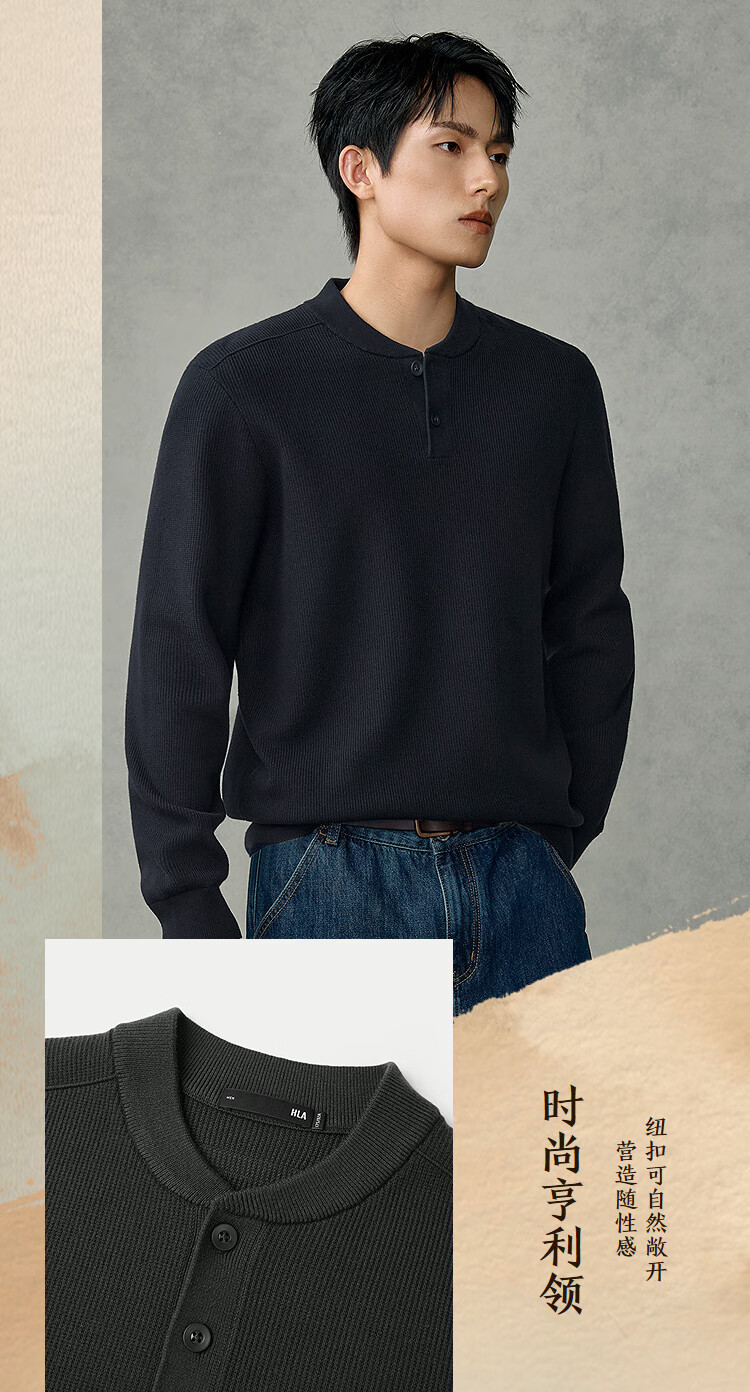 HLA Heilan House Knitted Sweater Men's Autumn 25 New Yixinzhiwei Series Henley Collar Sweater Men's Dark Green 9A S 165/84A Recommended 114~124Jin Jin is equal to 0.5 kg
