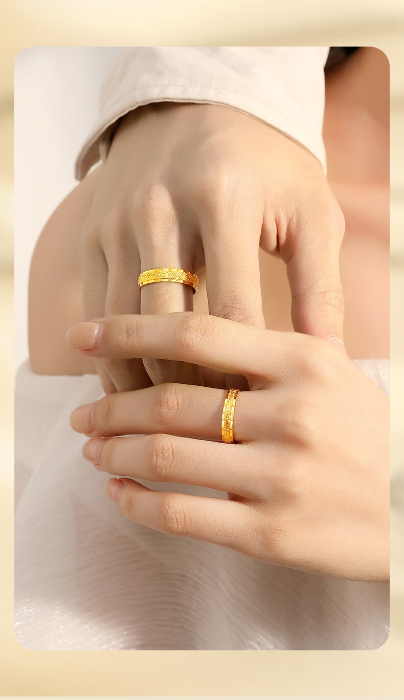 CHINA GOLD Three Lives Three Worlds Gold Couple Rings for Men and Women 999 Pure Gold Pair of Rings Birthday Gifts for Boy and Girl Friends Gold Weight Approximately 3.2g Women's Ring