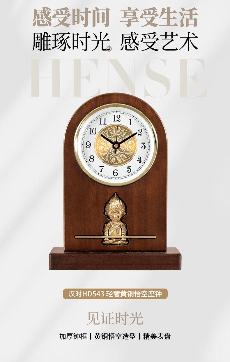 Hanshi (Hense) simple living room table clock bedroom bedside table clock internet celebrity desktop small desk clock wooden clock quartz clock HD543 simple model