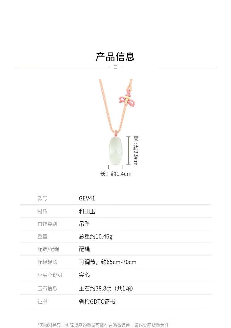 Chow Tai Fook Qing Qing Wish You Comes Rabbit Hetian Jade Pendant with Pink Braided Rope GEV41 GEV41