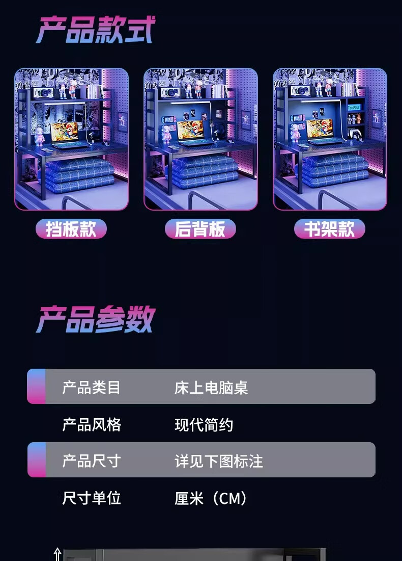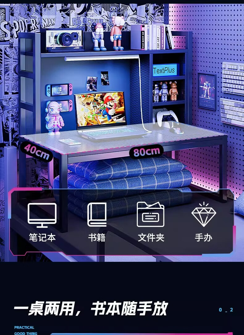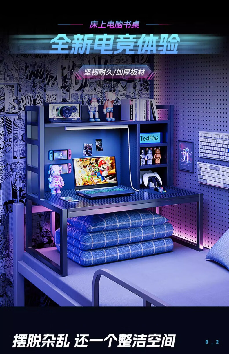 Zhonghao bed computer desk e-sports table bunk bed dormitory artifact college student study desk lazy bedside desk simple style cool black 80*40cm universal for bunk beds