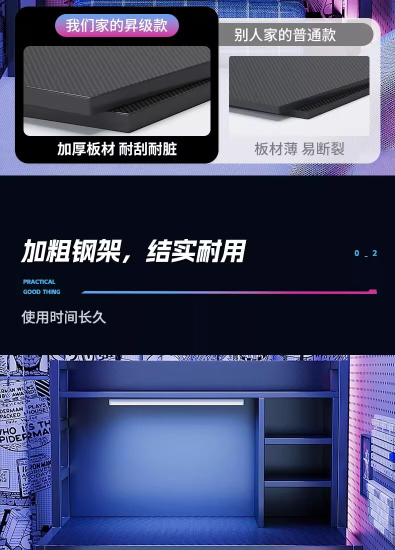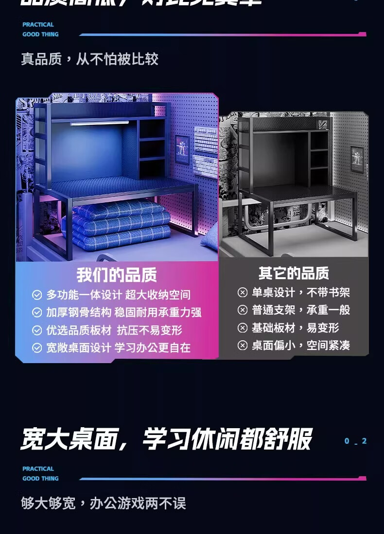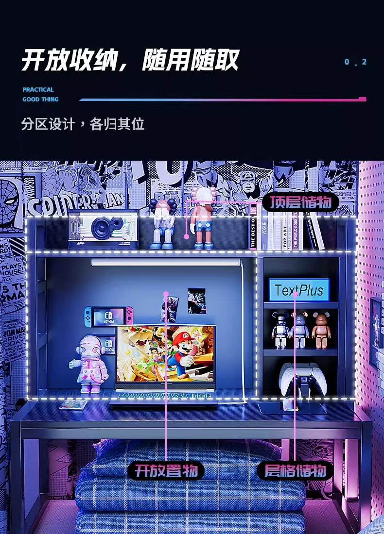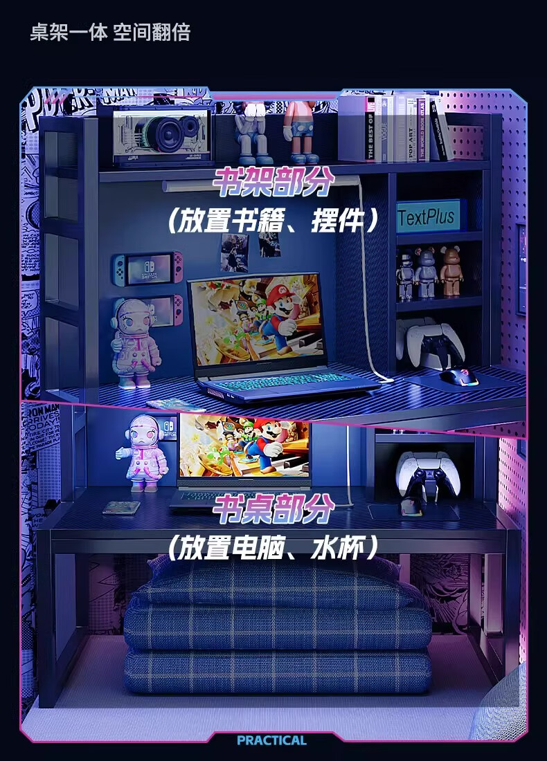Zhonghao bed computer desk e-sports table bunk bed dormitory artifact college student study desk lazy bedside desk simple style cool black 80*40cm universal for bunk beds