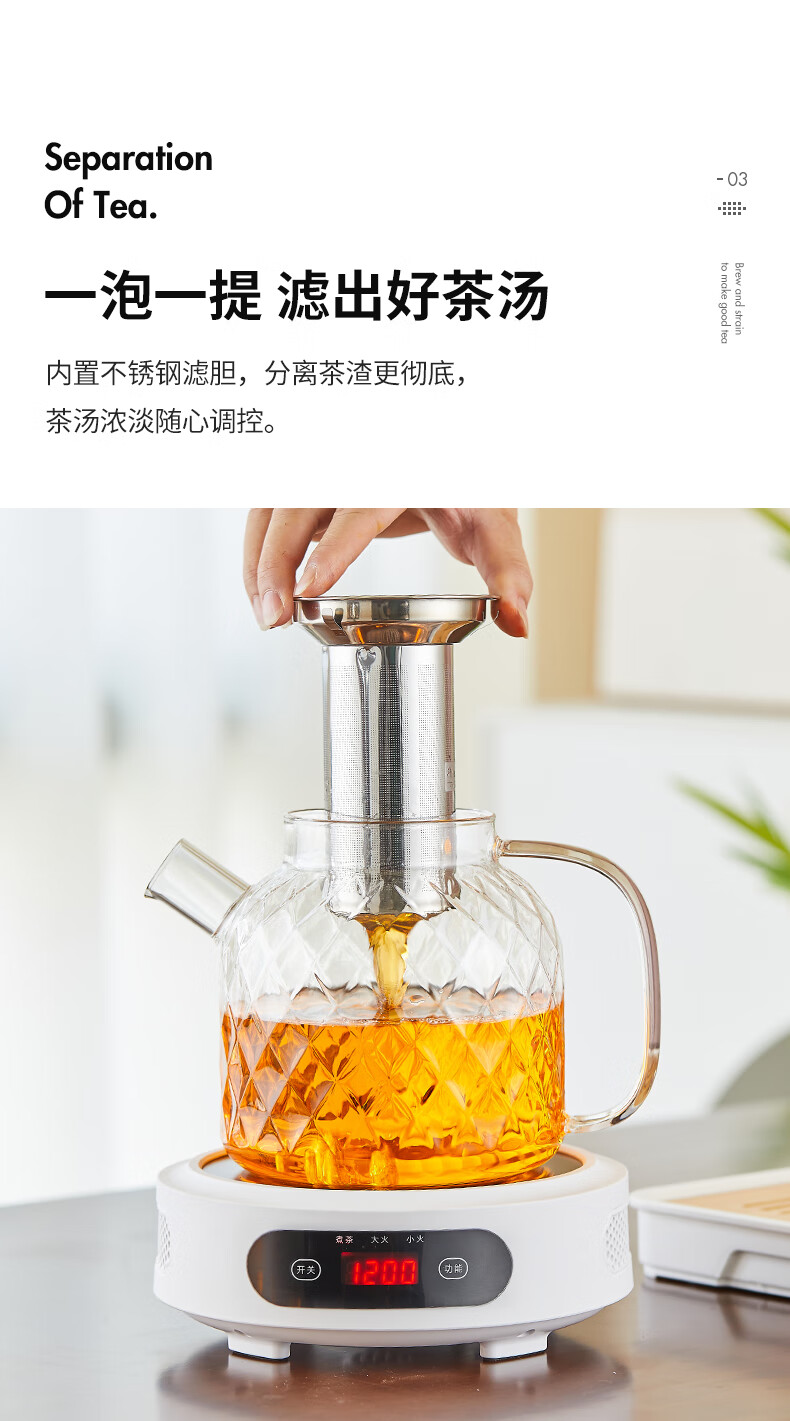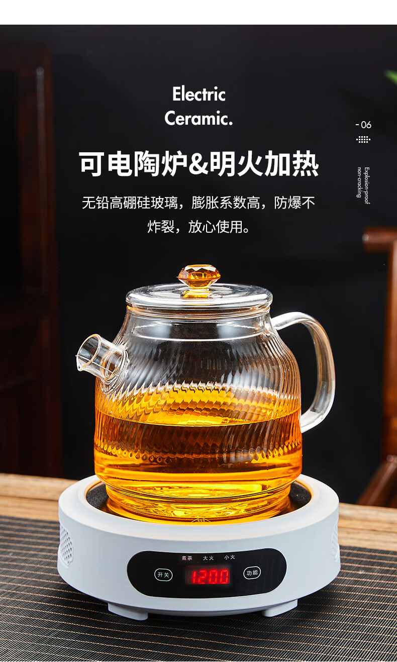MZXM Japan imported quality glass tea kettle kettle large capacity new electric ceramic stove all glass health kettle for tea Rongtianxia health kettle twill - 1650ml 1L or more