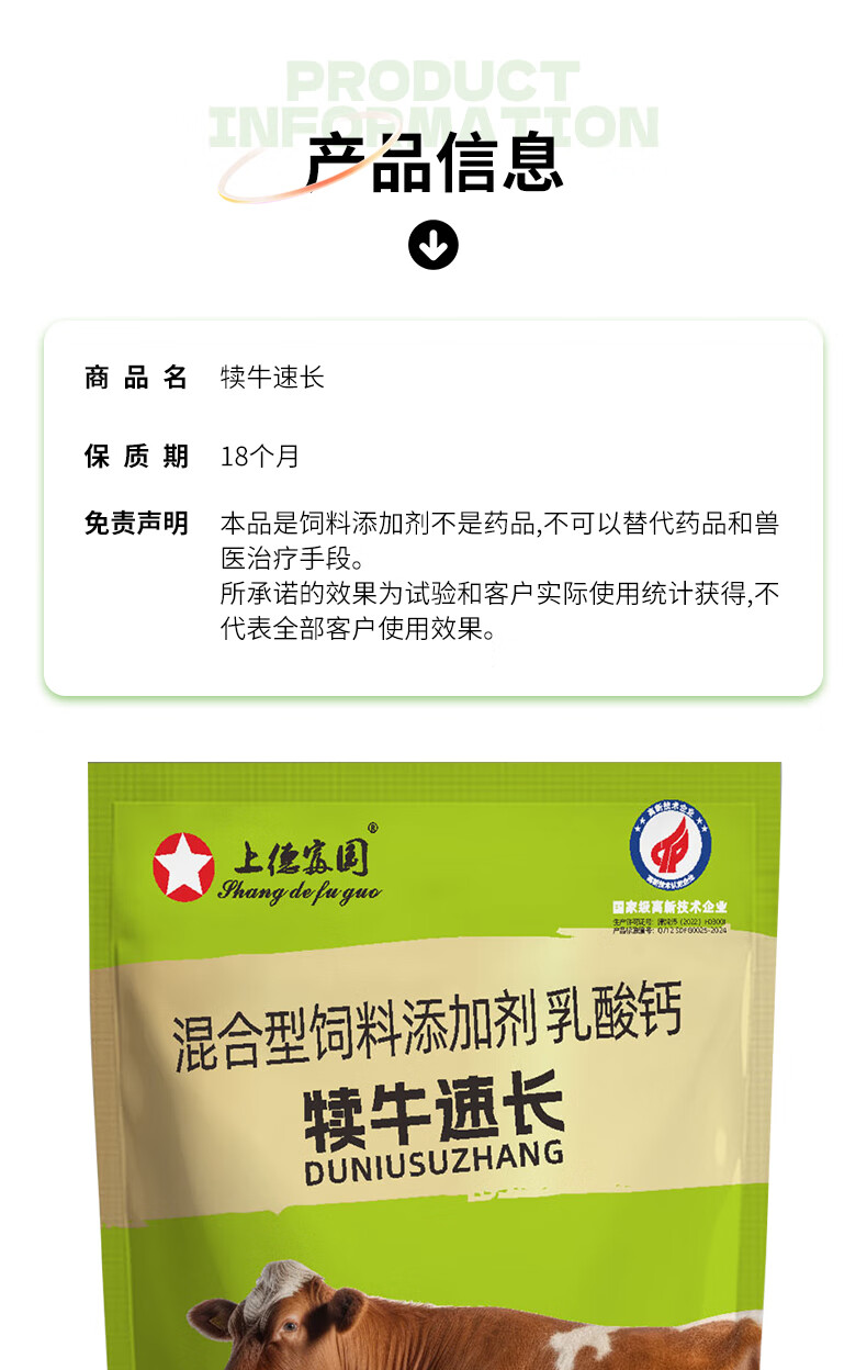 Shangdefuguo calf fast growing calf fast growing feed additive to pull the skeleton and promote growth 500g/bag 1 bag
