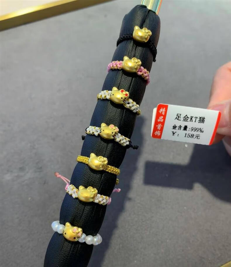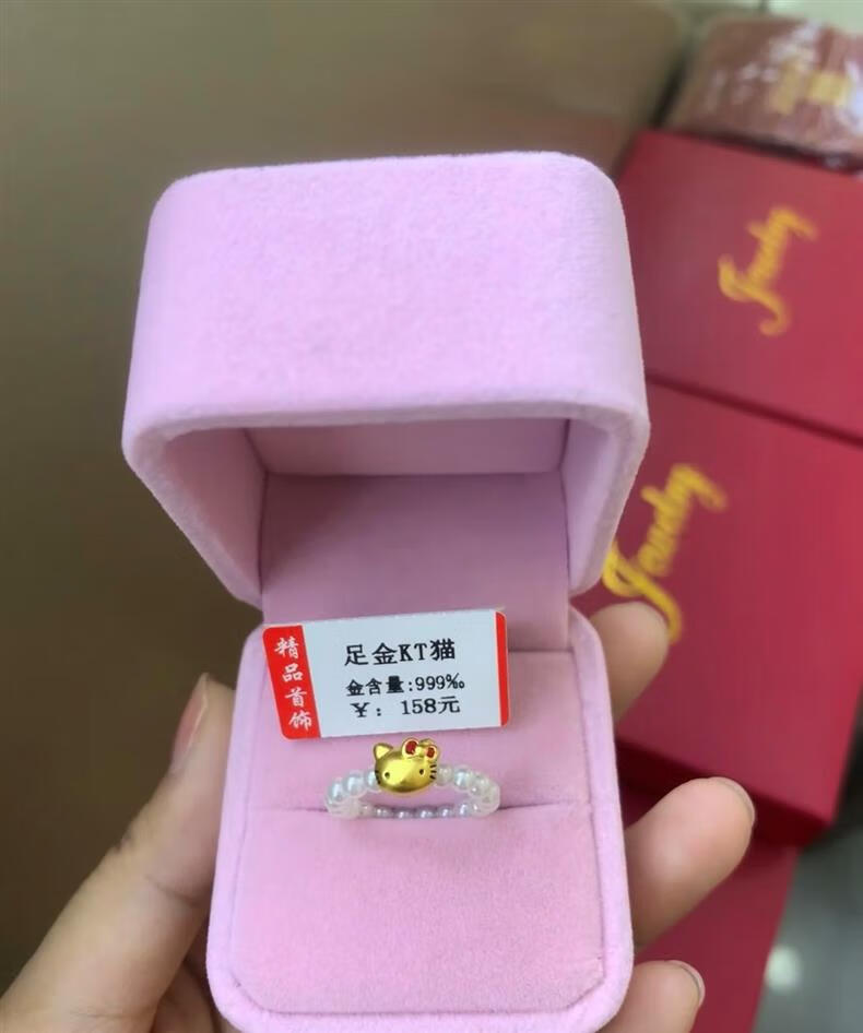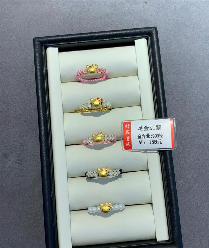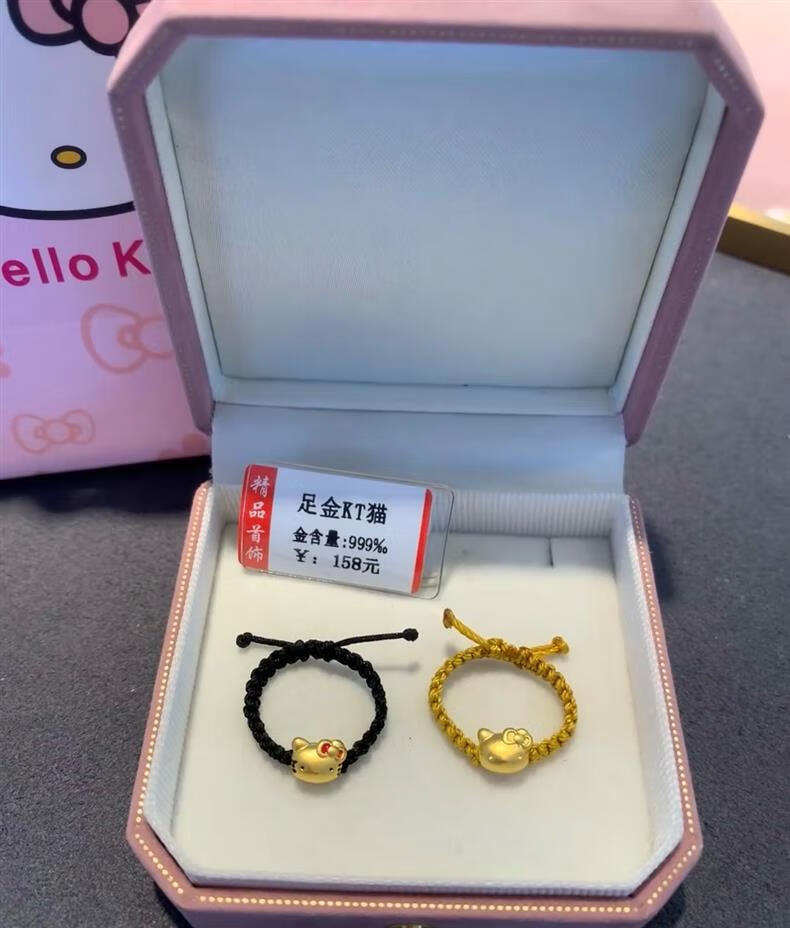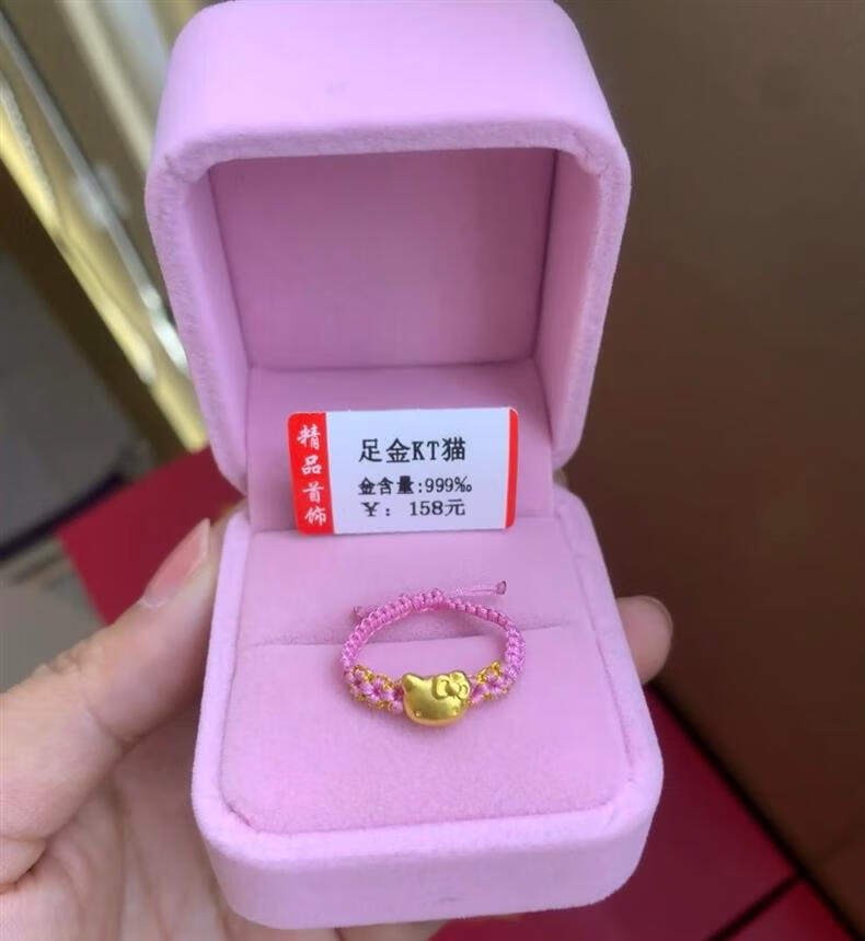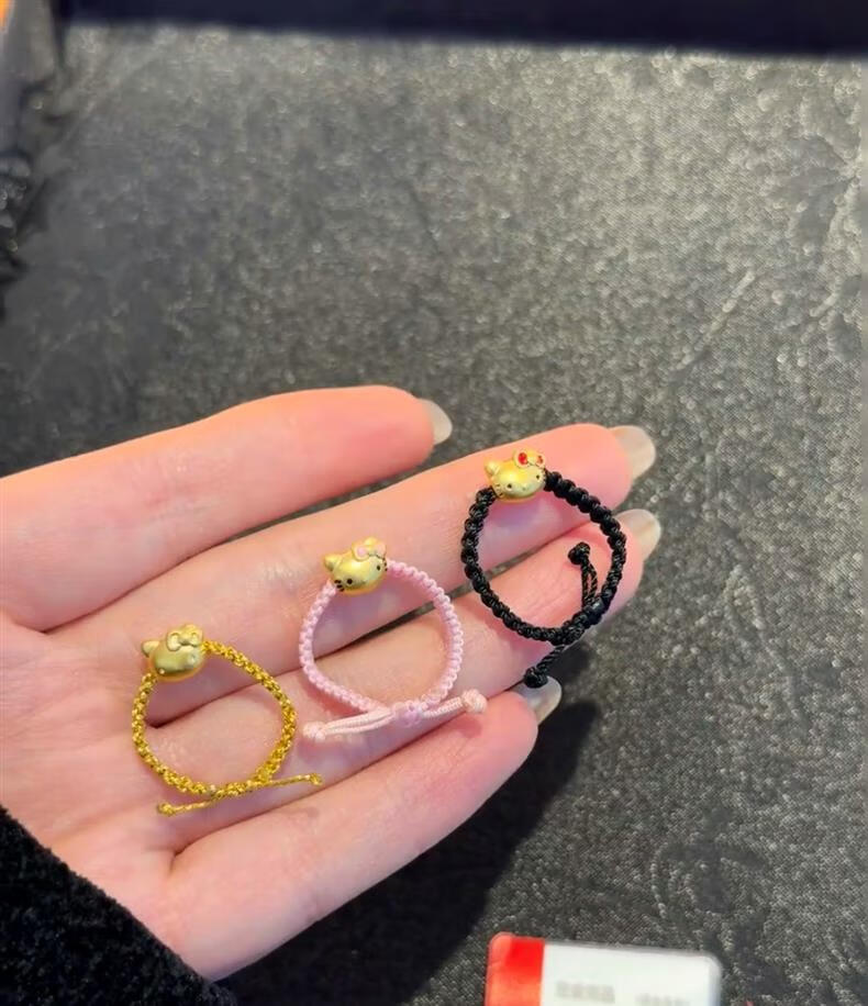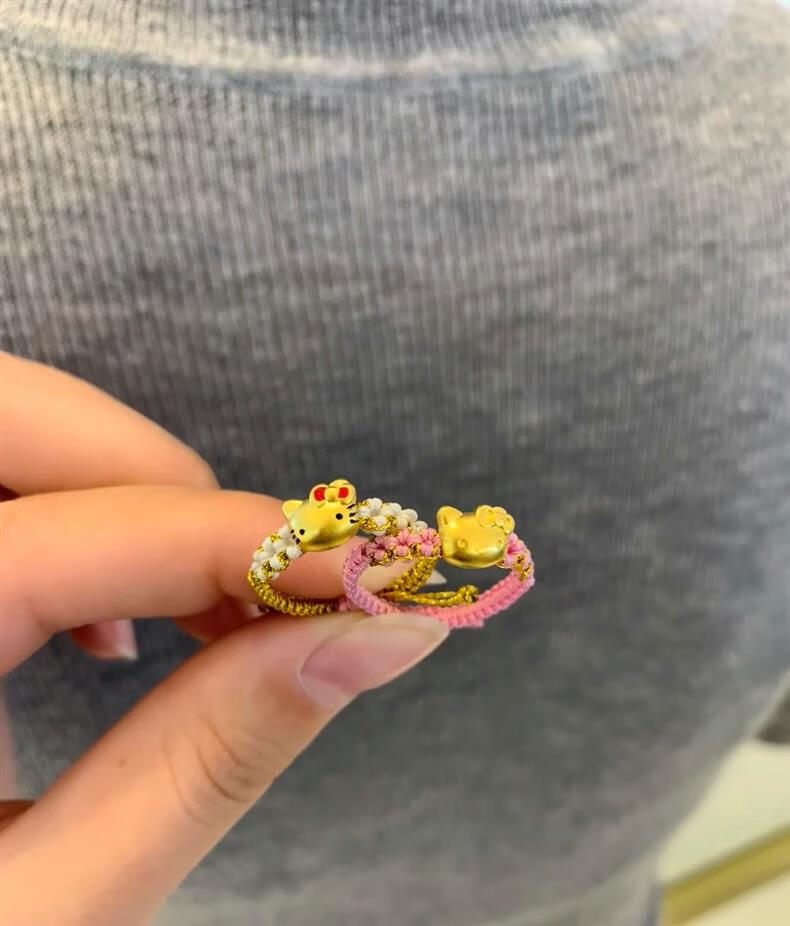 VAN OCEAN ANNORA pure gold 999 pure gold ring for women Hello Kitty cat braided ring for girlfriend’s birthday 0.07g pink braided rope kitty ring