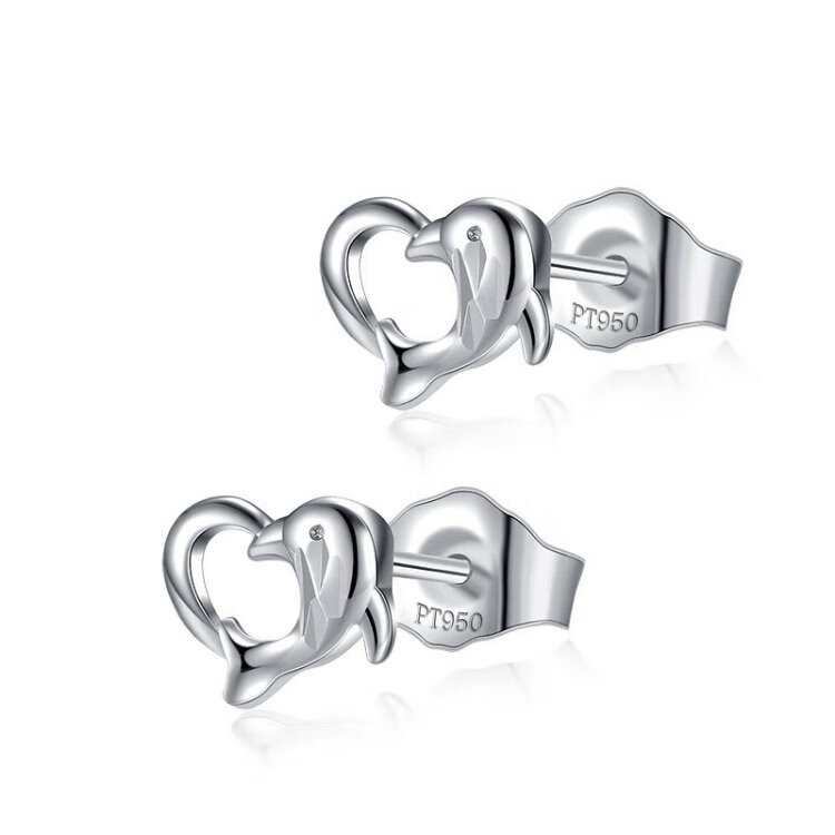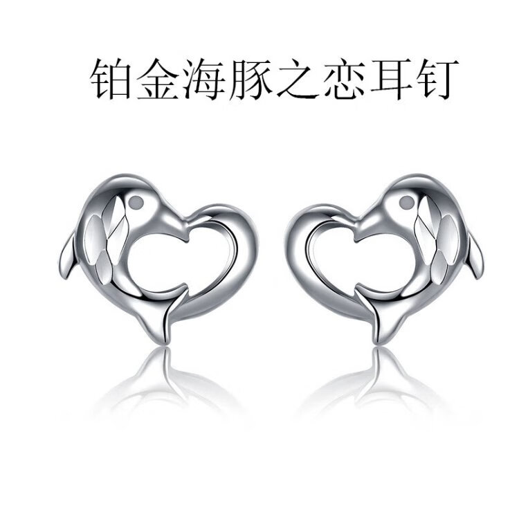 RHM platinum dolphin love earrings for women platinum heart-shaped niche high-end earrings birthday and Valentine's Day gift for girlfriend Platinum dolphin love earrings + certificate + gift box