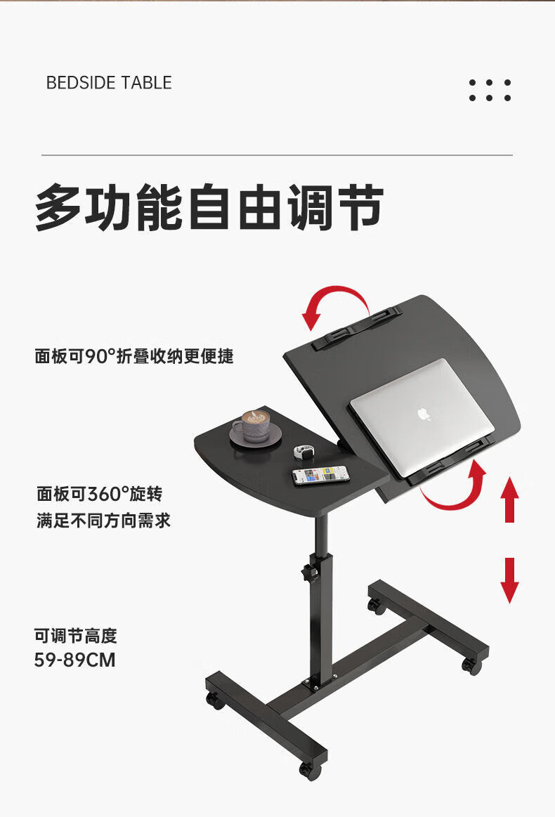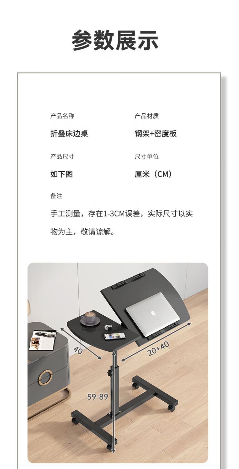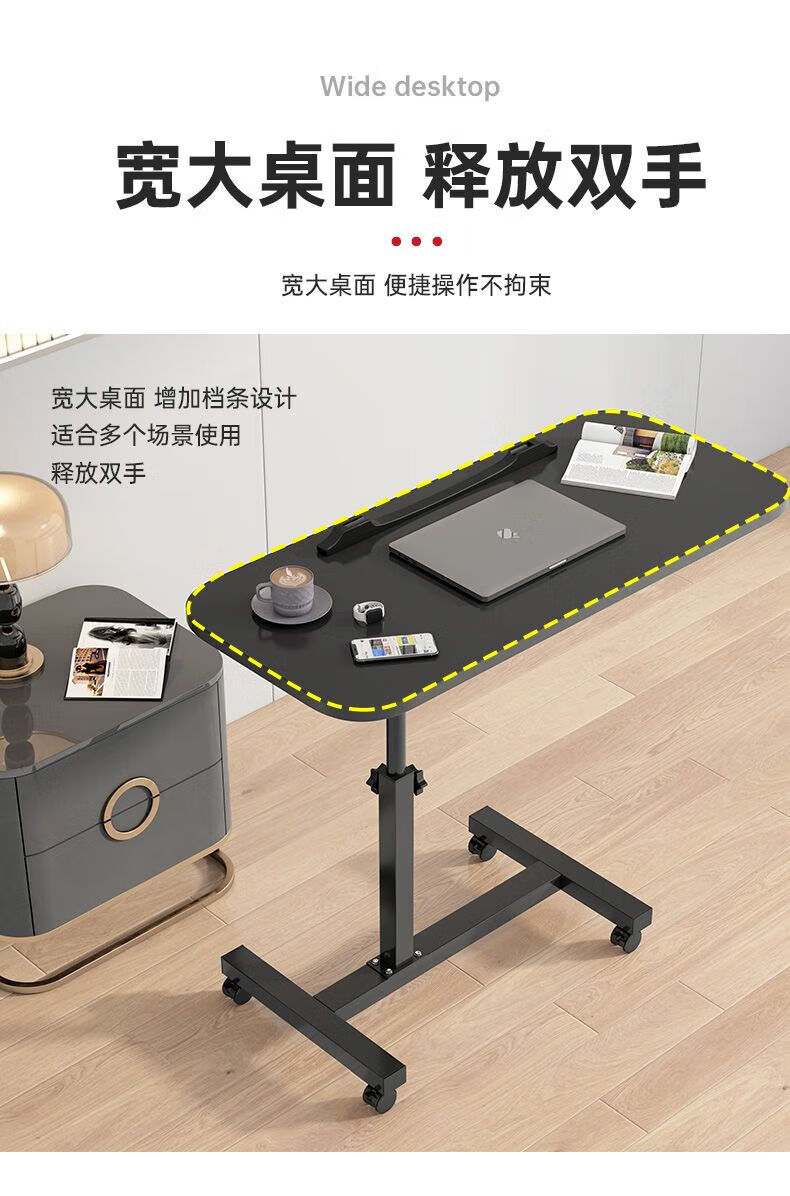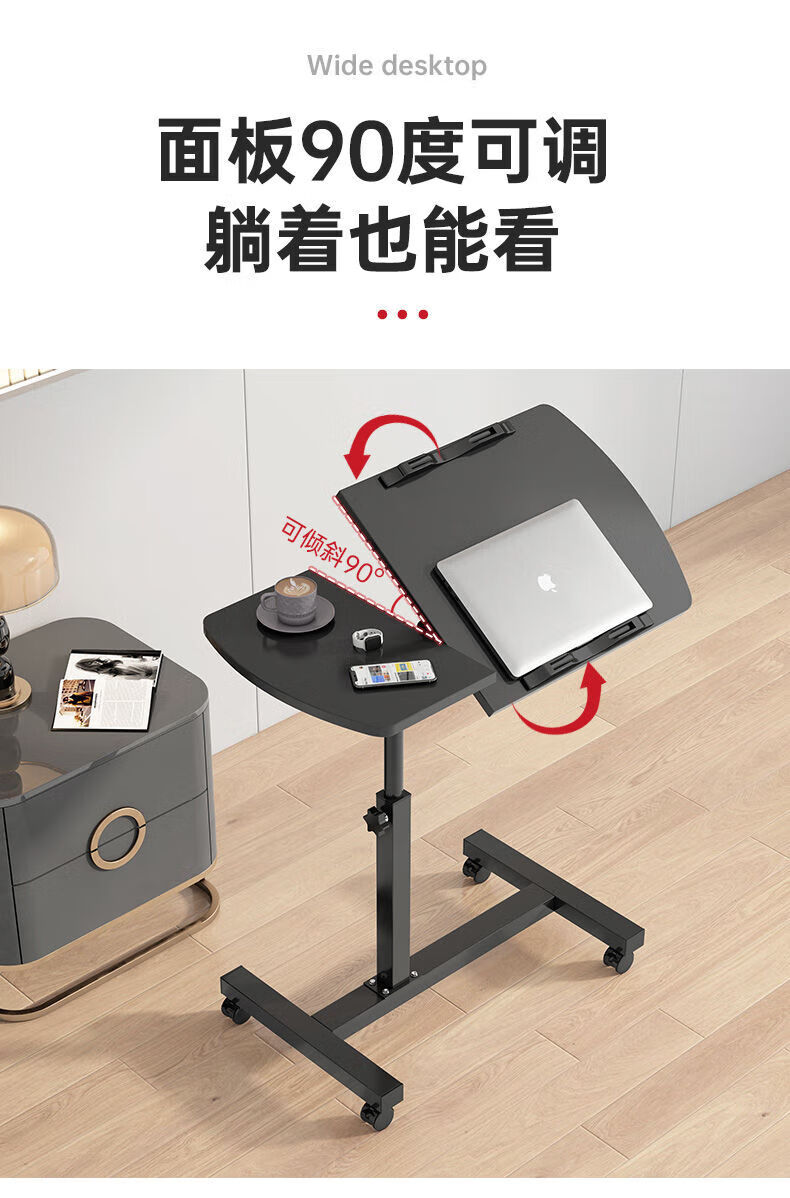 Desk, computer table, study table, lift table, bed table, office desk, simple folding small table, half tray, single rail, black 80*40cm