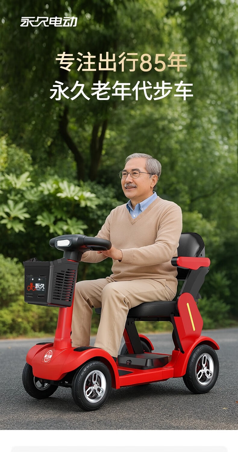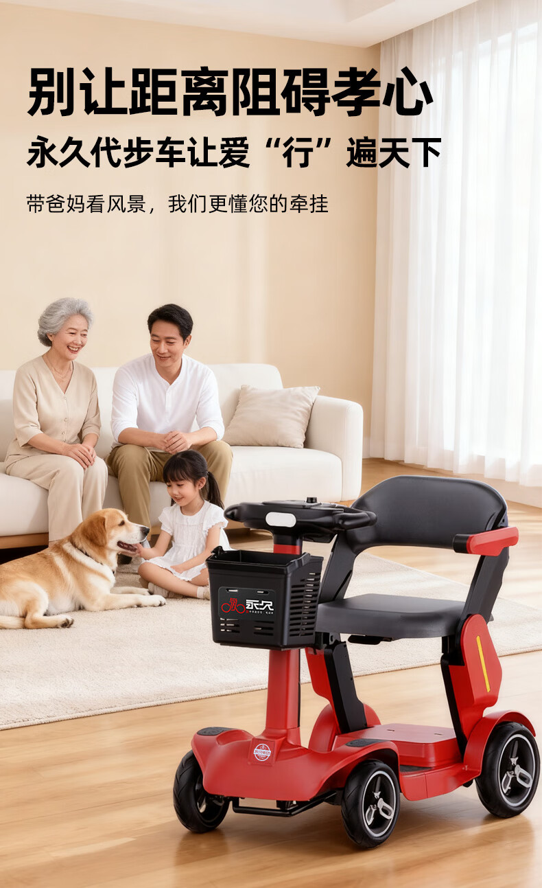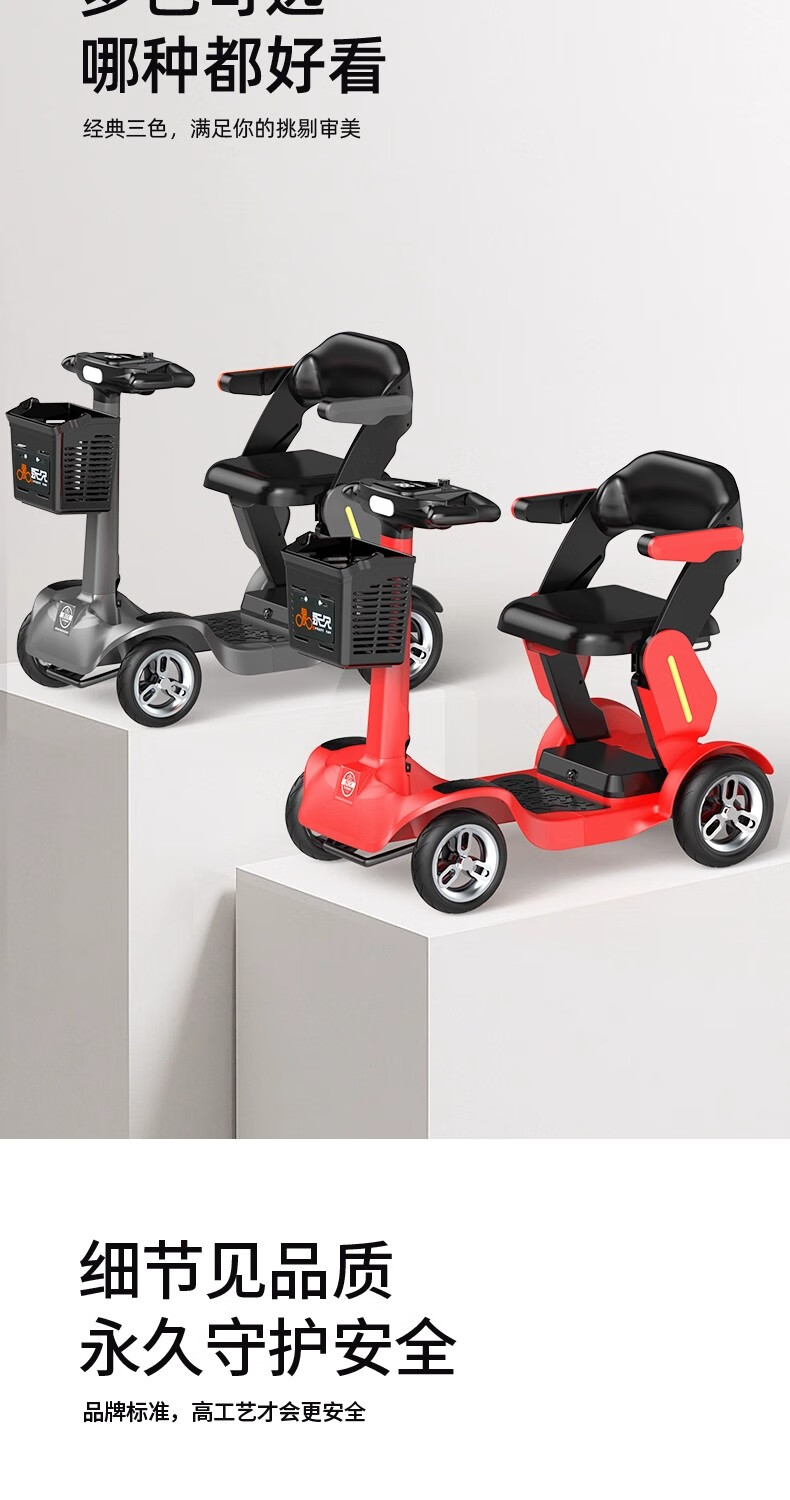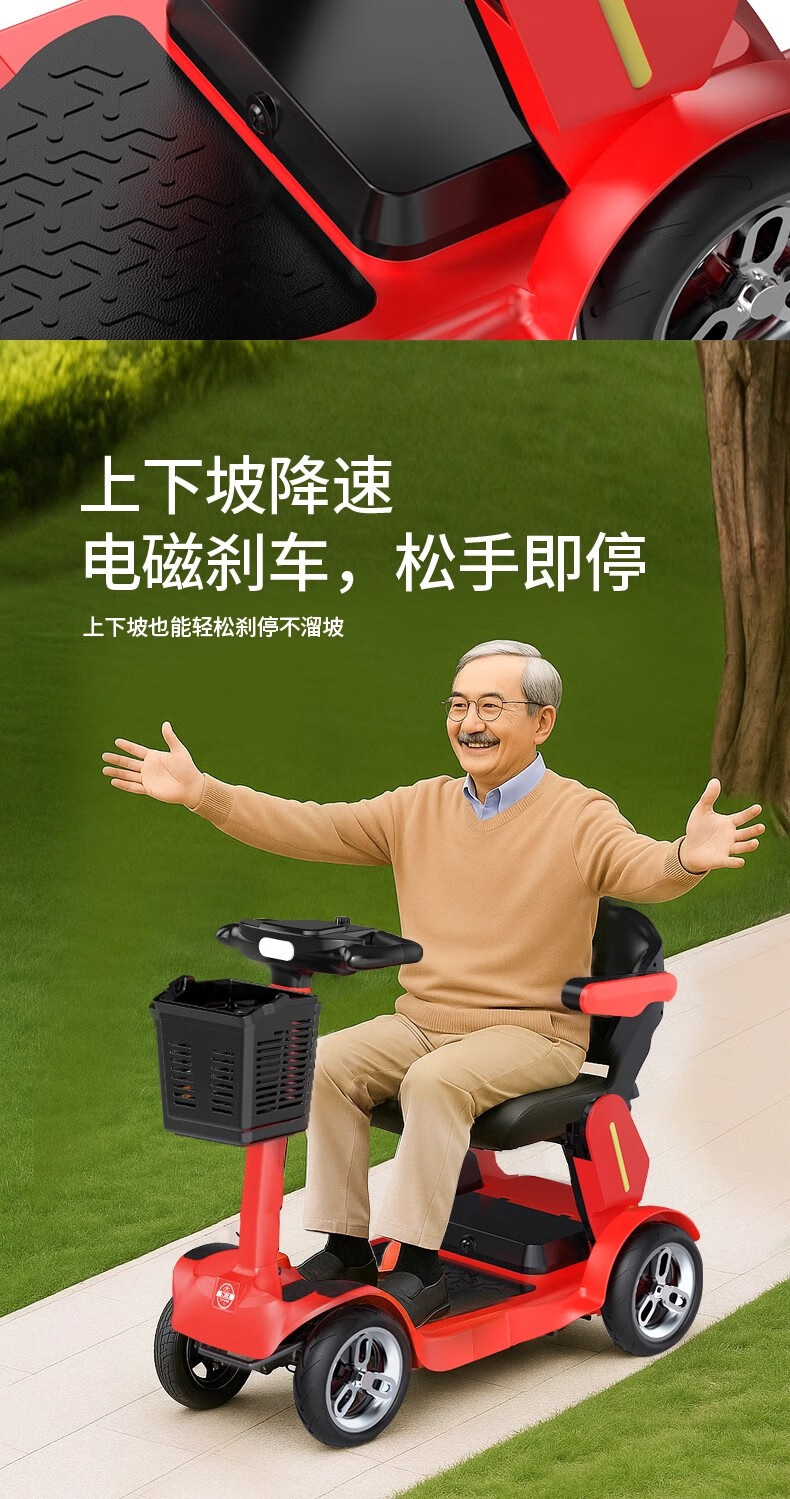 FOREVER electric scooter for the elderly, four-wheeled high-endurance electric folding electric car for the elderly, gift for adults for home use, removable battery - P1 red, 15A lithium battery foldable - intelligent safe driving system