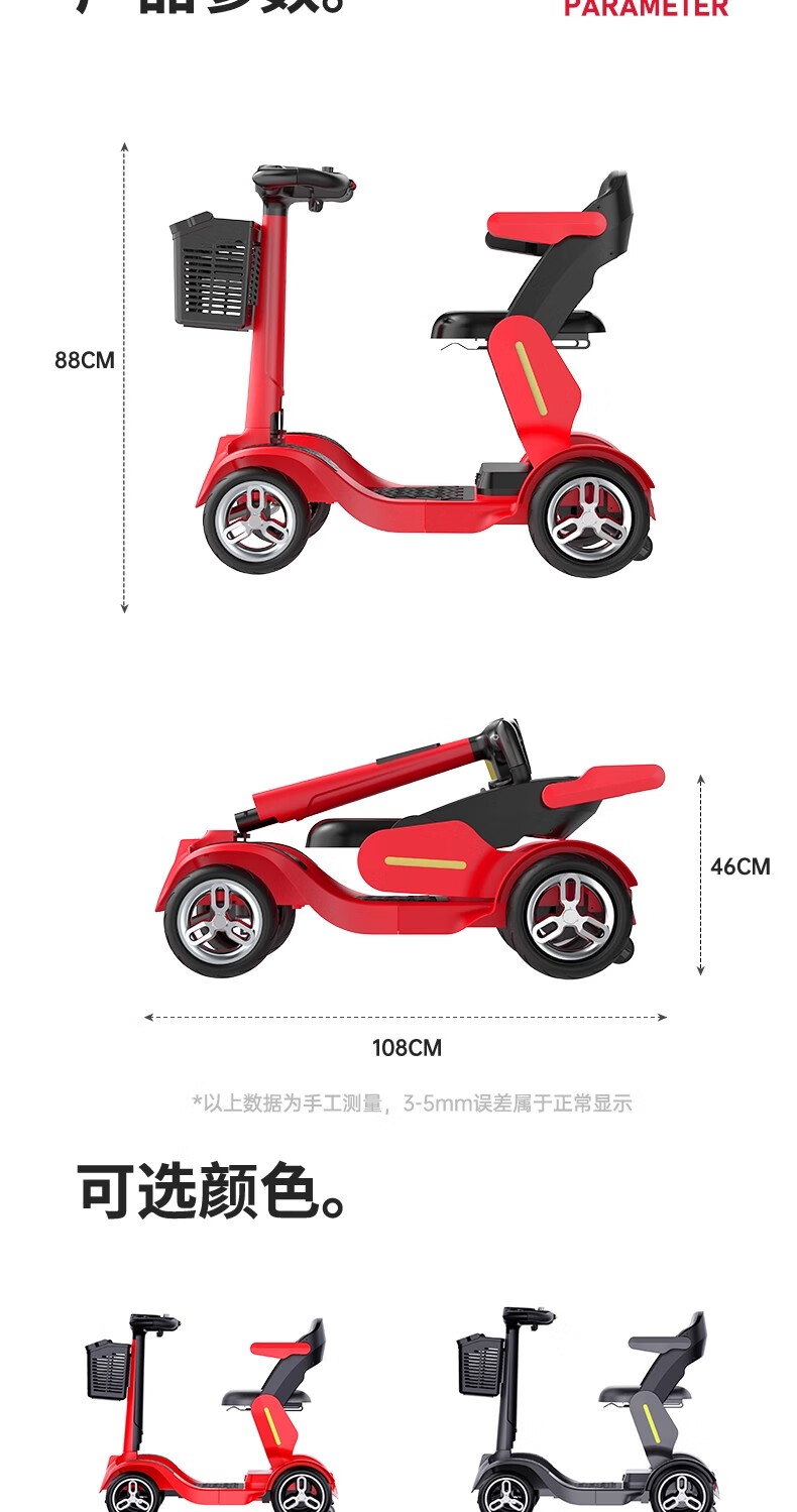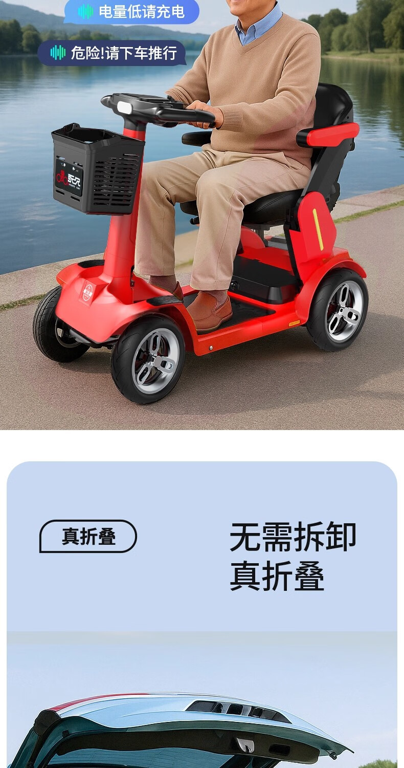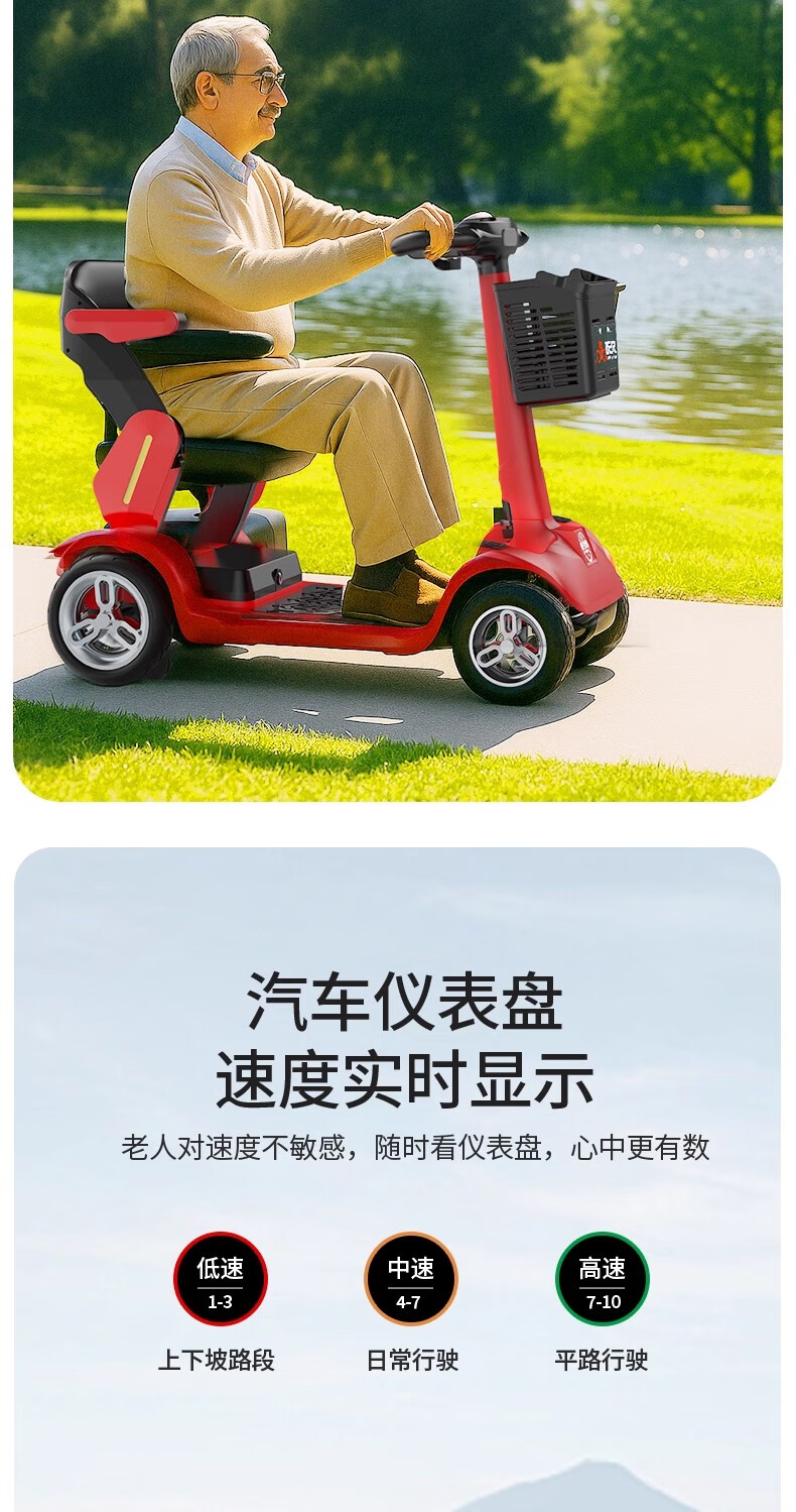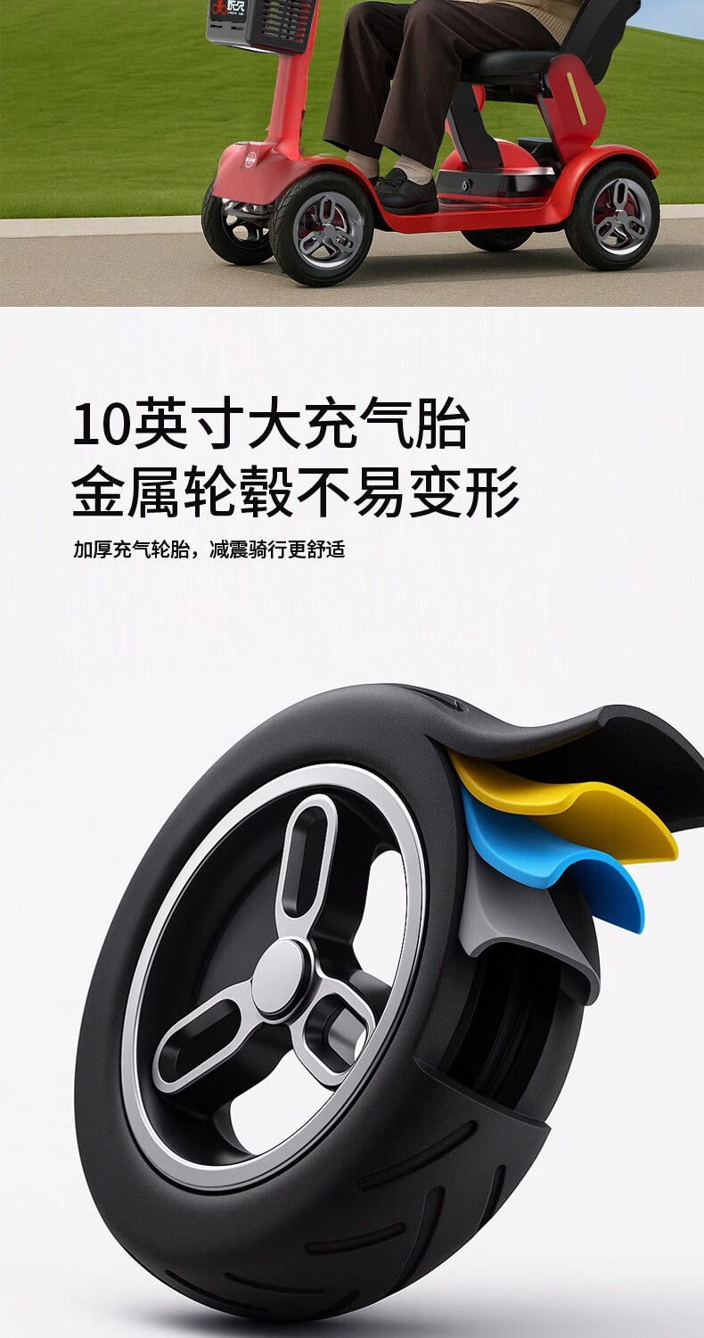 FOREVER electric scooter for the elderly, four-wheeled high-endurance electric folding electric car for the elderly, gift for adults for home use, removable battery - P1 red, 15A lithium battery foldable - intelligent safe driving system
