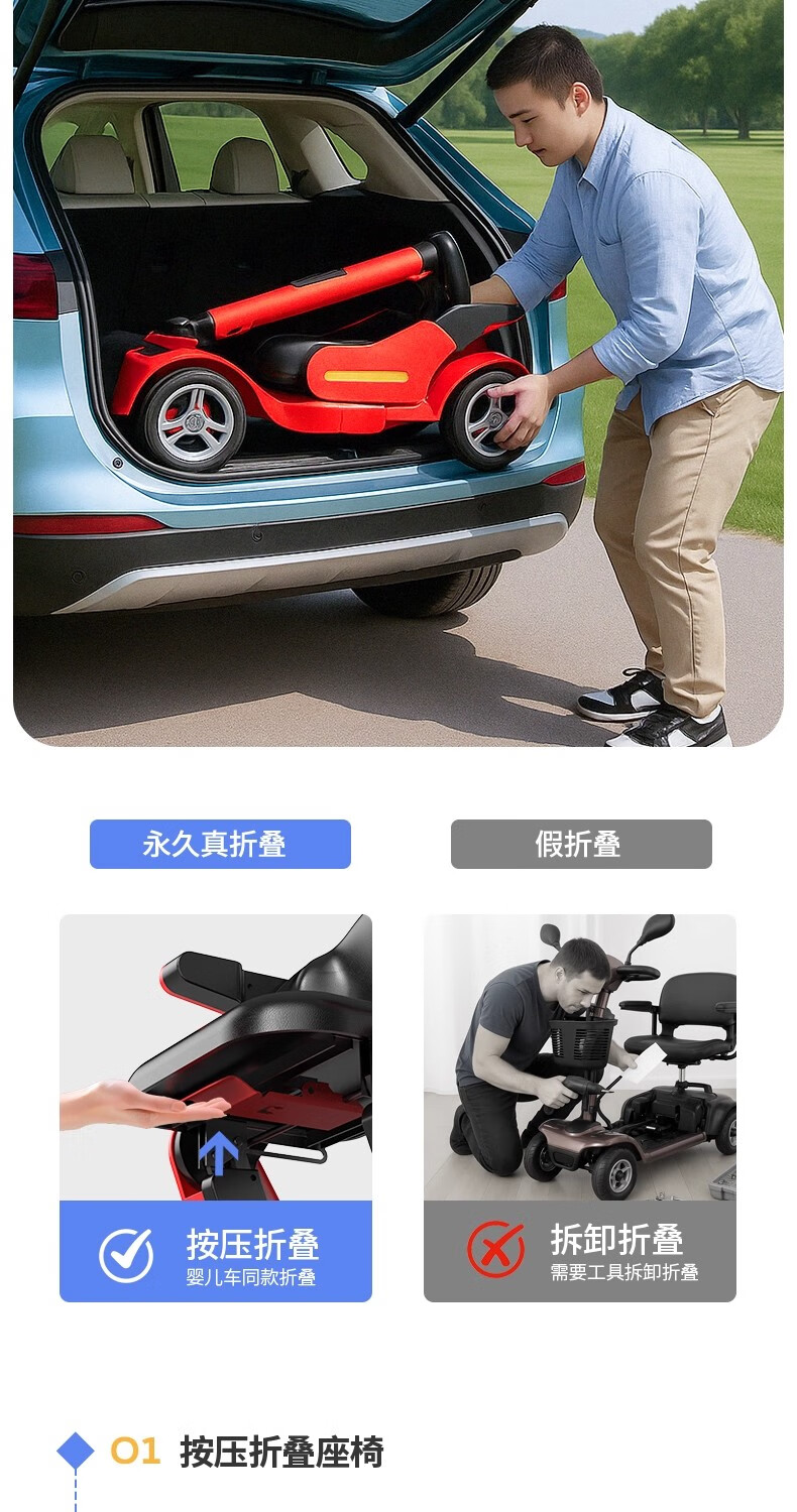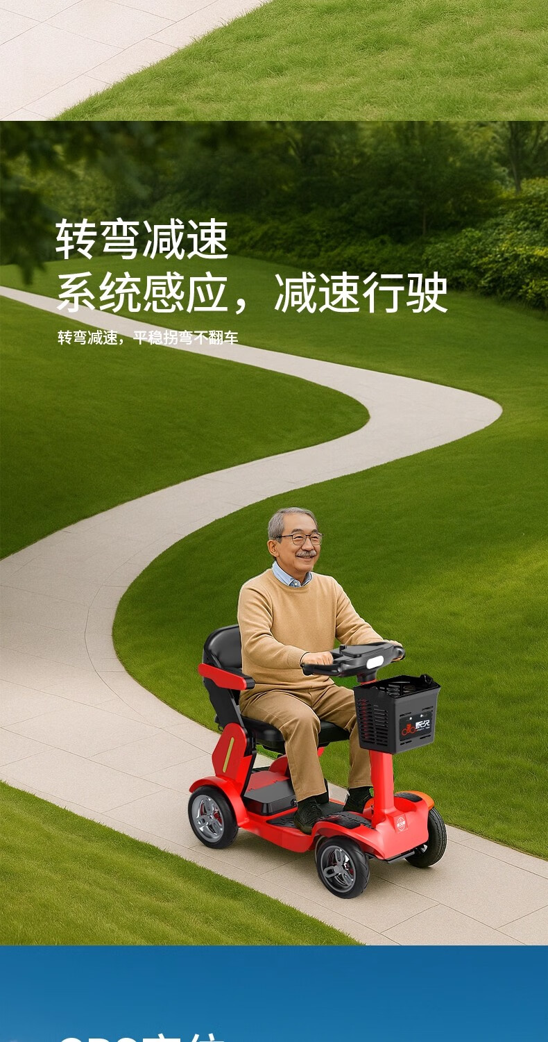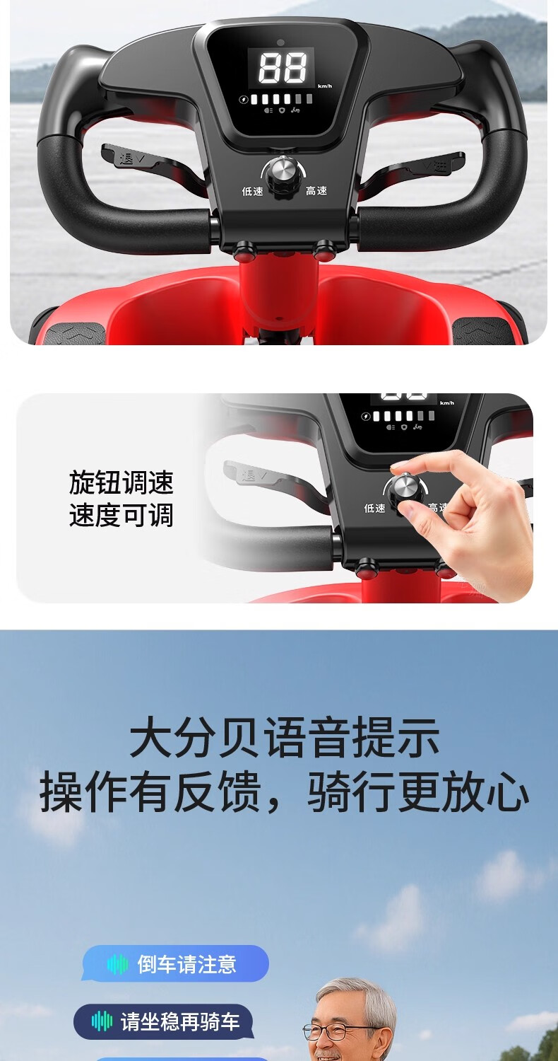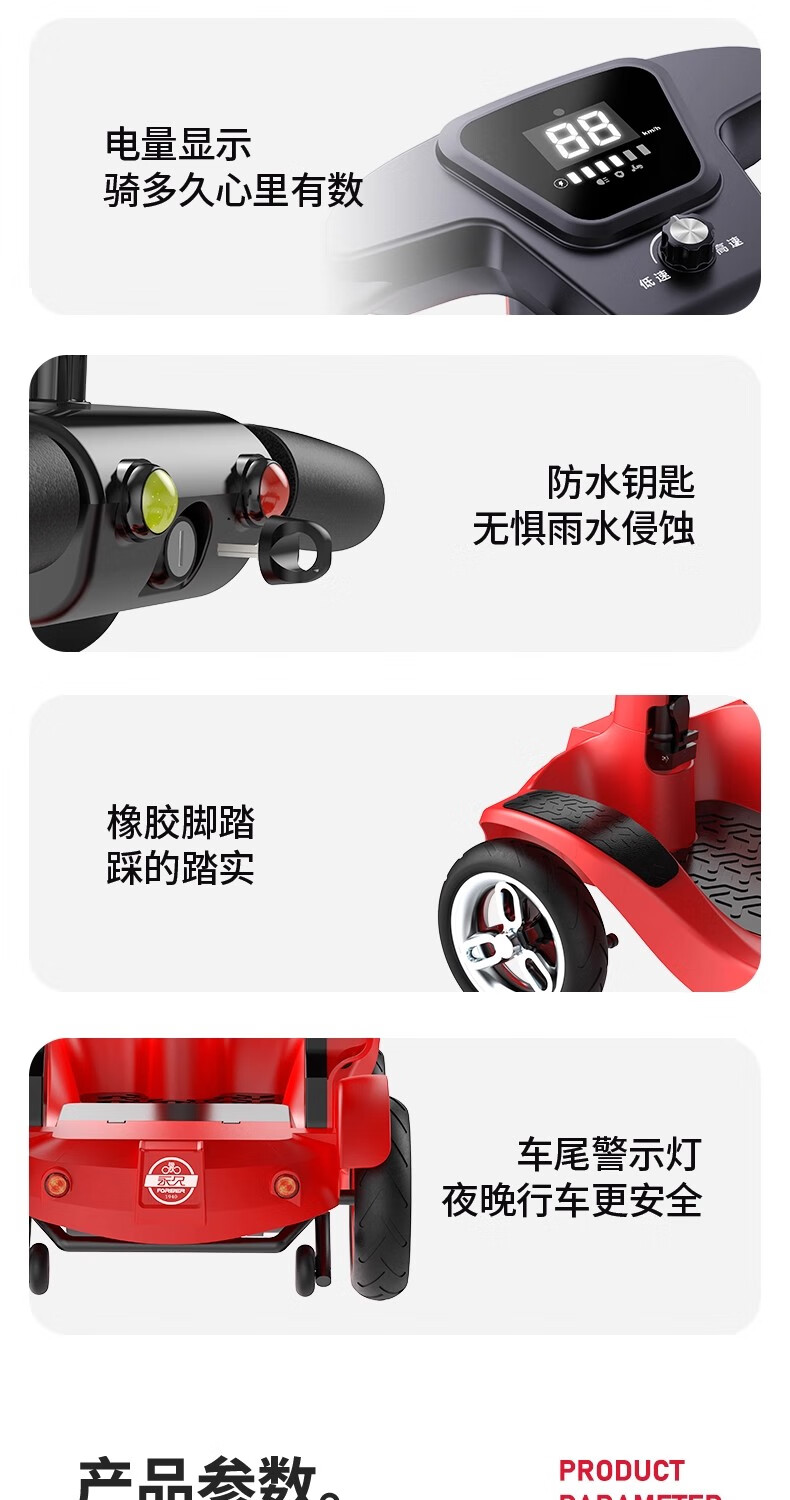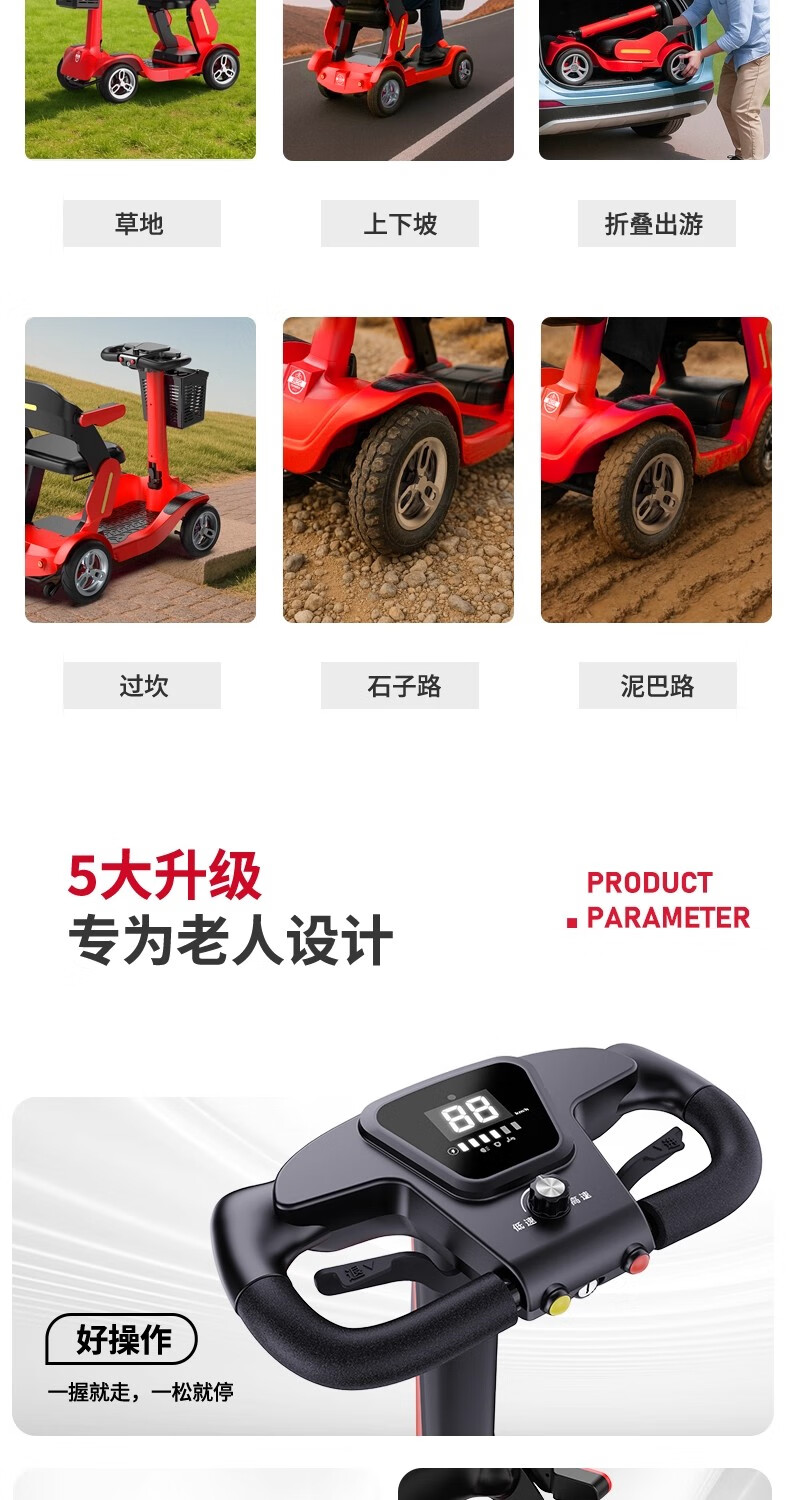 FOREVER electric scooter for the elderly, four-wheeled high-endurance electric folding electric car for the elderly, gift for adults for home use, removable battery - P1 red, 15A lithium battery foldable - intelligent safe driving system