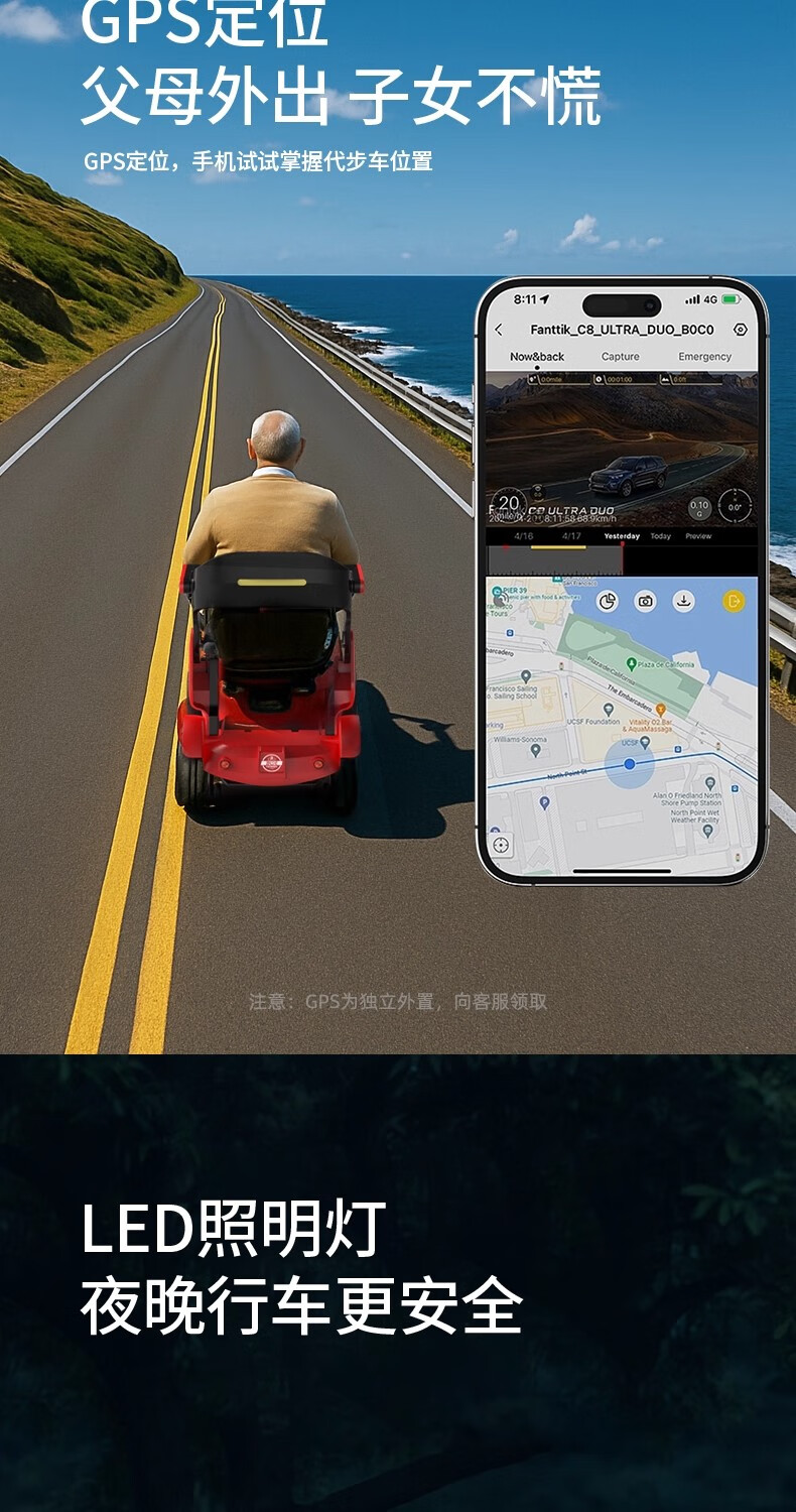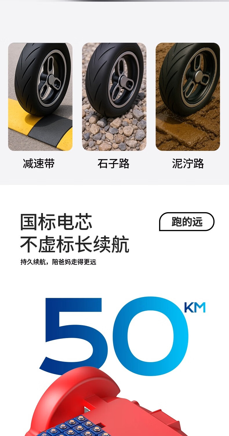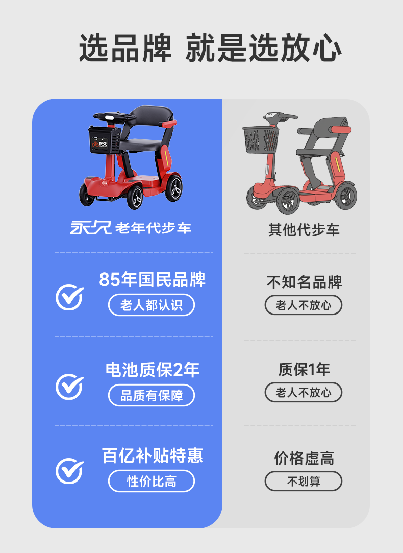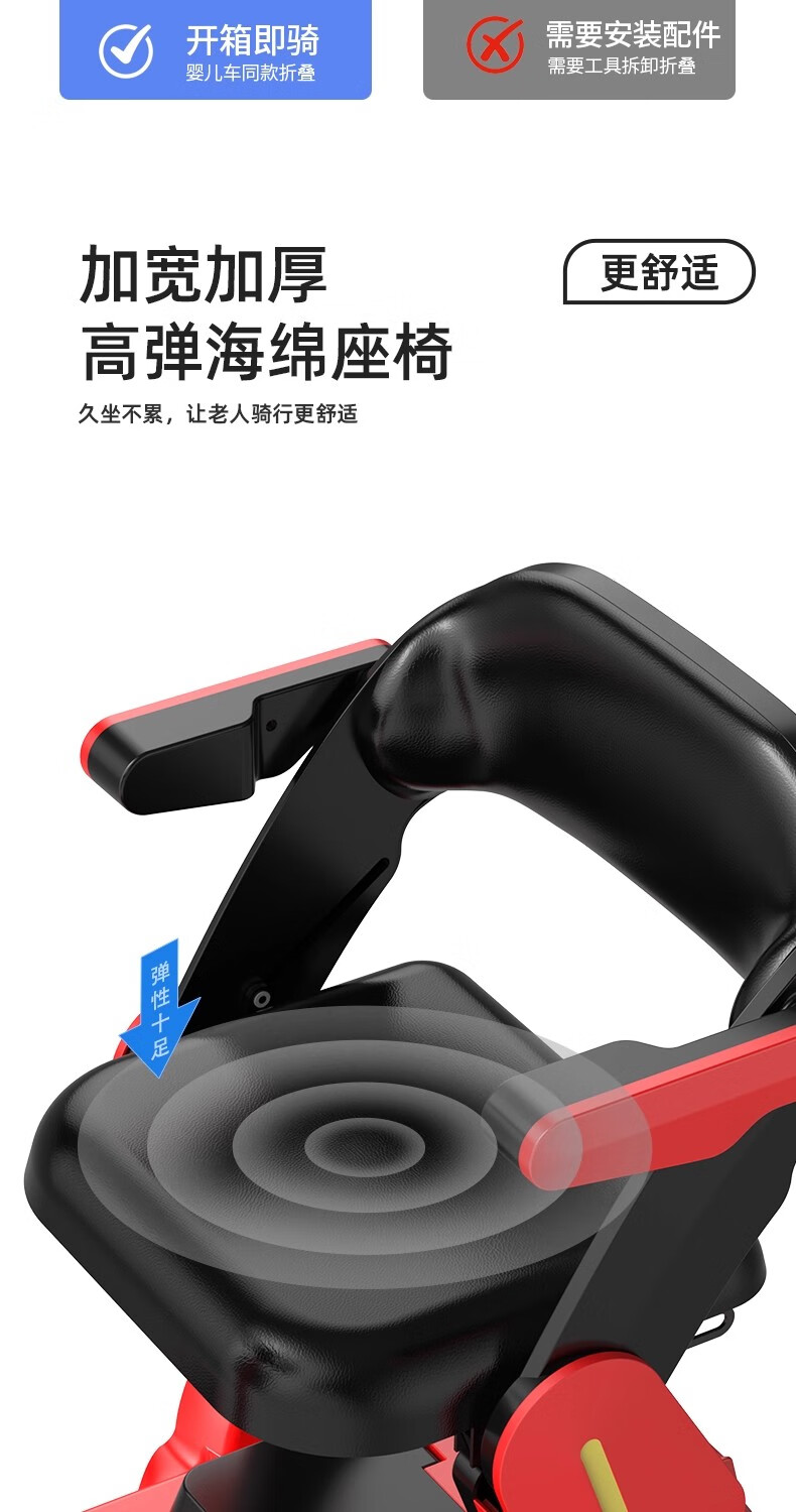 FOREVER electric scooter for the elderly, four-wheeled high-endurance electric folding electric car for the elderly, gift for adults for home use, removable battery - P1 red, 15A lithium battery foldable - intelligent safe driving system