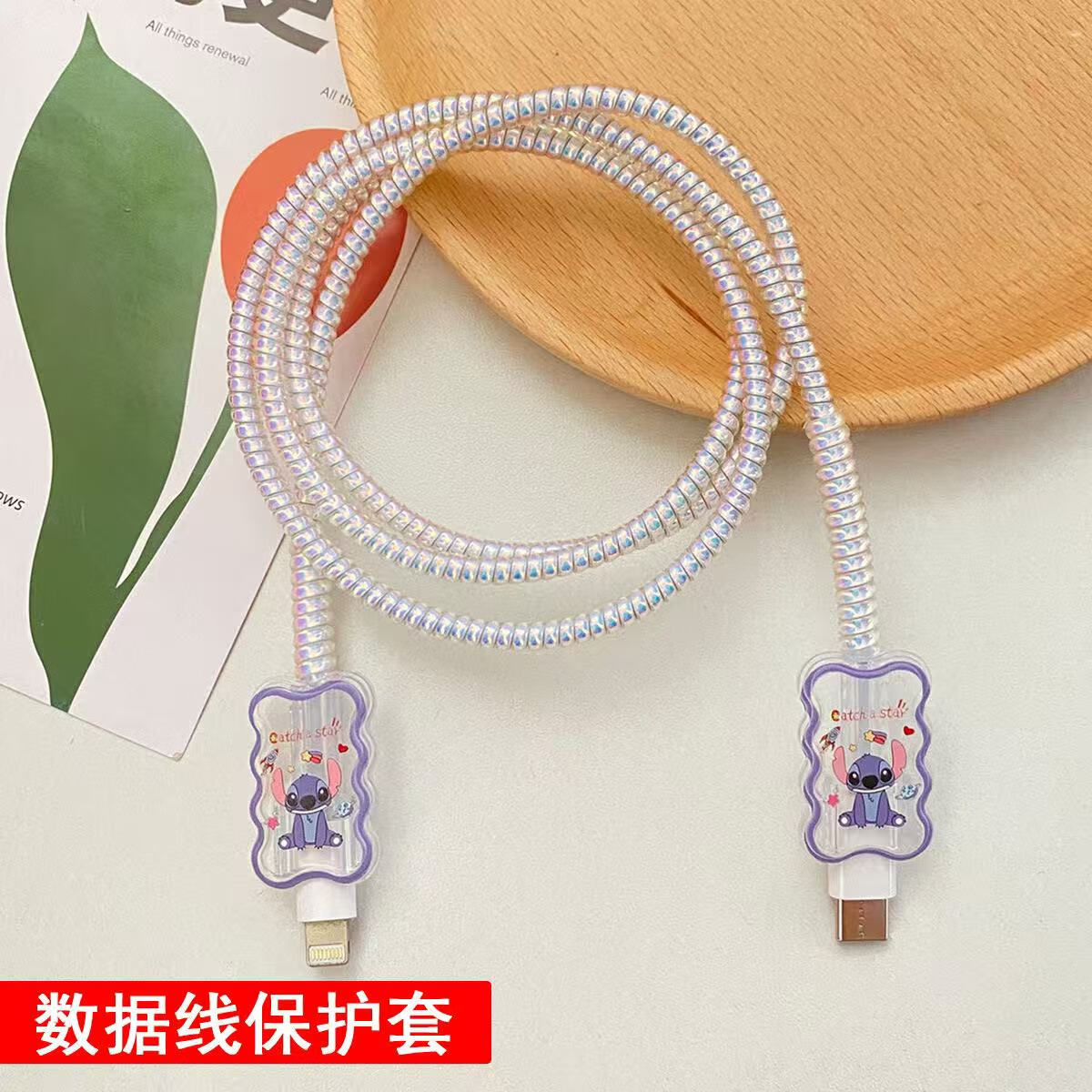Stitch DIY data cable protection four-piece set suitable for Apple Android Huawei oppo Xiaomi vivo does not include charger protective cover anti-dirty and anti-breakage Stitch charging cartoon data cable protection four-piece set