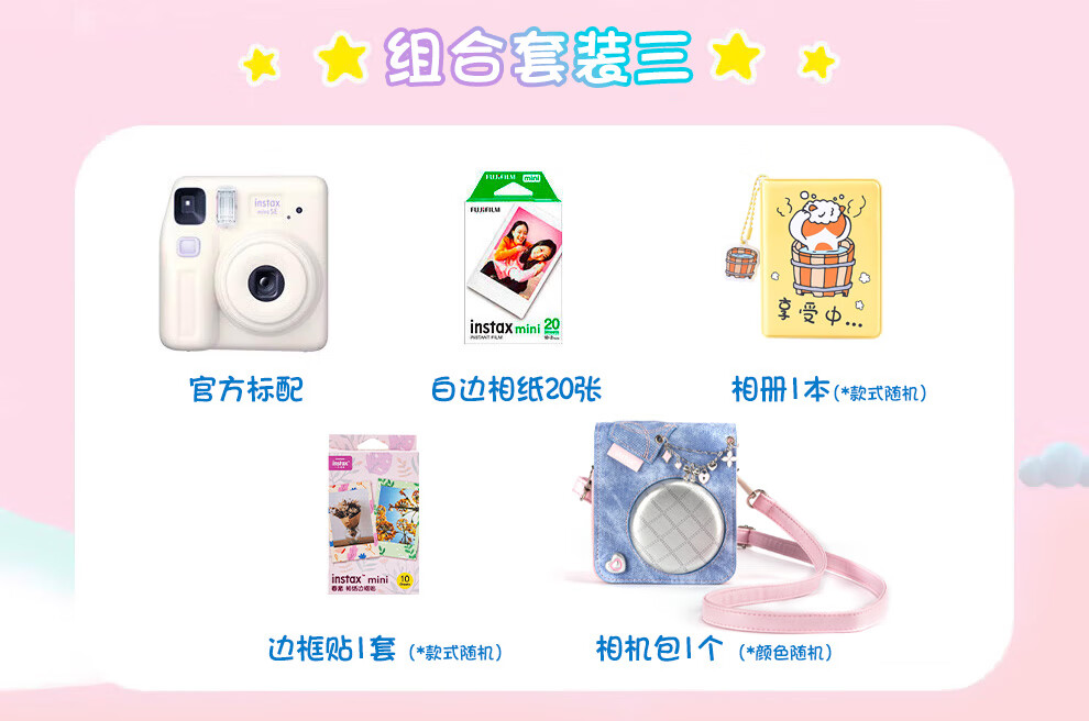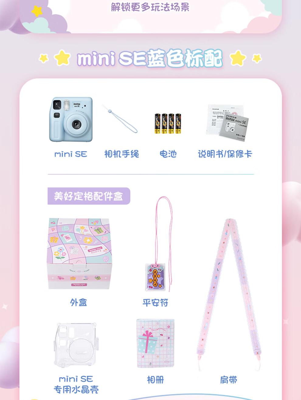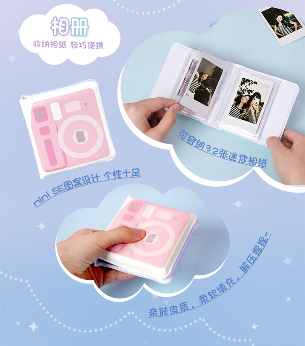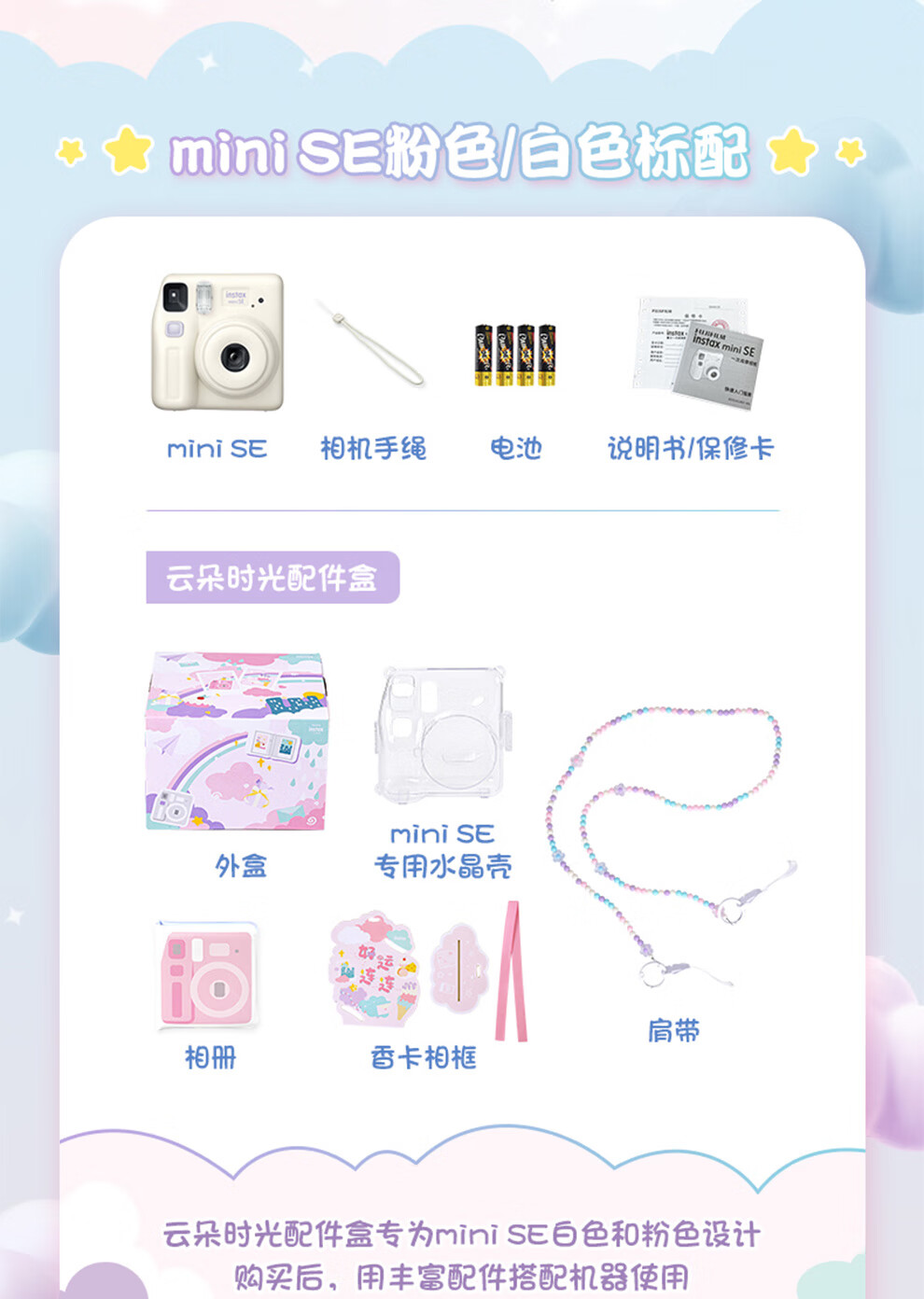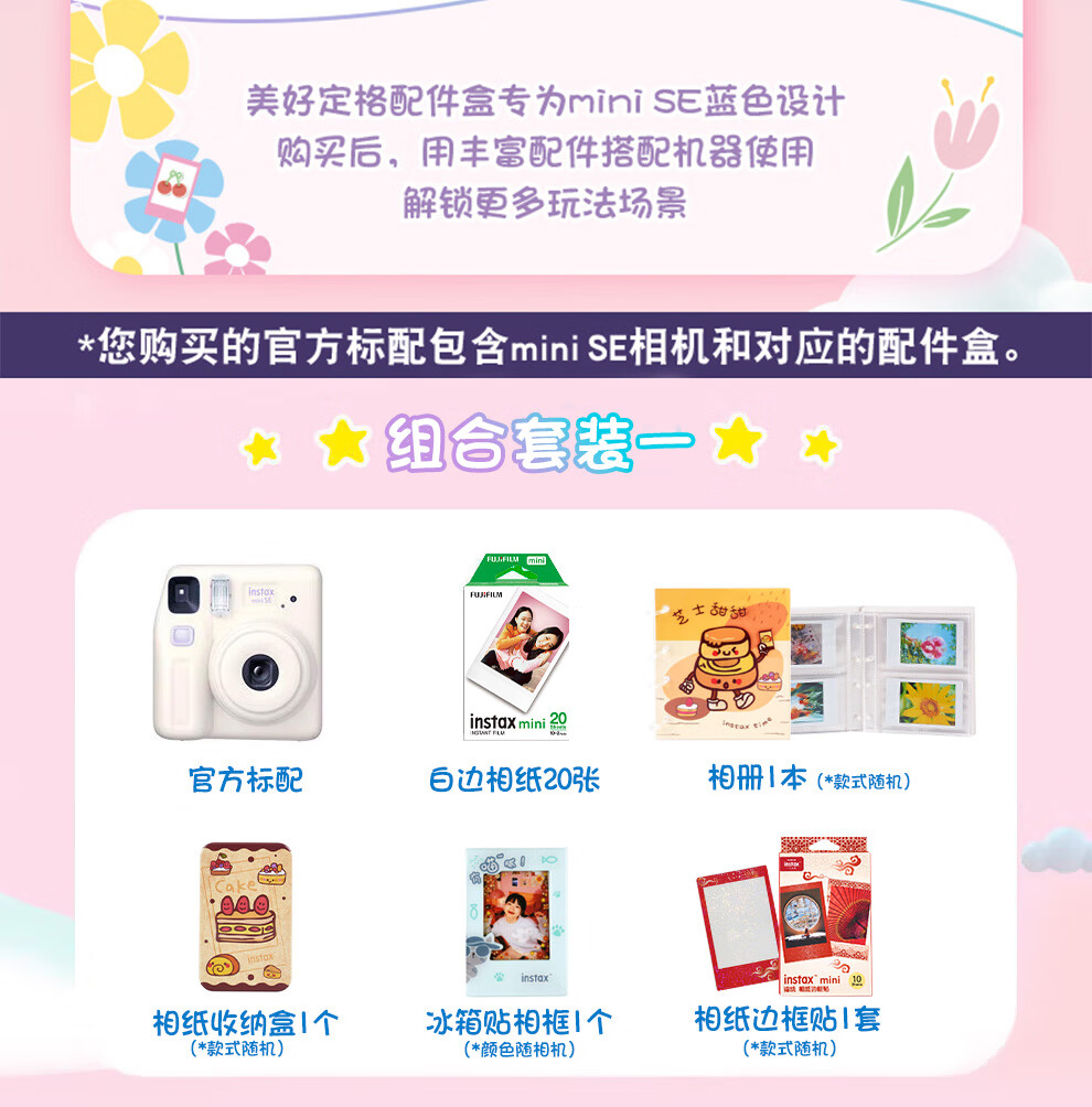 FUJIFILM instax Mini SE instant camera uses 3-inch photo paper, white photo paper combination set 2, including standard + 20 pieces of photo paper + peripheral accessories, official standard, can write greeting cards on behalf of others