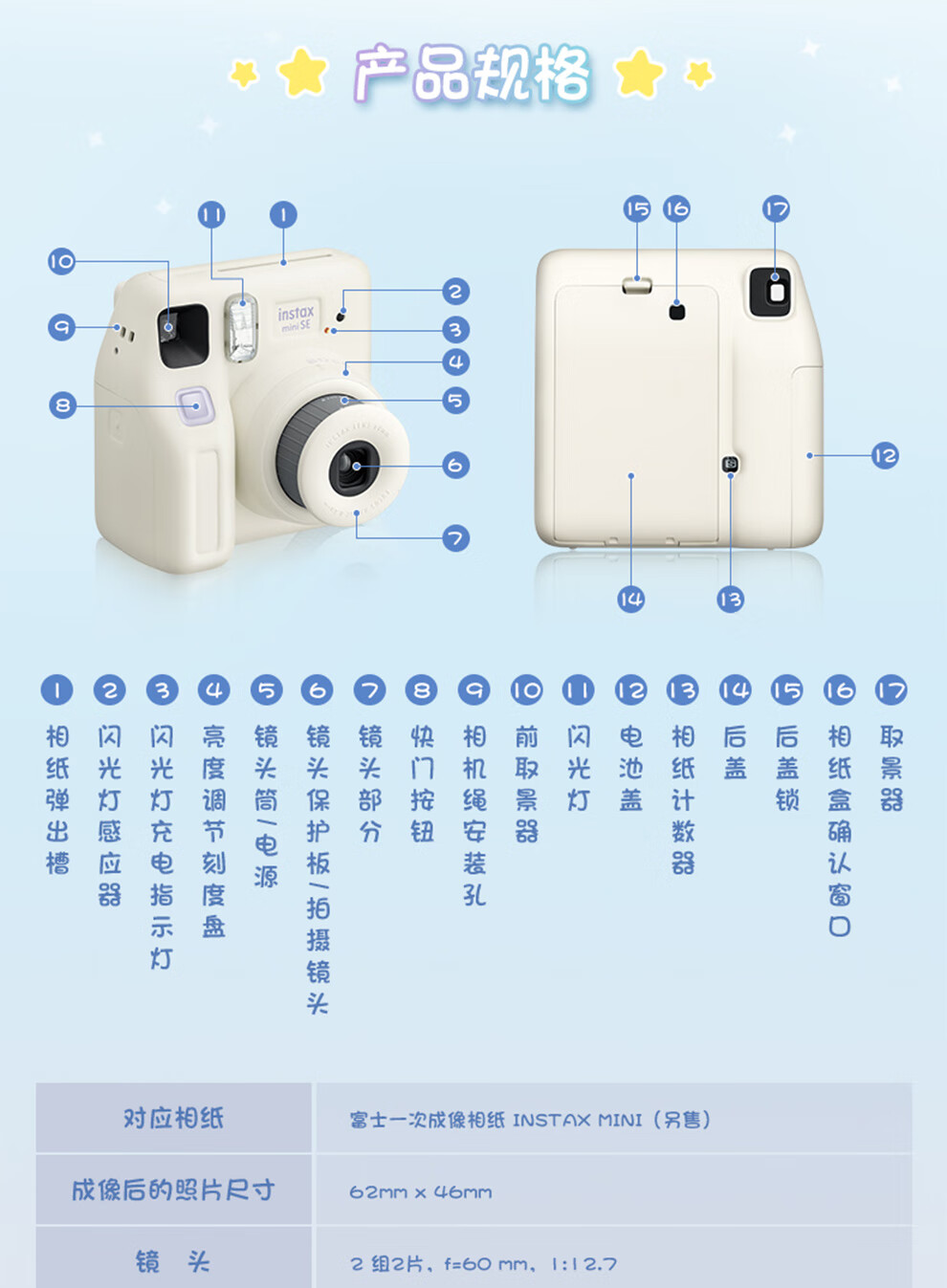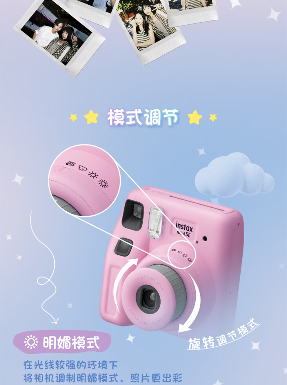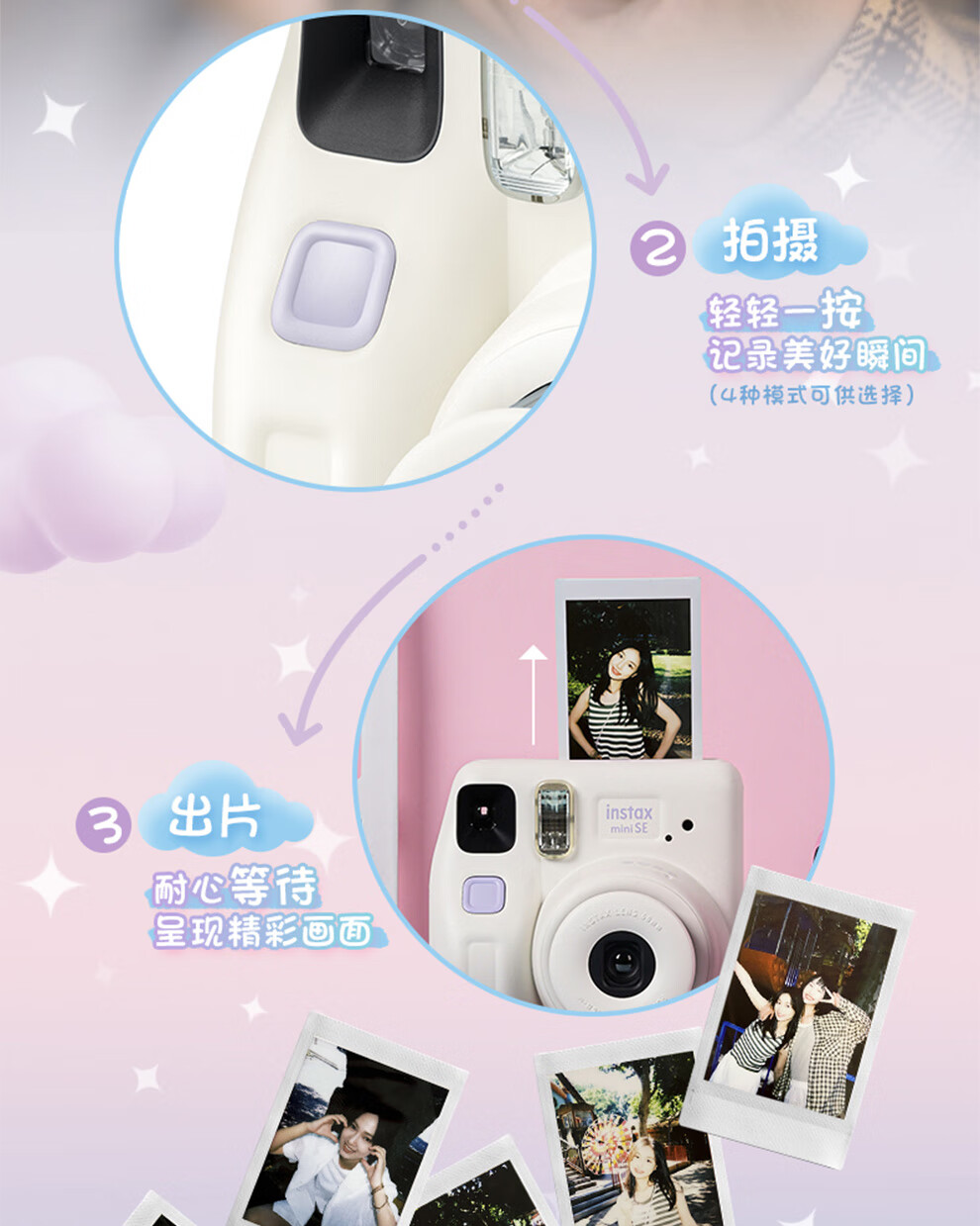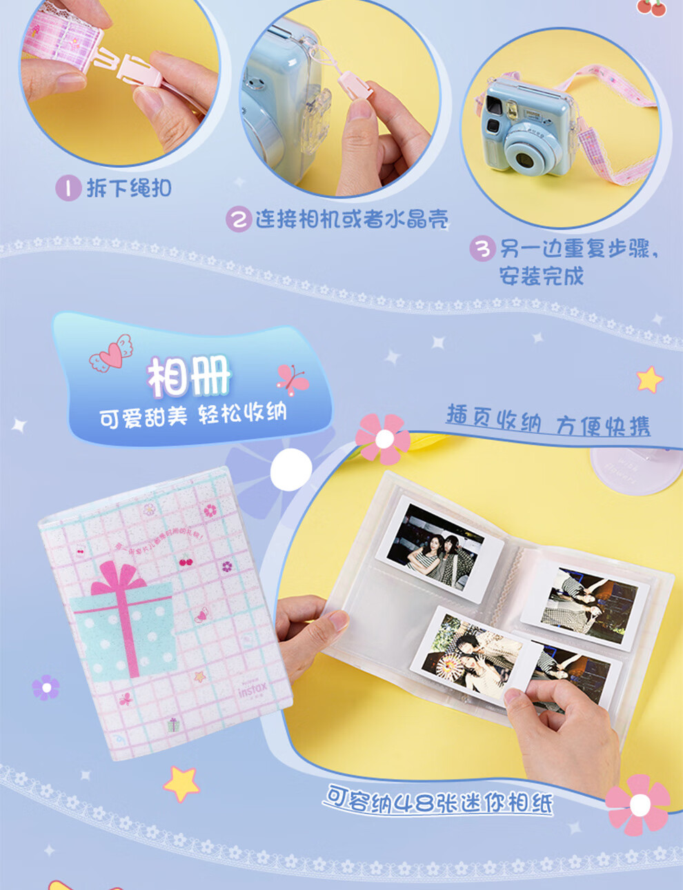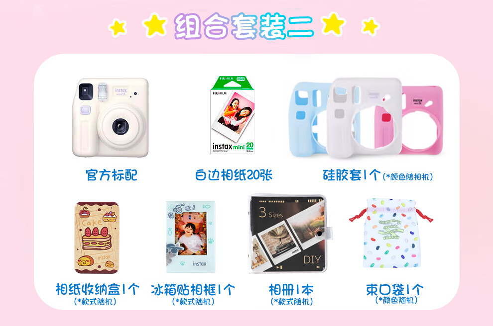 FUJIFILM instax Mini SE instant camera uses 3-inch photo paper, white photo paper combination set 2, including standard + 20 pieces of photo paper + peripheral accessories, official standard, can write greeting cards on behalf of others