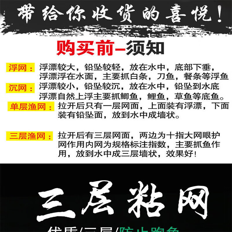 Shushe silk net fishing net three-layer sunken net single-layer floating net hanging fish net white striped crucian carp three-layer sunken net 1 finger 20 meters 1 meter high
