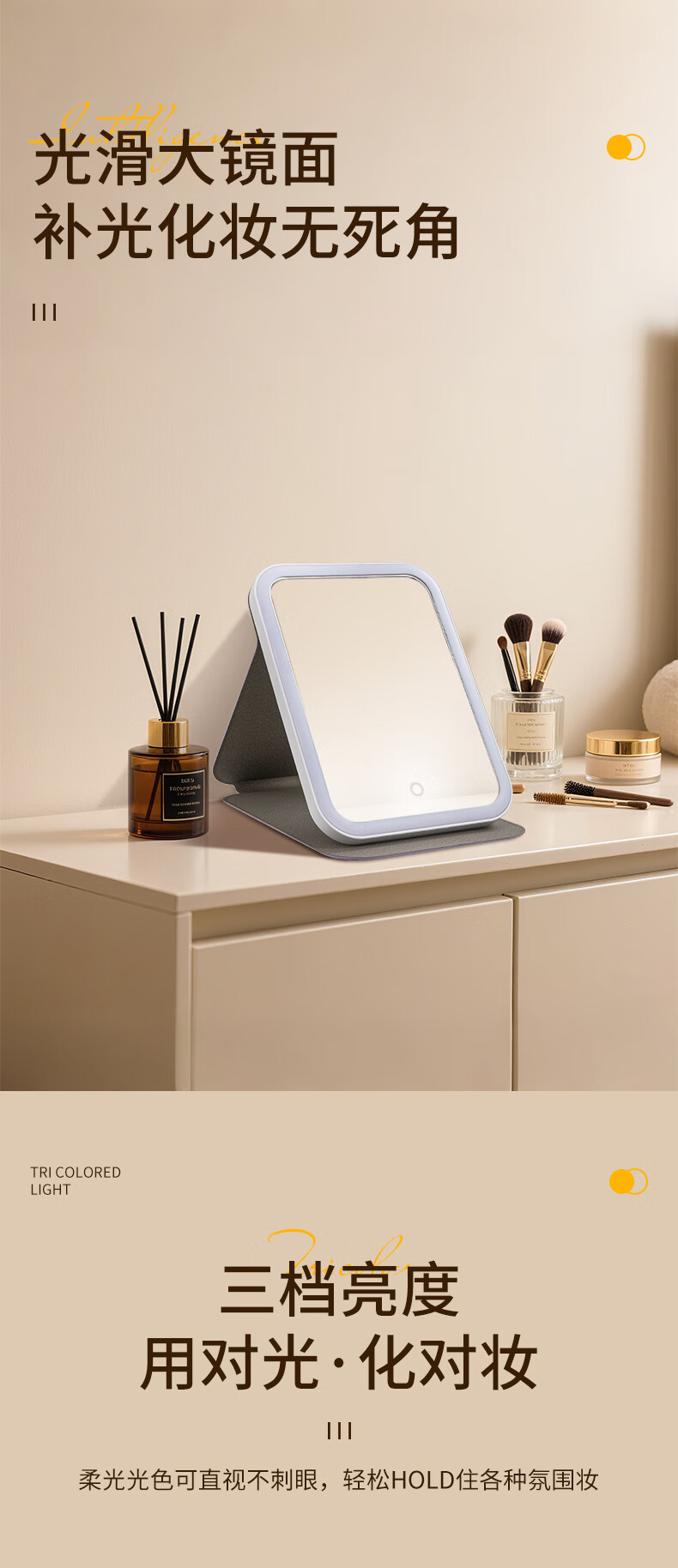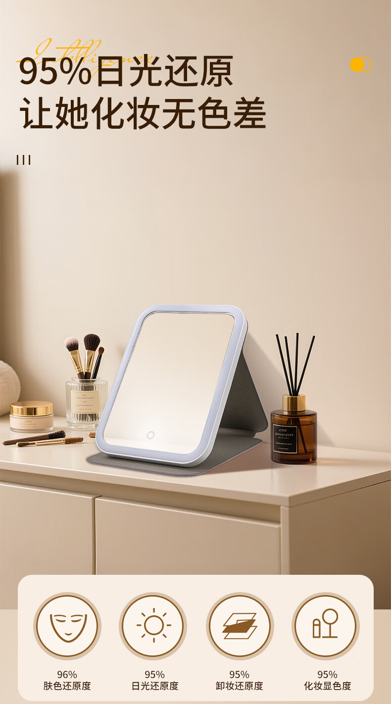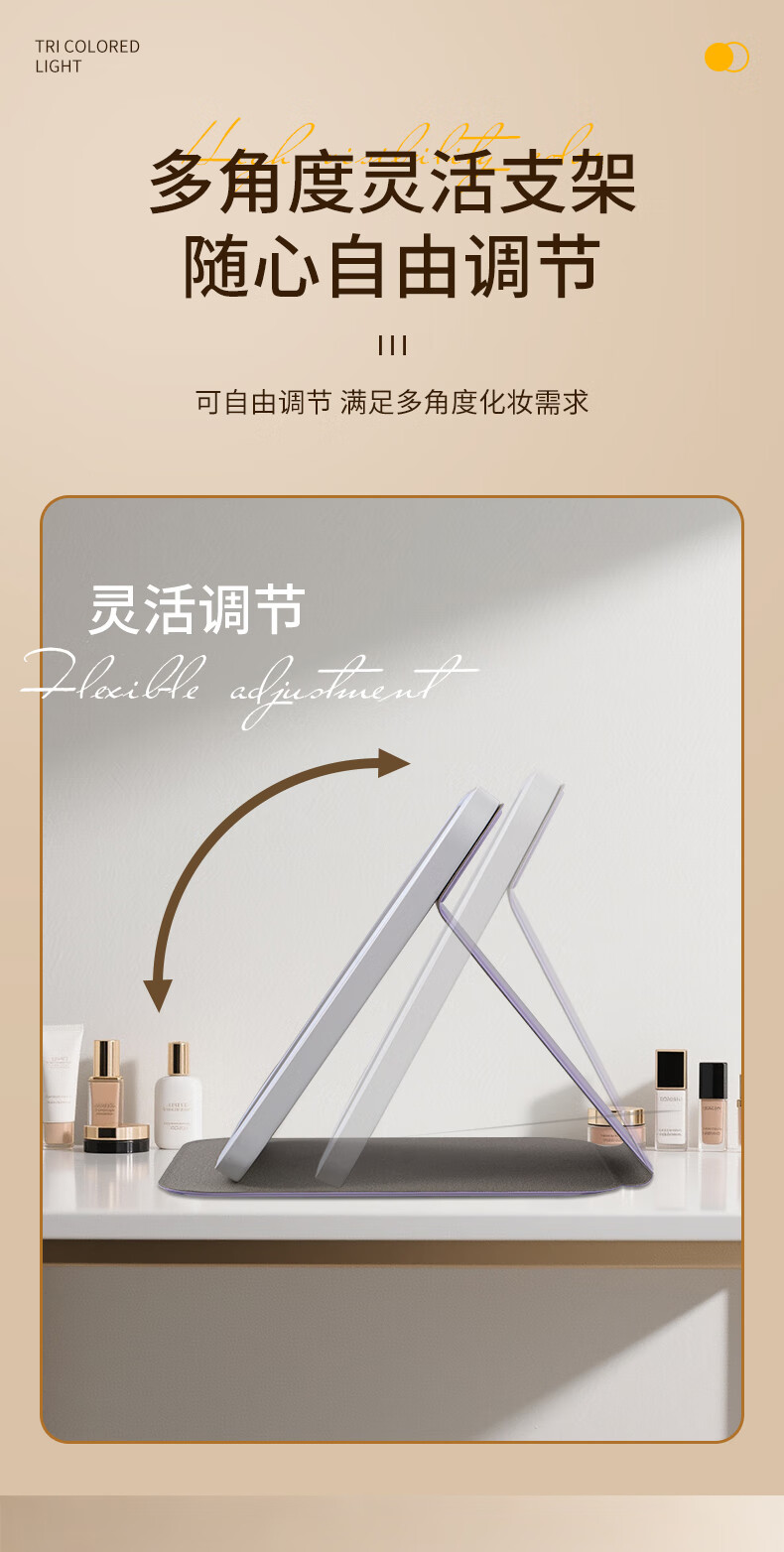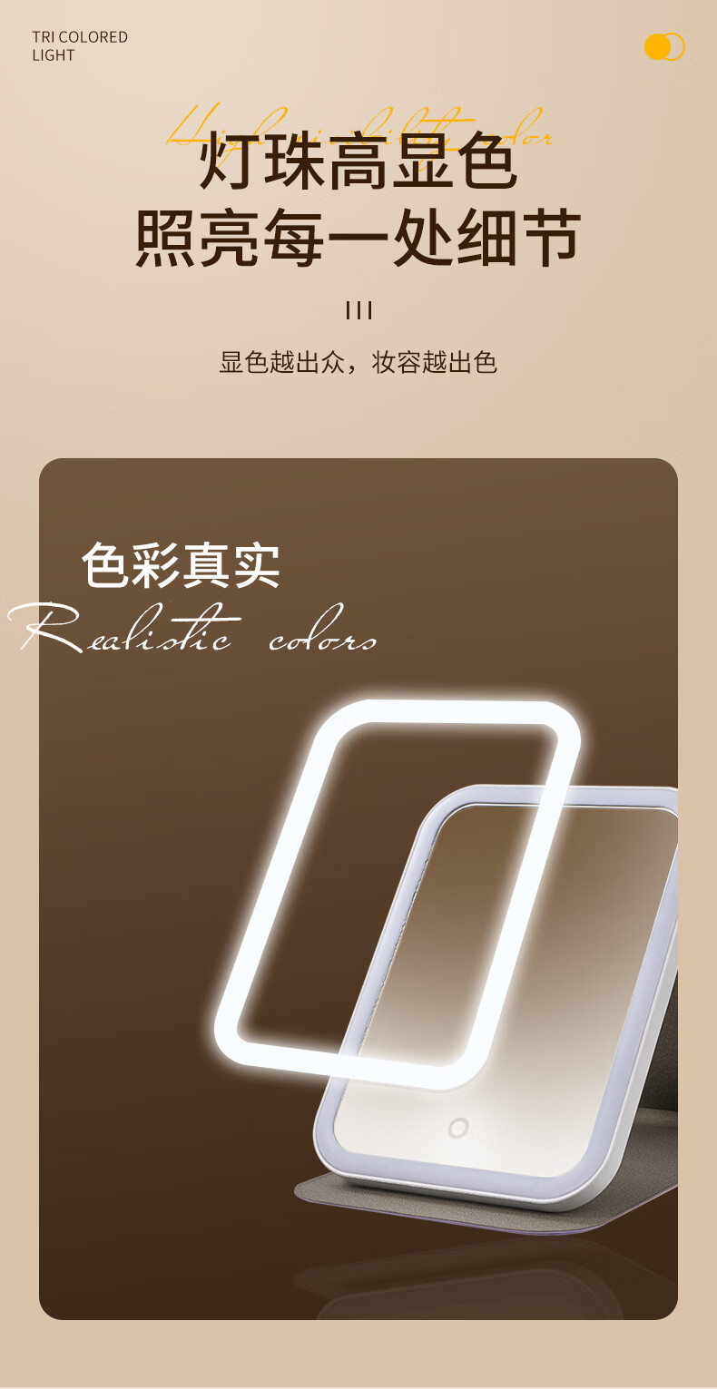 Picot portable beauty and makeup LED lighting mirror with three levels of high-definition soft light