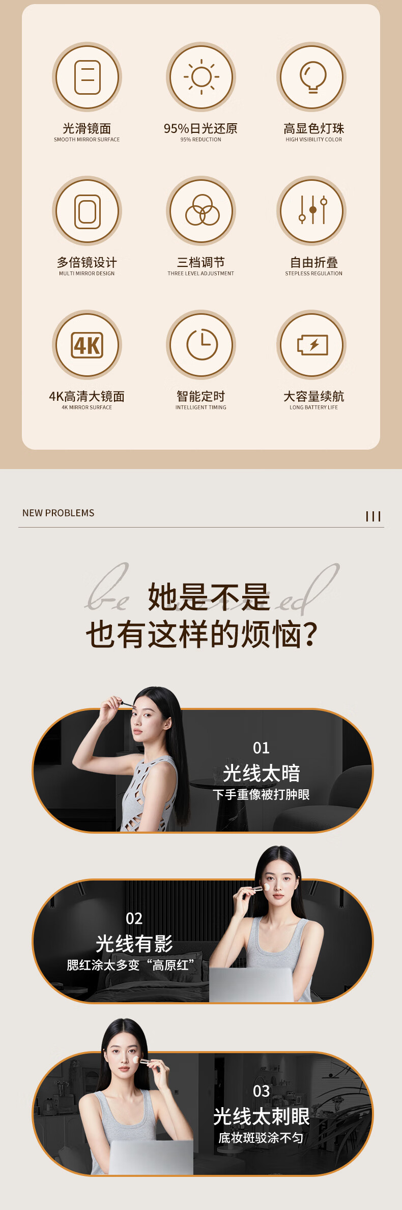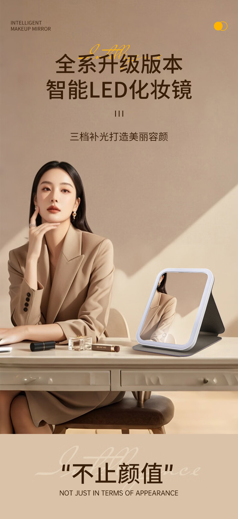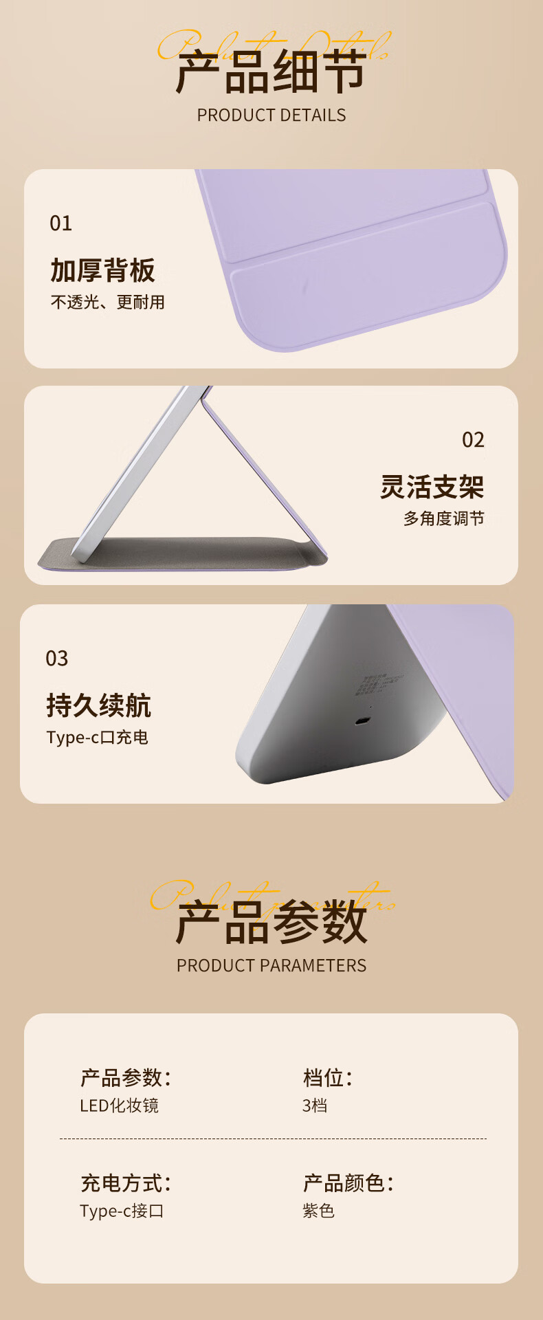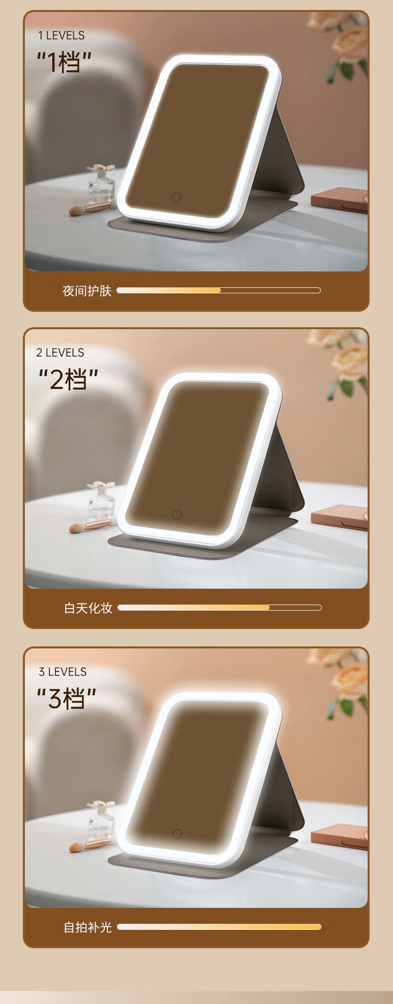 Picot portable beauty and makeup LED lighting mirror with three levels of high-definition soft light