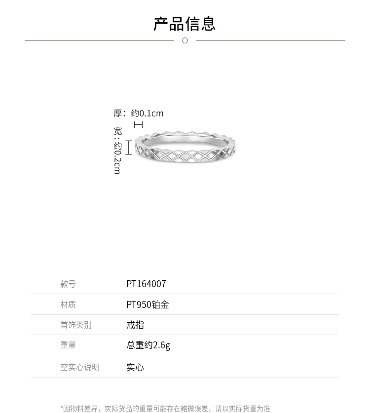 Chow Tai Fook Perfect Love Series Couple’s Platinum Ring Women’s Single Gift PT164007 No. 15