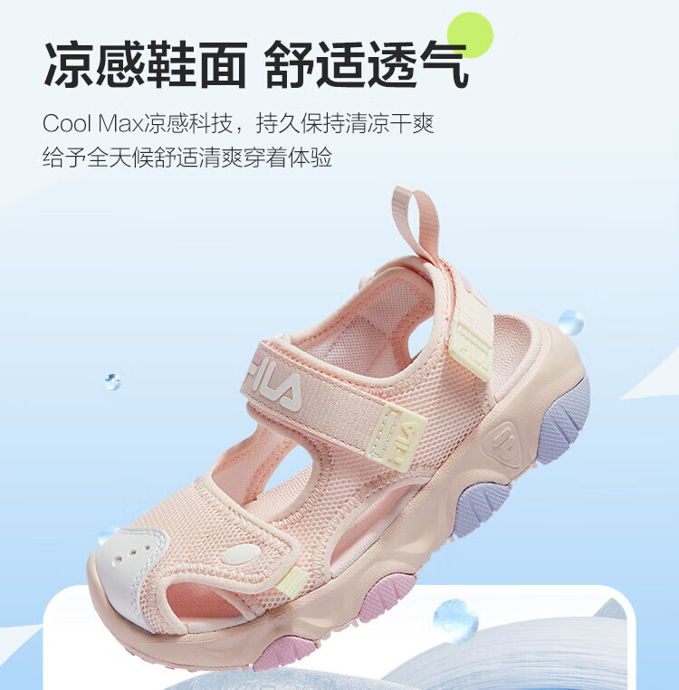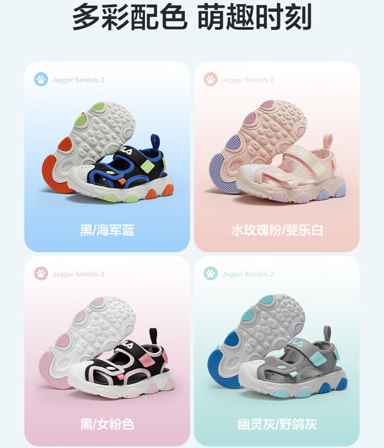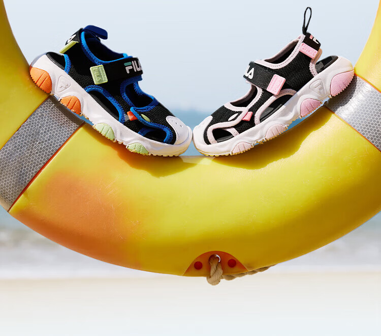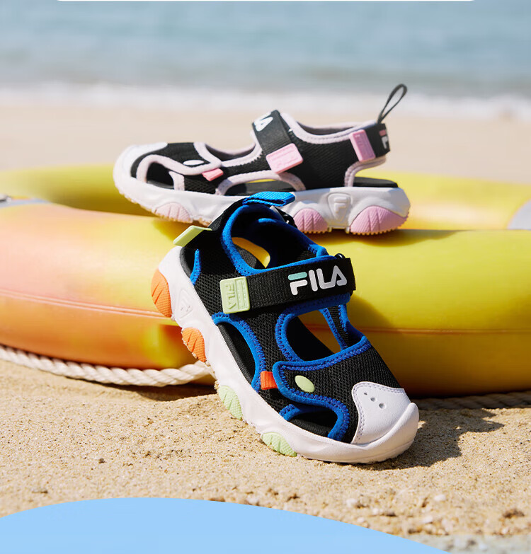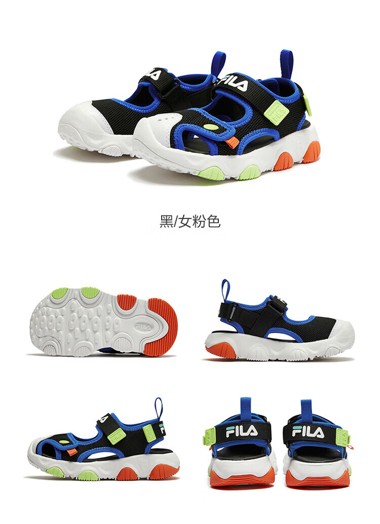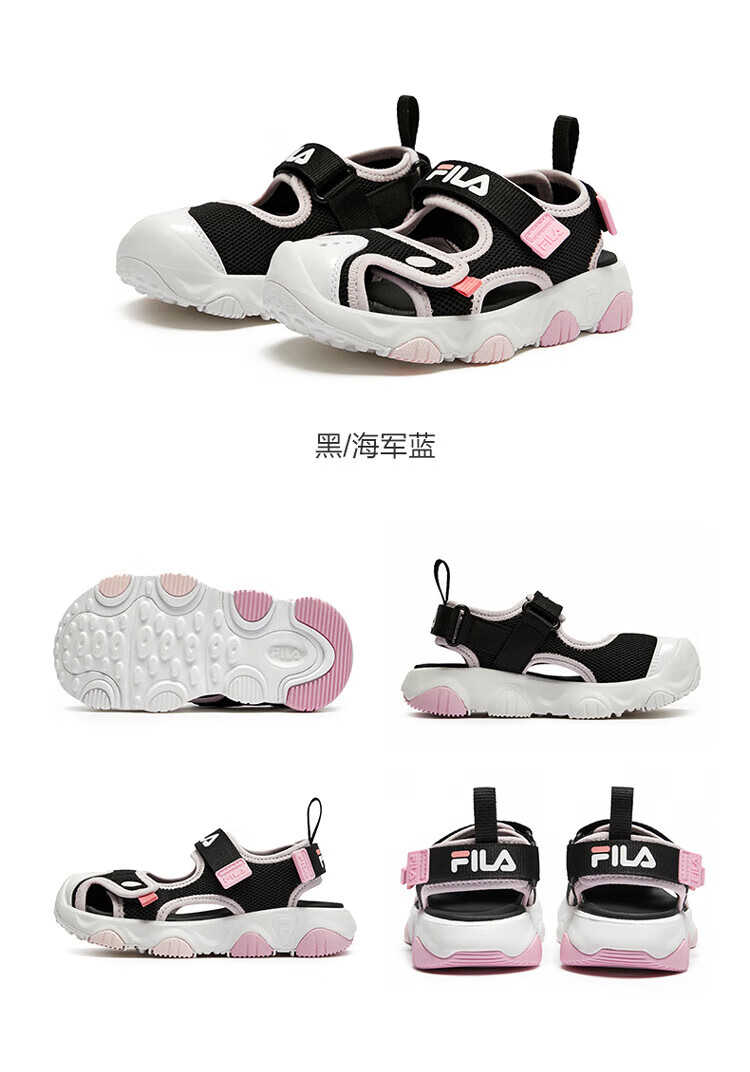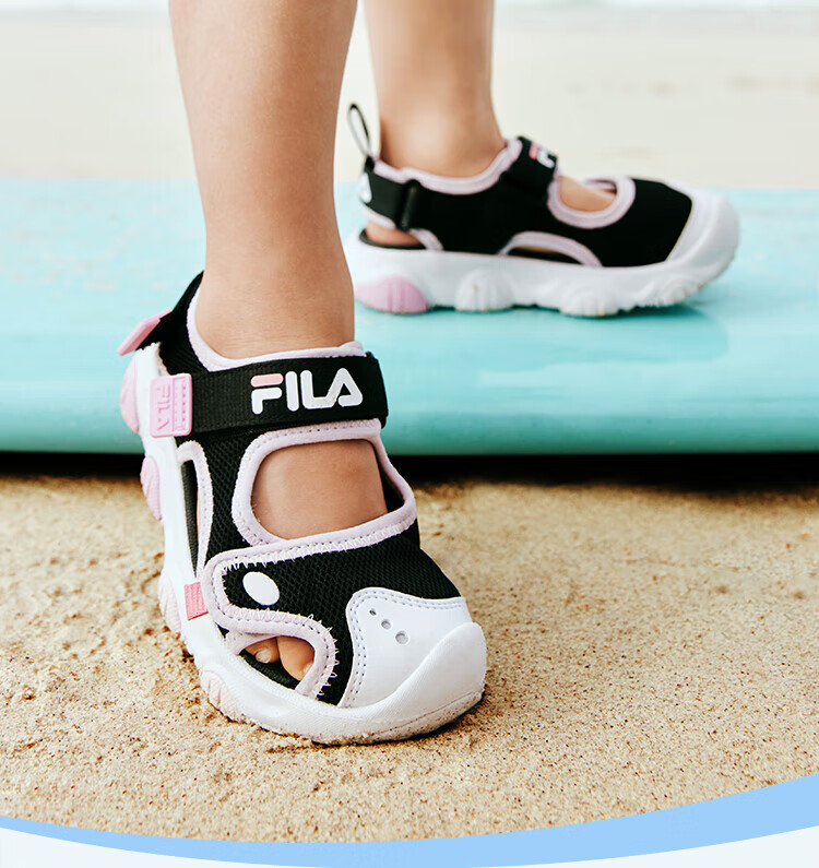 Fila Fila children's shoes children's sandals 2025 summer new river tracing shoes for boys and girls outdoor shoes trendy black/female pink-BP 31