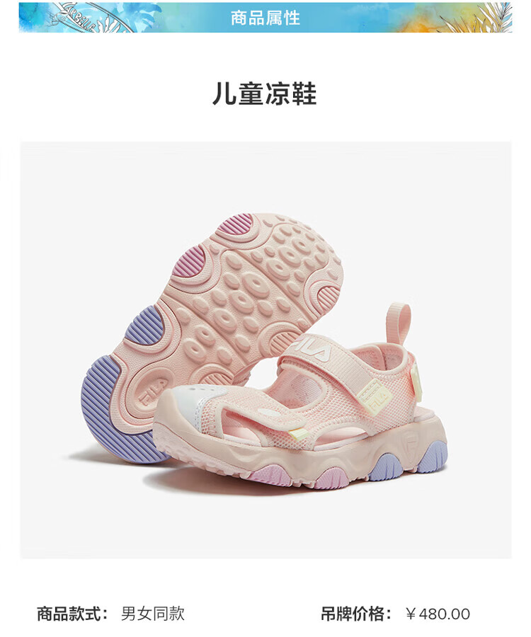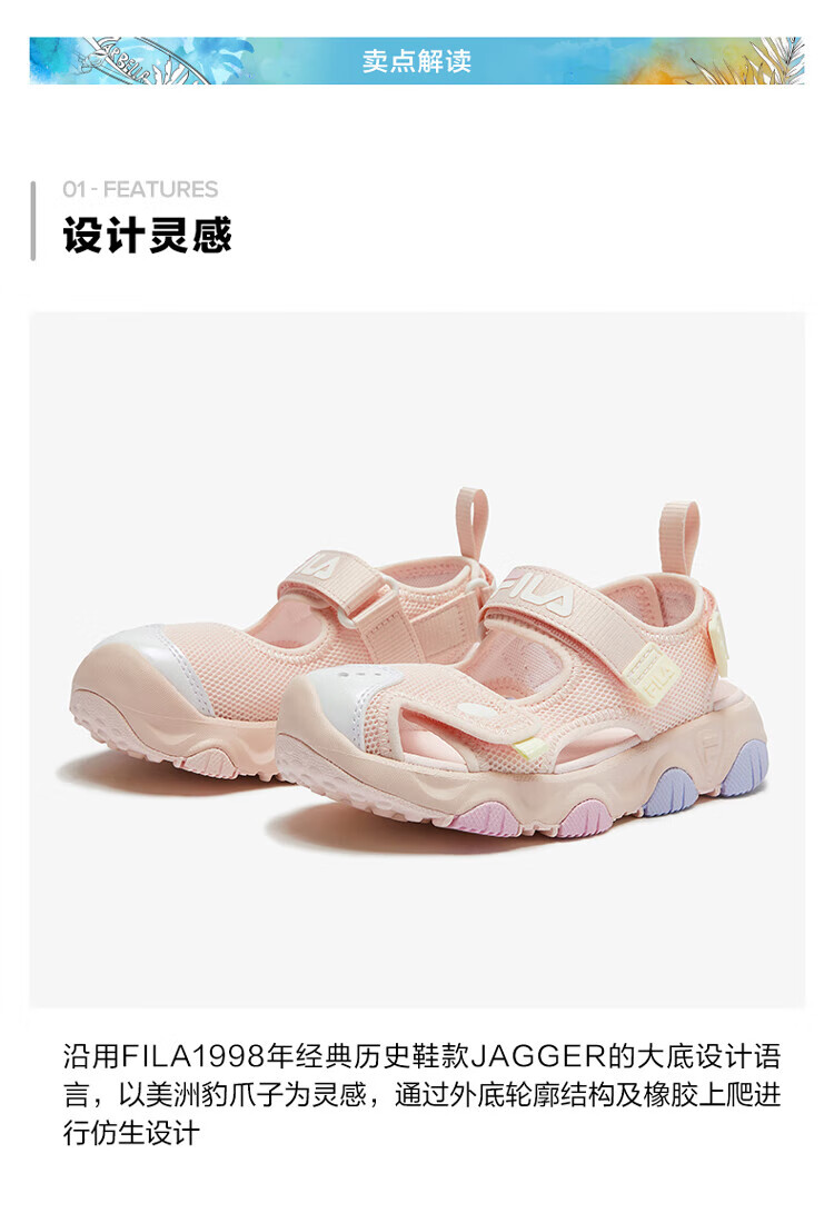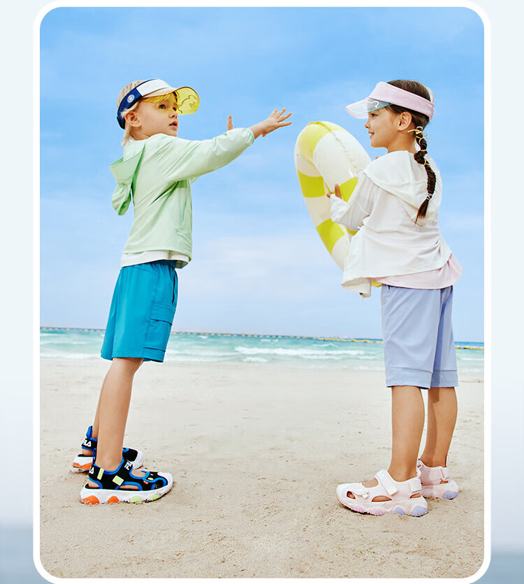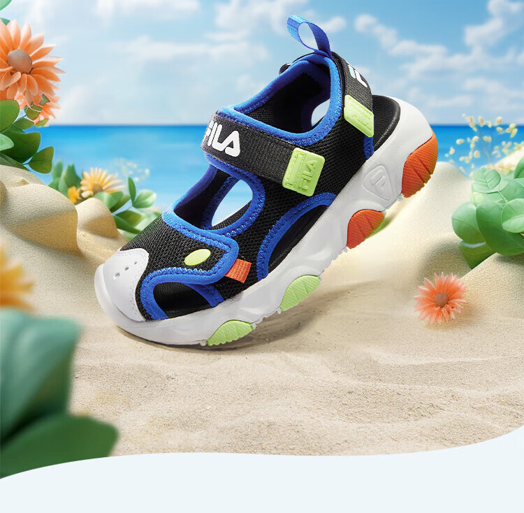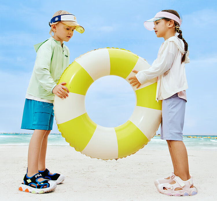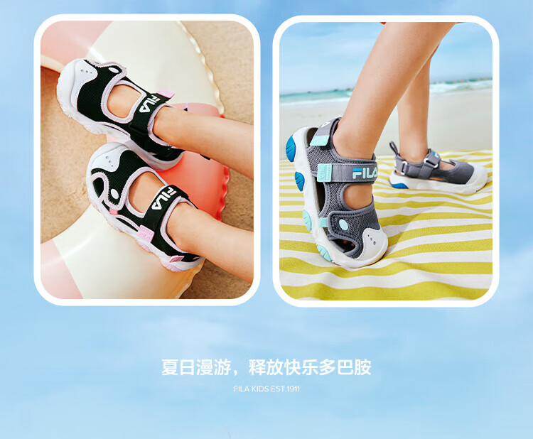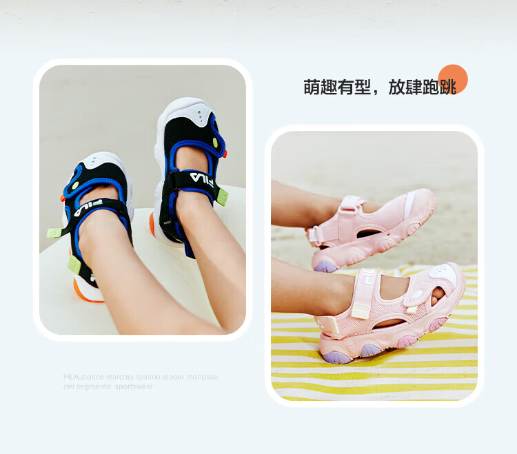 Fila Fila children's shoes children's sandals 2025 summer new river tracing shoes for boys and girls outdoor shoes trendy black/female pink-BP 31