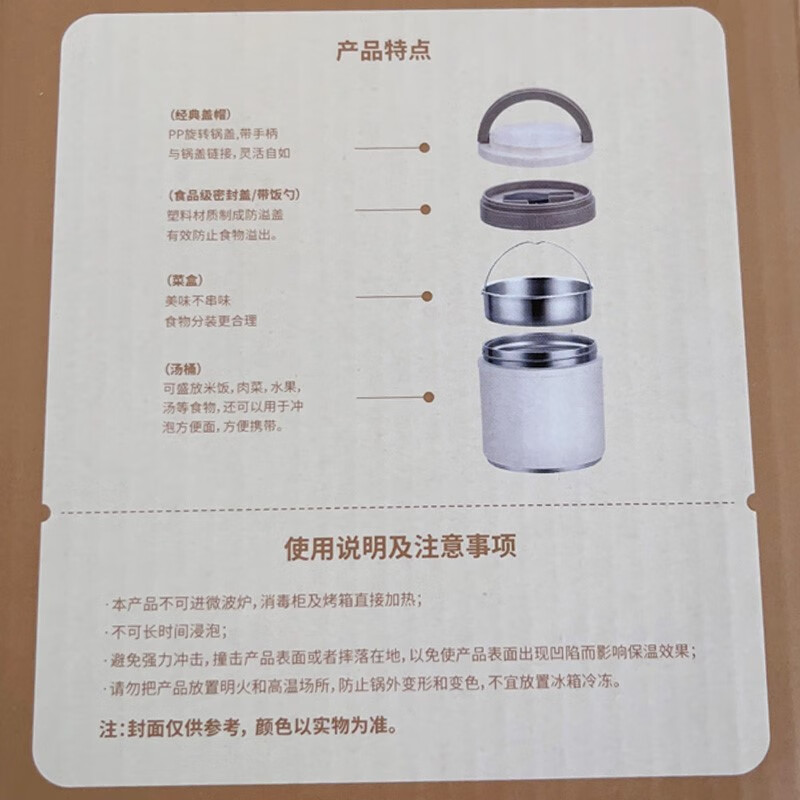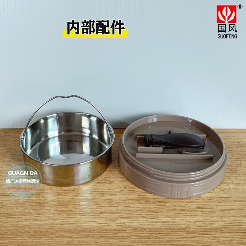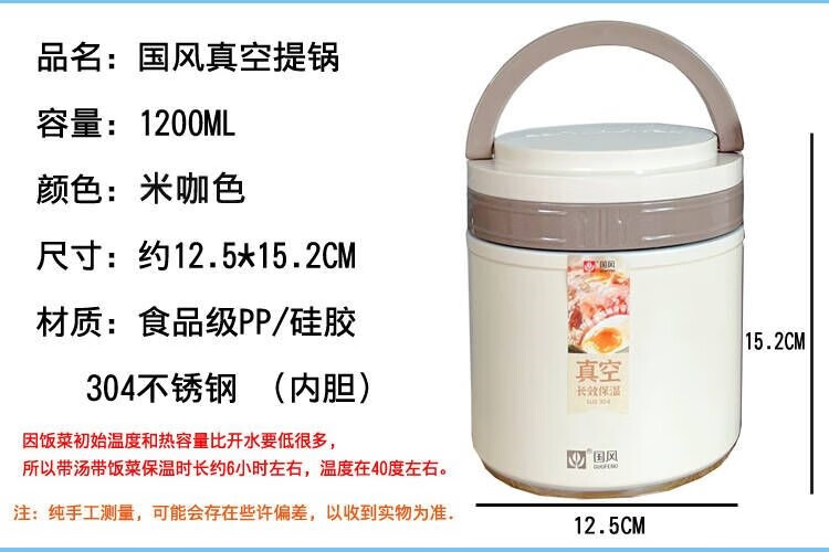Guofeng Snack Light 304 Food Grade Stainless Steel Vacuum Insulated Pot Lifting Pot for Office Workers Two-Layer Insulated Portable Lunch Box Mika l+ Free Cup Brush