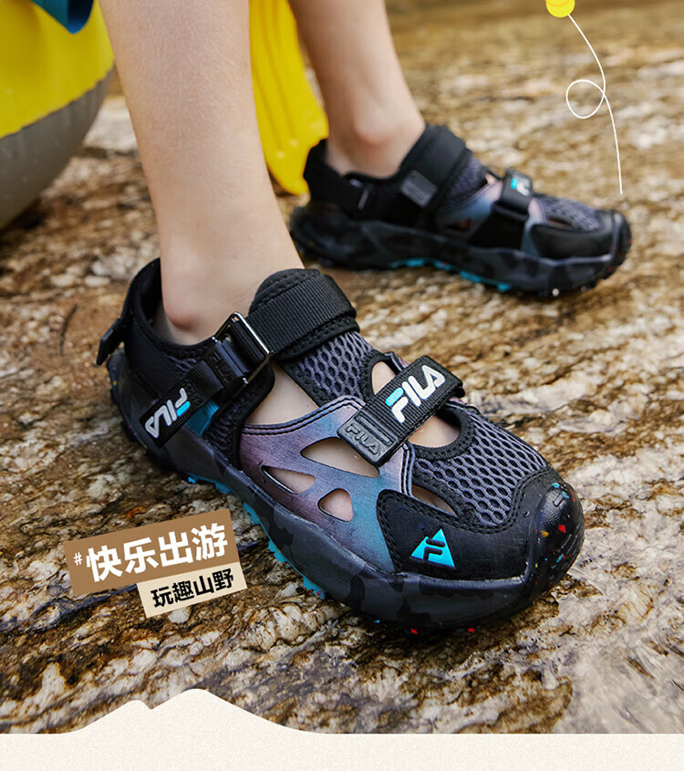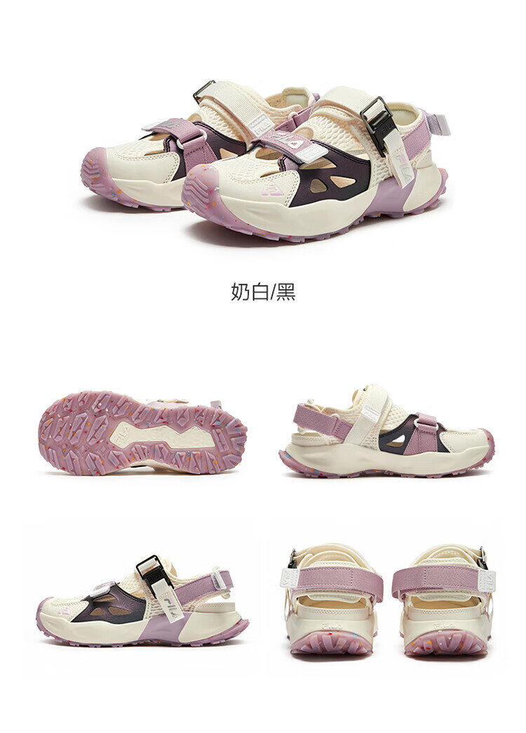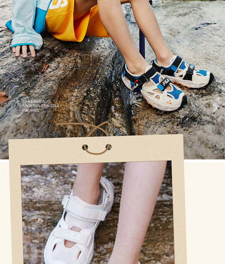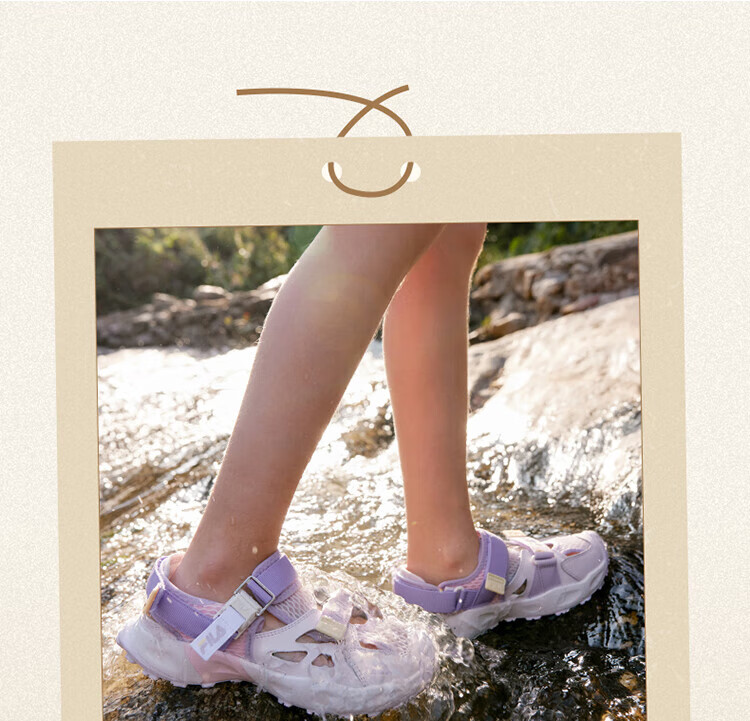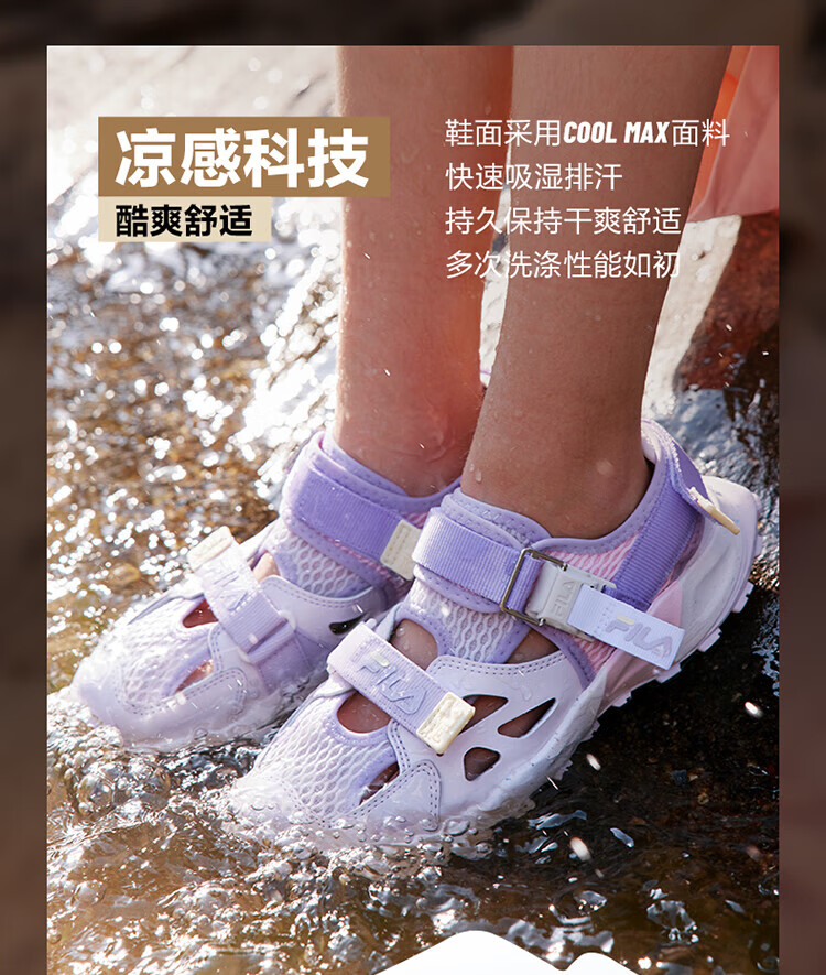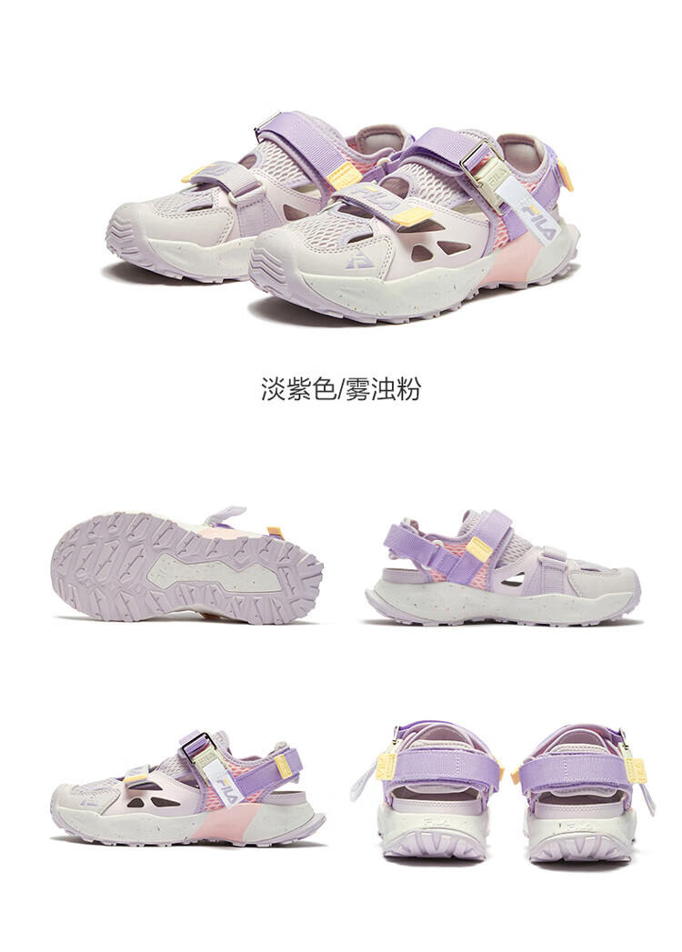 Fila Fila Children's Shoes Sandals 2025 Summer New Antibacterial Anti-Slip Outdoor River Tracing Shoes for Men and Women Adults Lavender/Mist Powder-OT 34