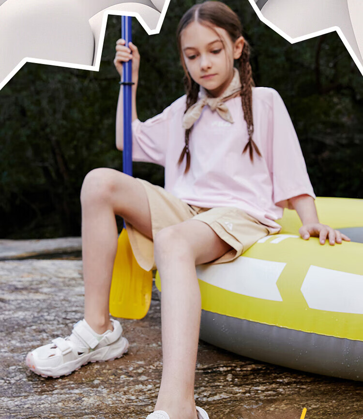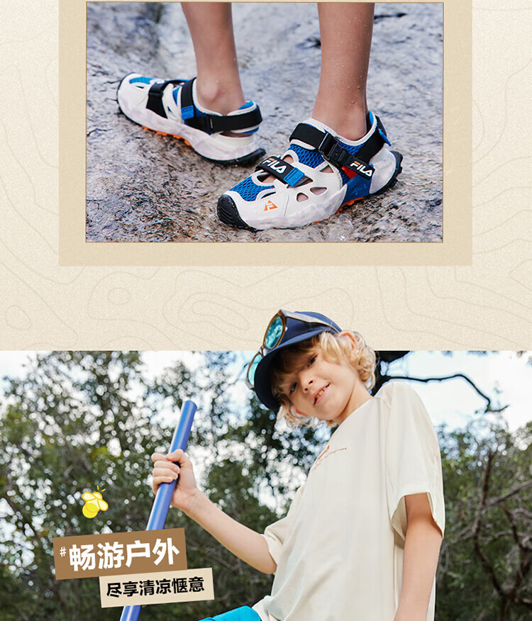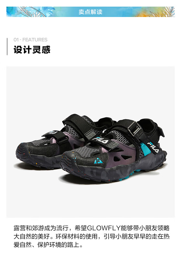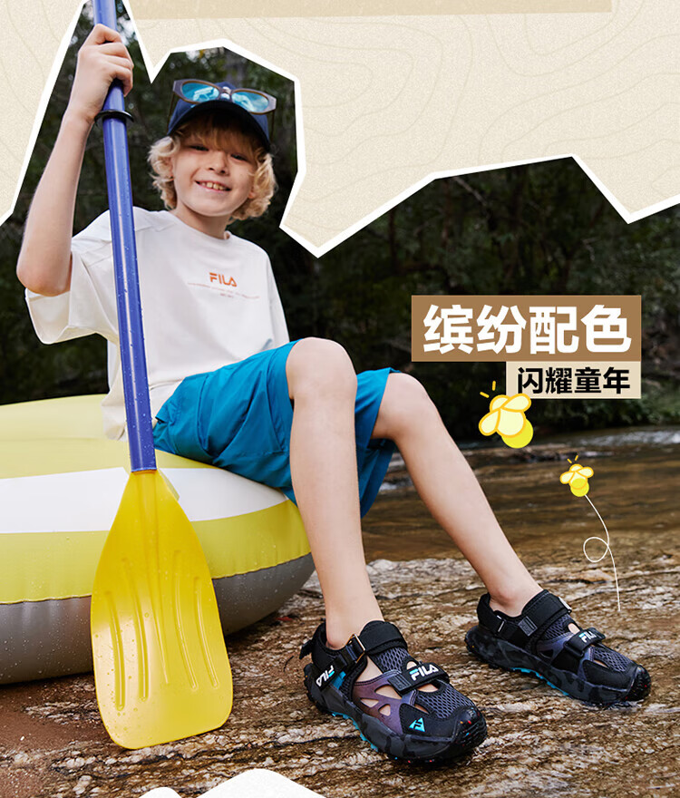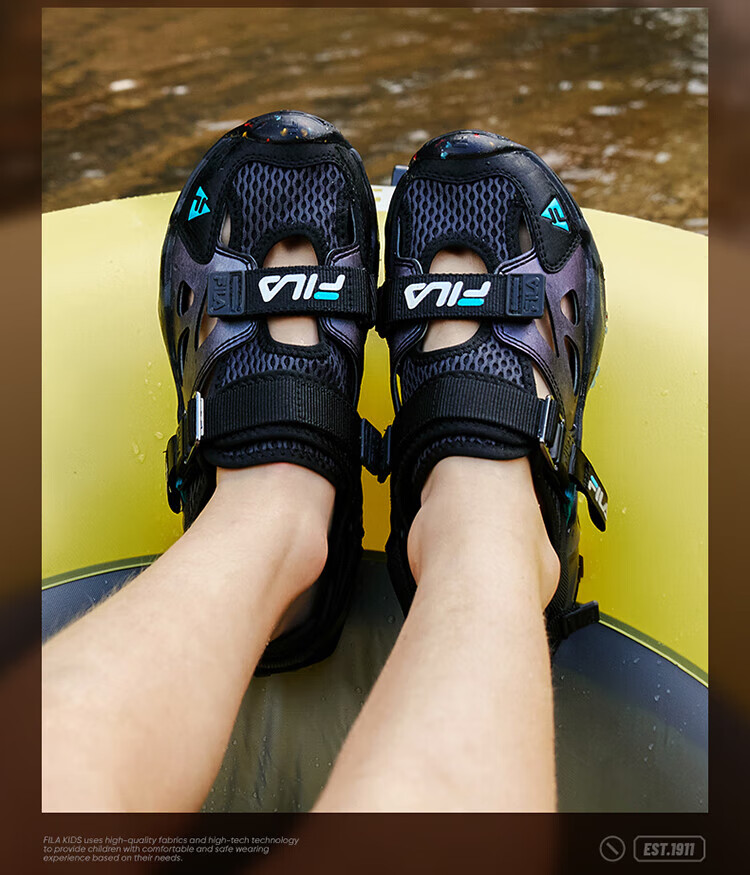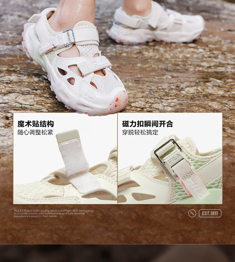 Fila Fila Children's Shoes Sandals 2025 Summer New Antibacterial Anti-Slip Outdoor River Tracing Shoes for Men and Women Adults Lavender/Mist Powder-OT 34