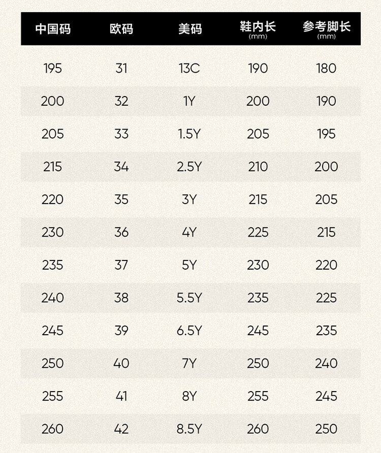 China (cm) 36 - 37 38 - 39 40 - 42 43 - 44 45 - 47