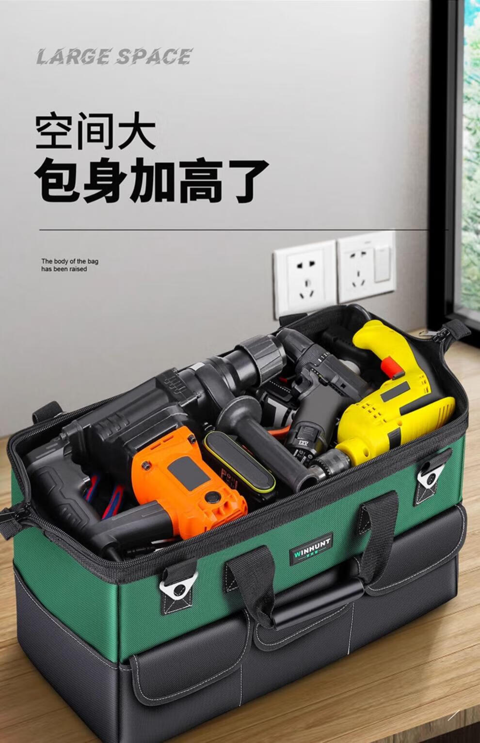 He Jiangong Changsheng Tool Bag Strong and Durable Electrician Canvas Bag Locksmith Special Tool Bag Outdoor Tool Bag Water 23-inch Three-dimensional Support Square Bag 30% More Capacity Three