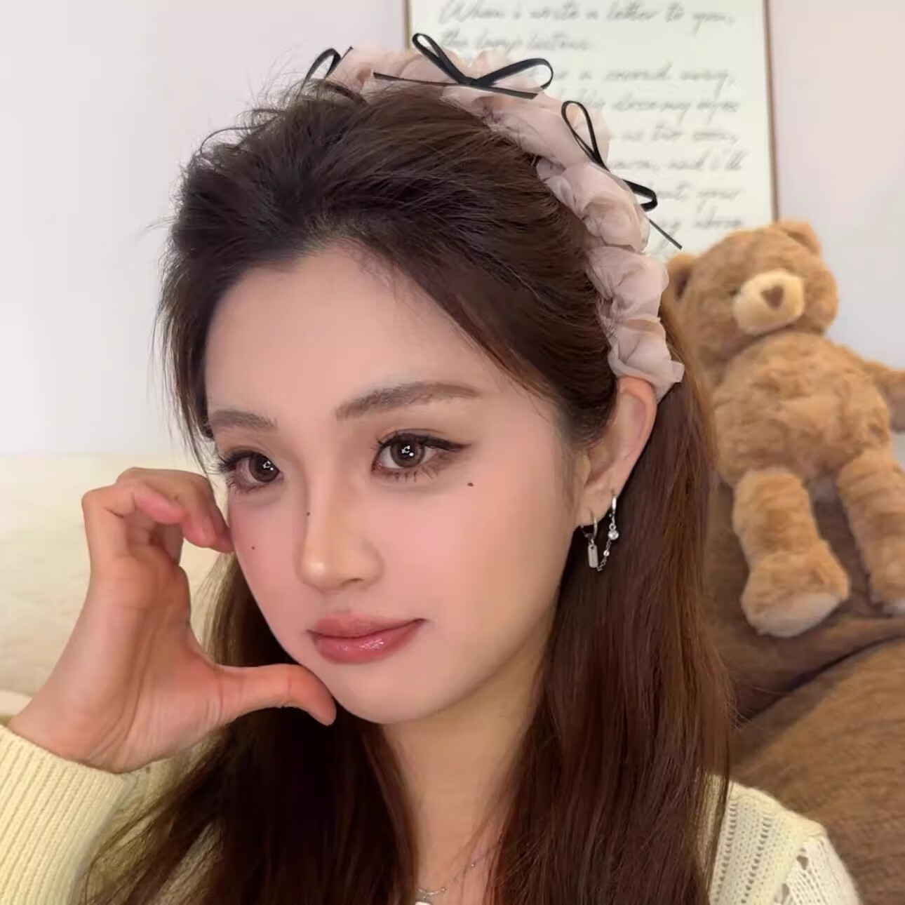 Bow tooth comb hairband for women 2025 new high-end light luxury summer high skull headband hairpin headwear black ballet style hairband