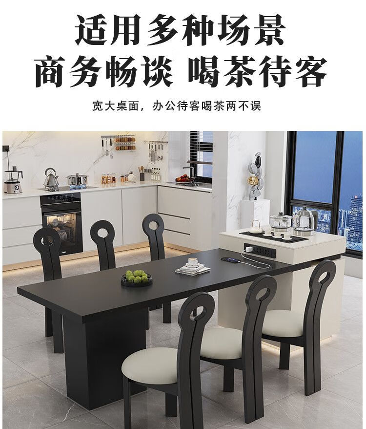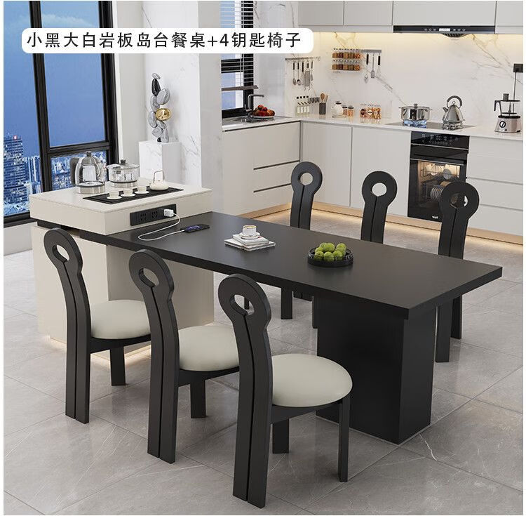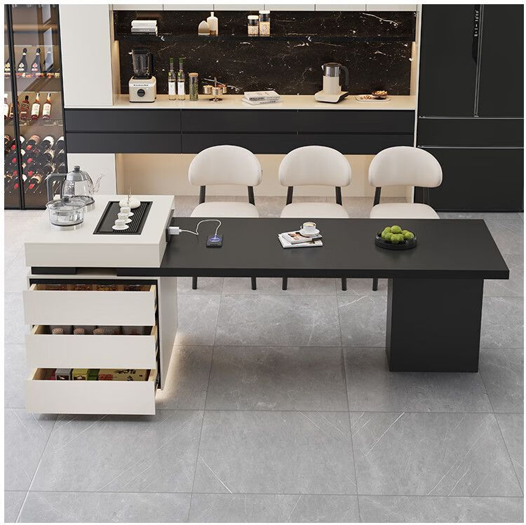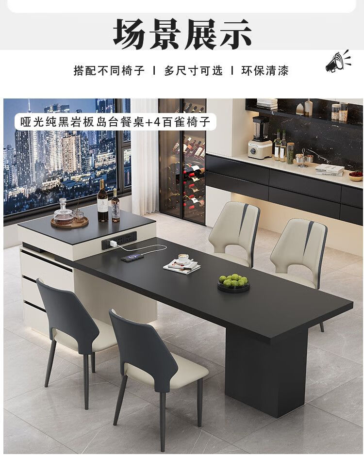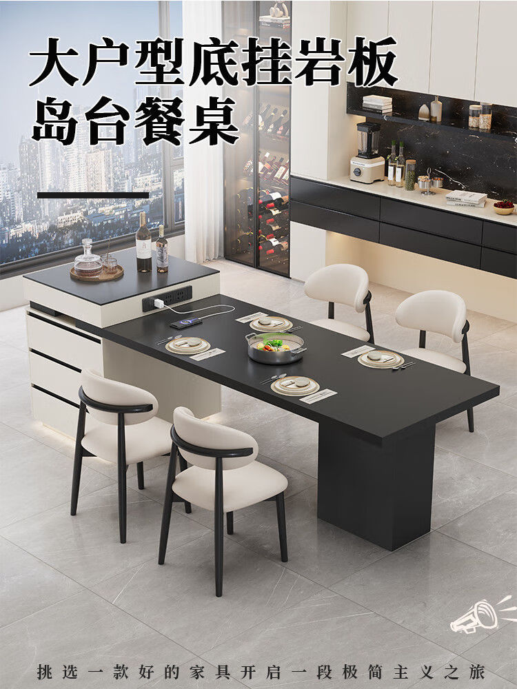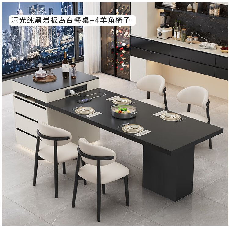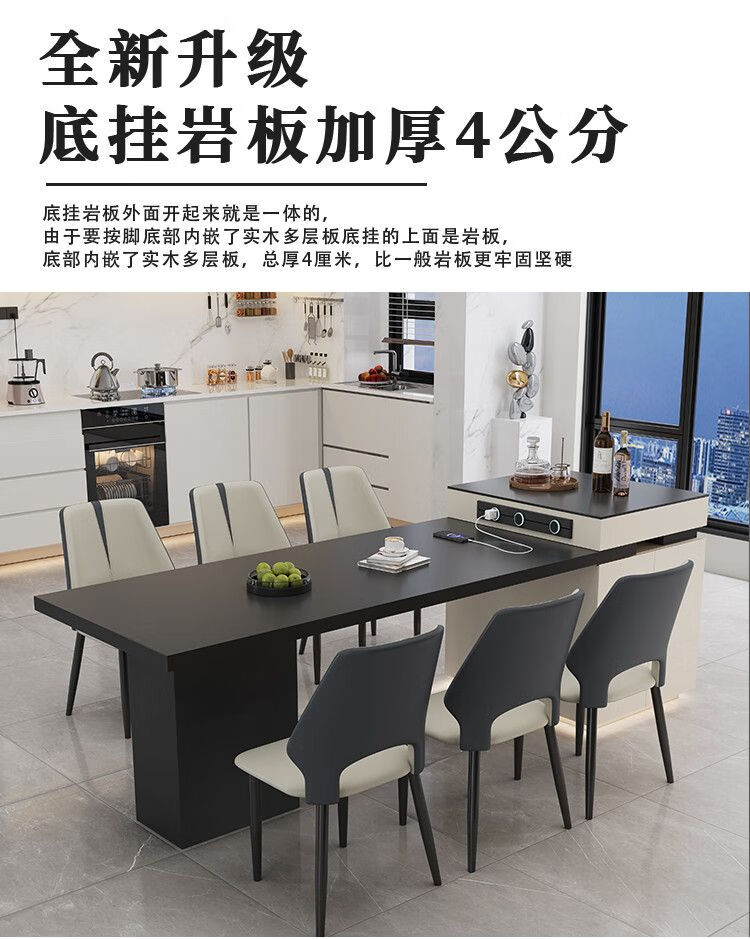 Beixun slate island dining table integrated retractable multi-functional dining table new Italian light luxury home living room island dining table island dining table + track socket + double hole tea stove 2.3-2.65m