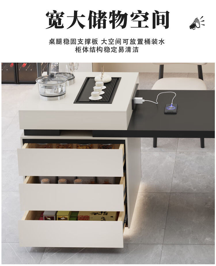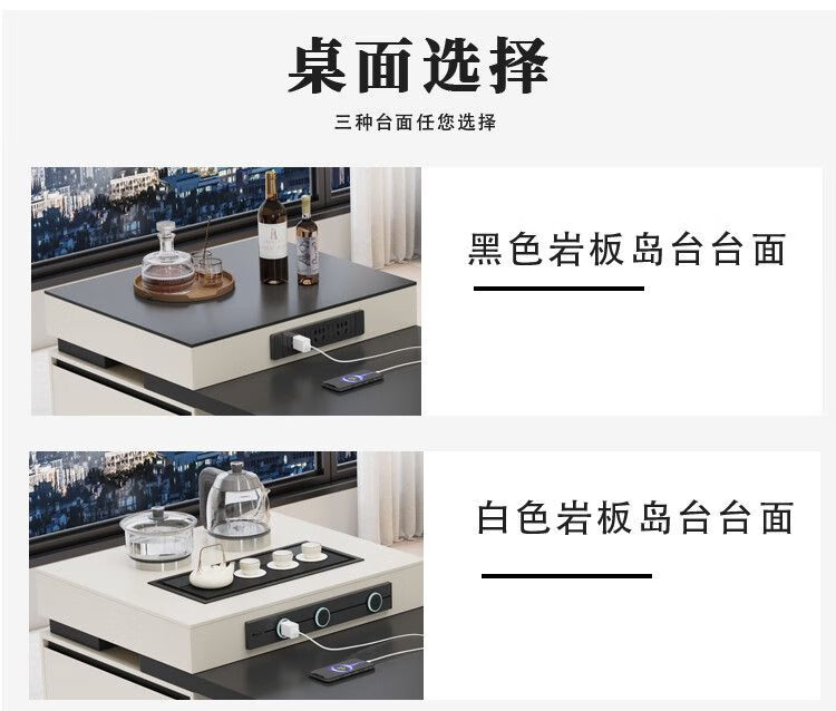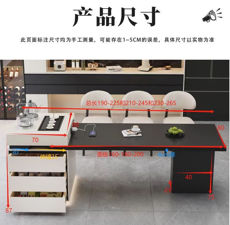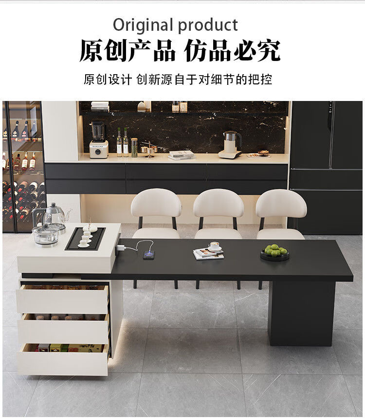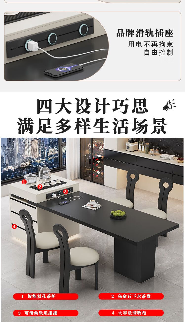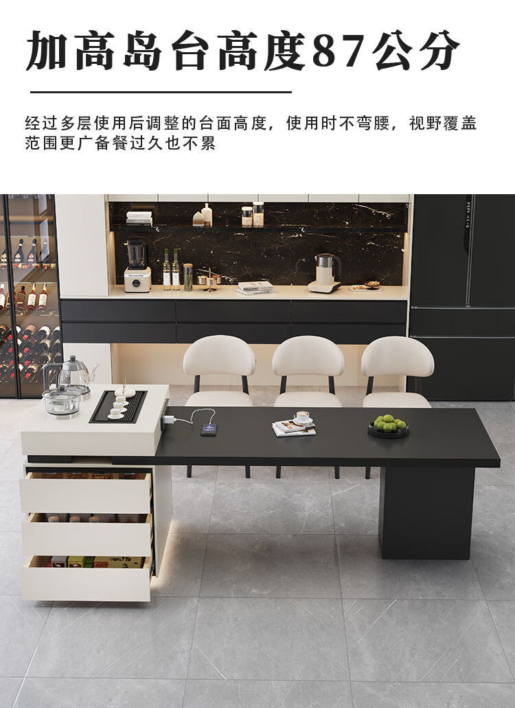 Beixun slate island dining table integrated retractable multi-functional dining table new Italian light luxury home living room island dining table island dining table + track socket + double hole tea stove 2.3-2.65m
