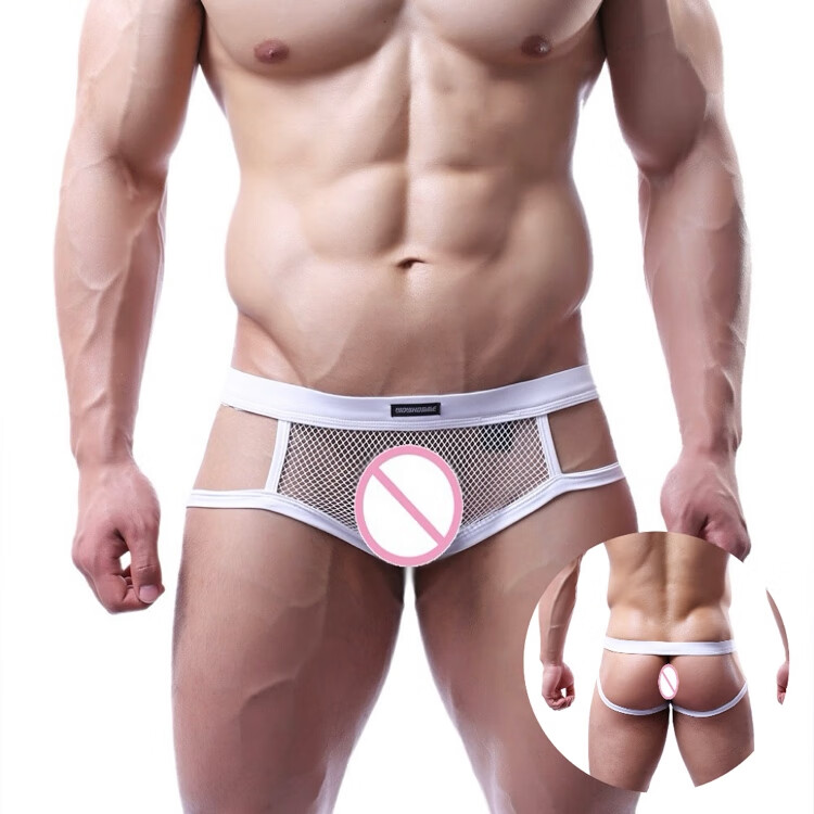 Men's underwear, sexy low-waisted thong, men's double thong underwear, no need to take off the back, mesh breathable sports hip lifting male 0 black (excluding cover) XL