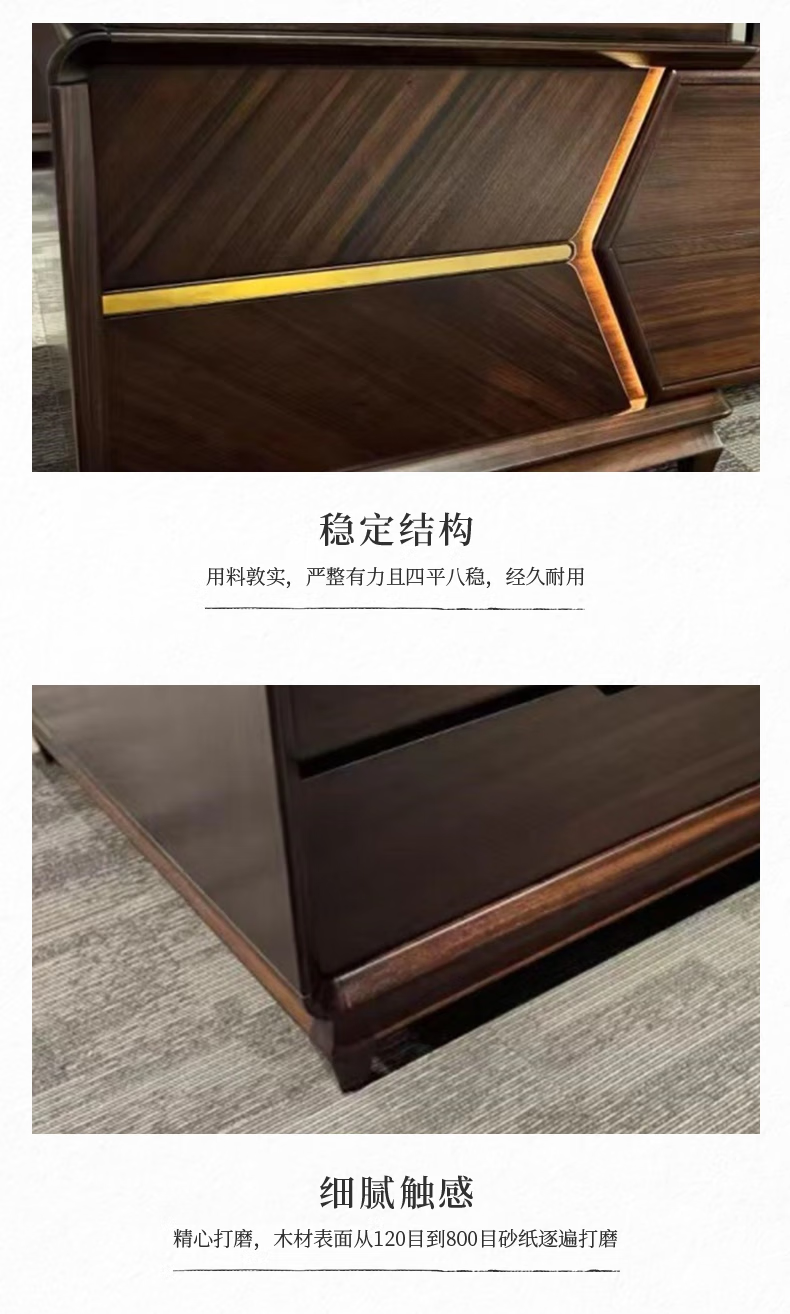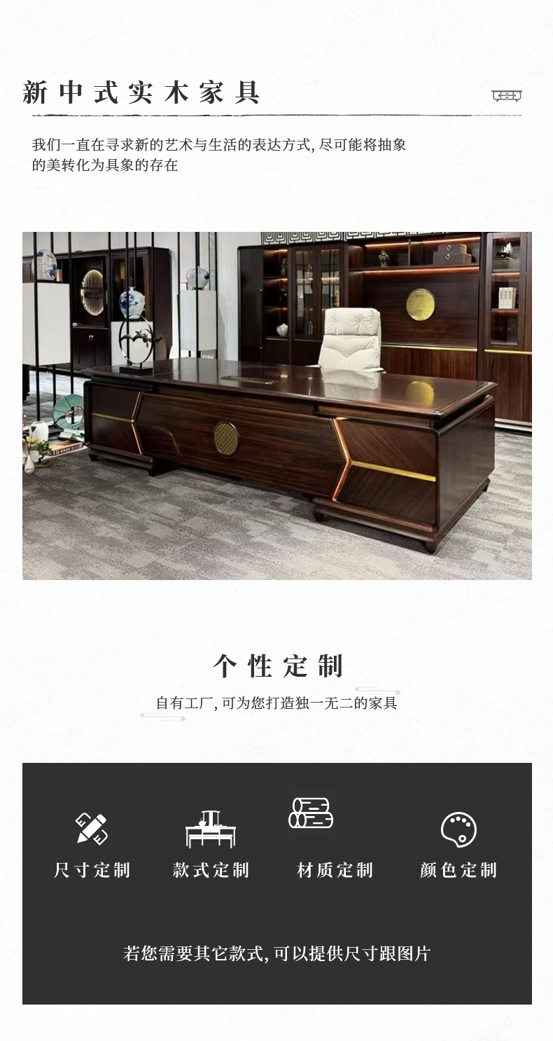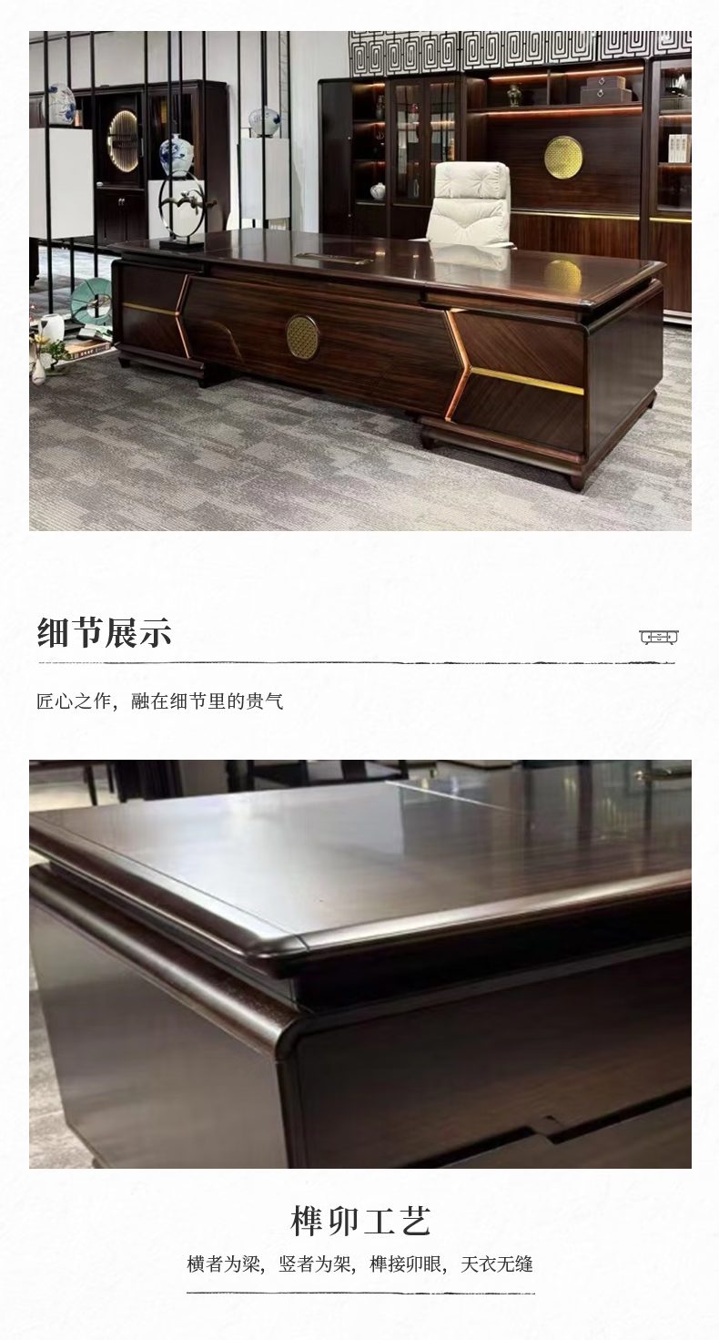 Qiheng (XIIBLC) new Chinese style solid wood boss desk 2025 new high-end executive desk light luxury boss desk manager president desk 2.0 meters boss desk (North American black walnut)