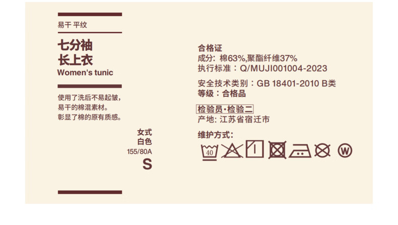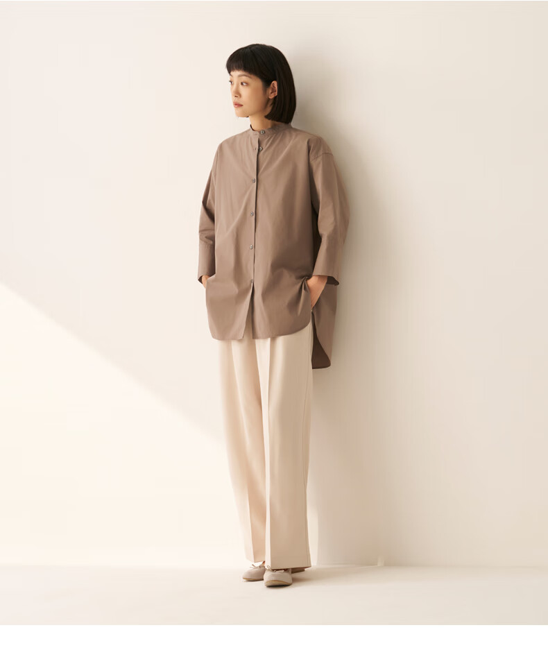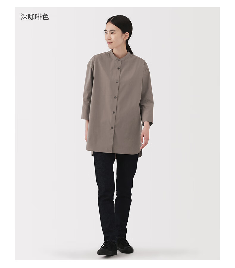 MUJI Women's Easy-drying Plain Three-quarter Sleeve Long Top Women's Shirt Shirt Japanese Jacket Women's Fall 25 Dark Brown M (160/84A)