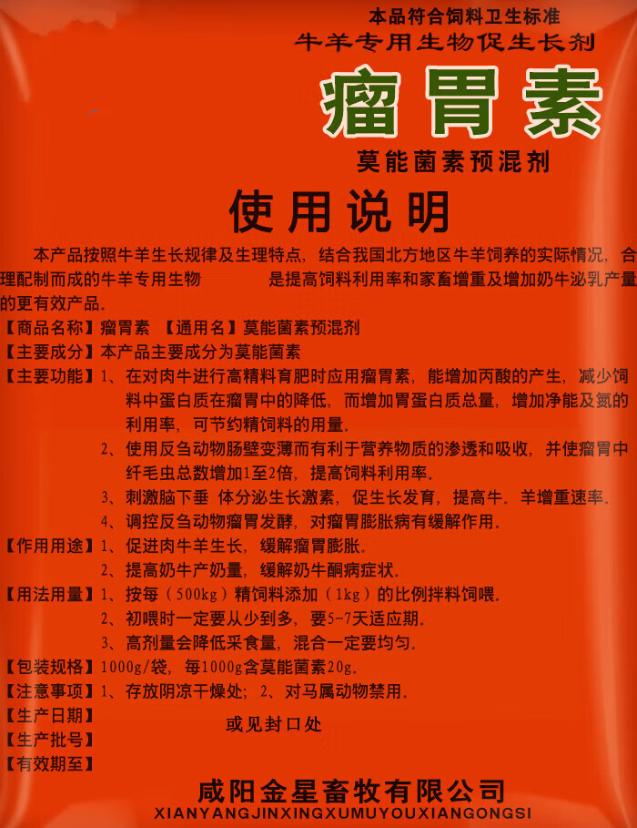 Veterinary Rumensin Monensin for Cattle and Sheep Feed Additive for Cattle and Sheep Sheep Premix to Promote Feeding and Weight Gain 1000g/1 Bag