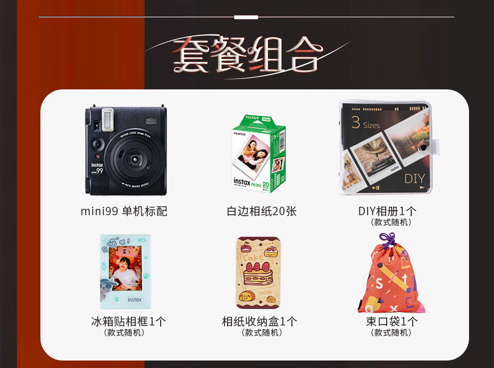 Fuji (FUJIFILM) Instax mini99 burning light instant camera 3-inch photo paper mini99 photo paper set including 20 pieces of photo paper + peripheral accessories official standard