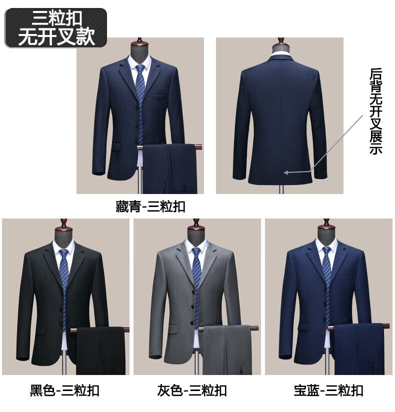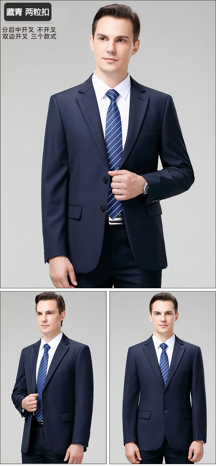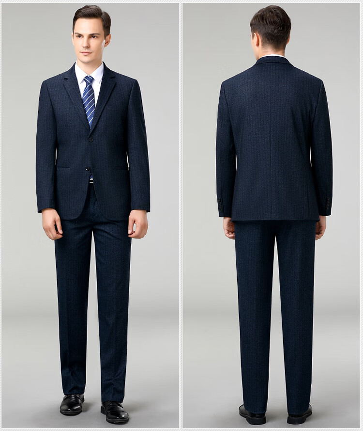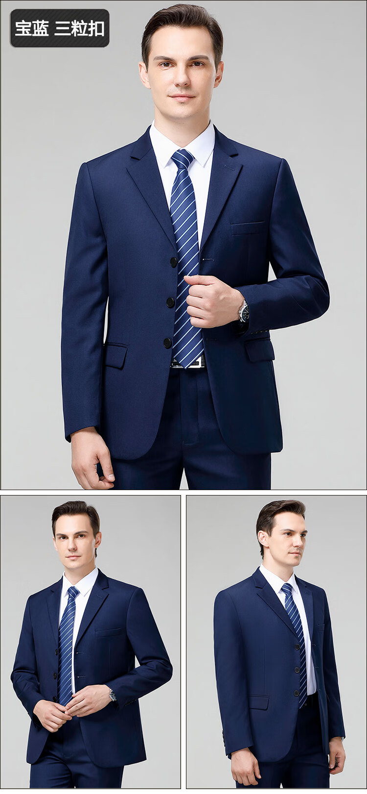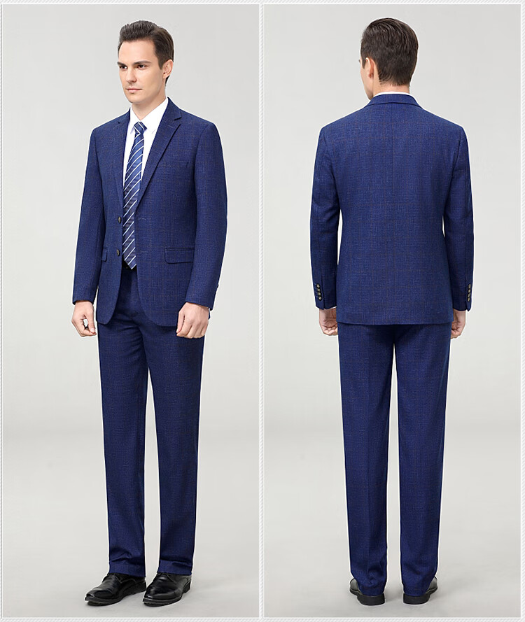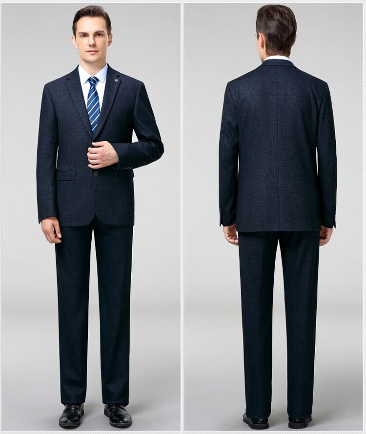 Hengyuanxiang Wool Suit Men's Spring and Autumn Two-piece Suit for Middle-aged and Elderly Business Formal Wedding Banquet Anti-wrinkle Commuting Suit for Dad 2218 Sapphire Blue (Three Buttons) Four Seasons No Slit (please note waist when ordering) S 165/84A Recommended 110-125 Jin Jin equals 0.5 kg